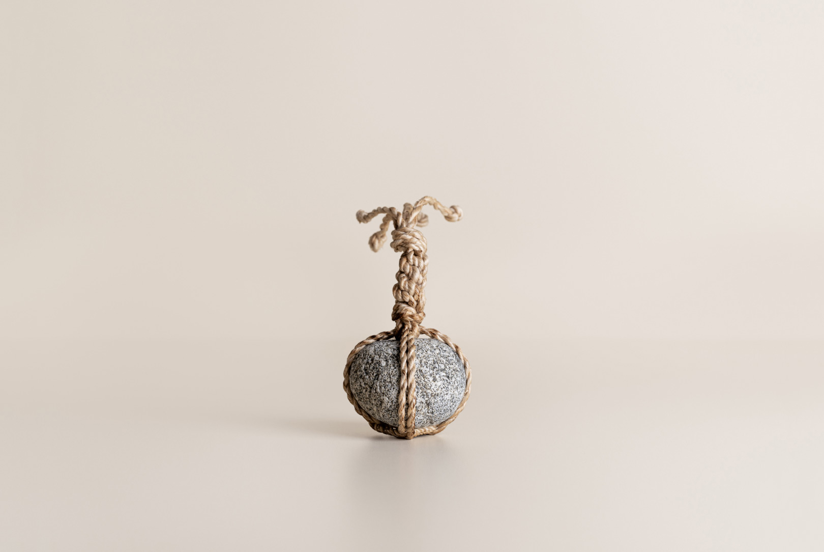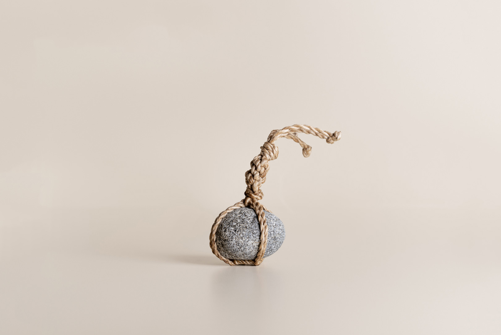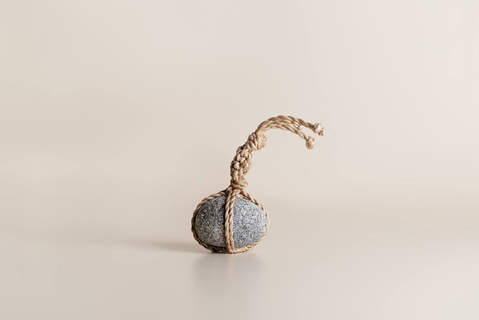 AGOBAY Showroom ZurichOften used in Japanese temples and tea houses, kekkai stones are crafted with intention. They are not merely objects but keepers of spiritual wisdom, echoing the Zen philosophy that ‘heaven, earth and I all share the same origin, and are therefore one’. In Japan, this has led to a spirit of respect for nature and a desire to live in harmony with it since ancient times. The tactile roughness of the stone and the smooth strength of the hemp invite one to ponder the interconnectedness of our existence with nature.