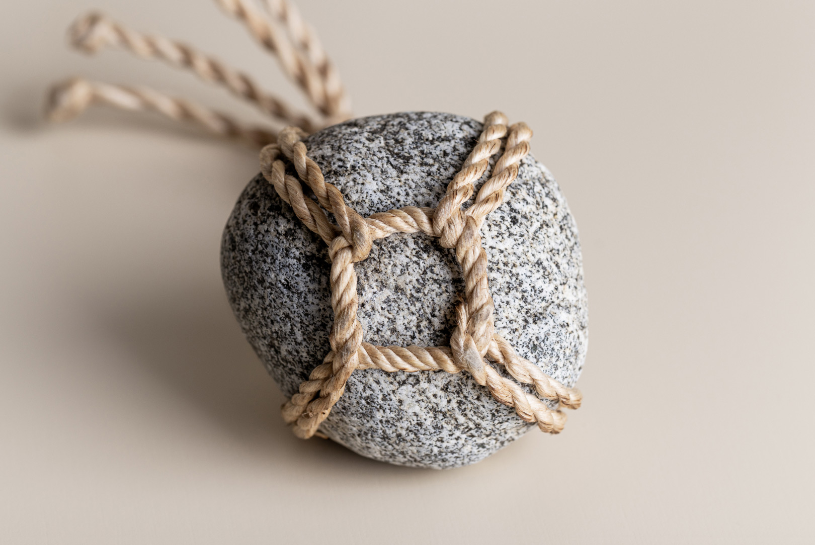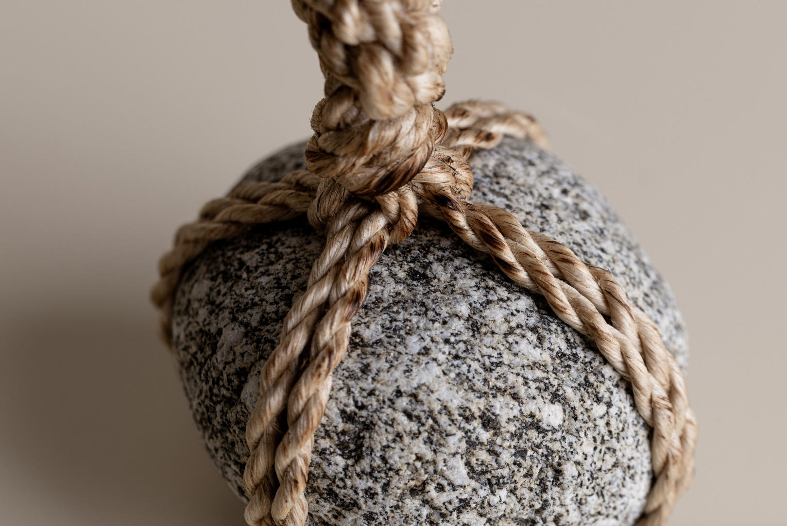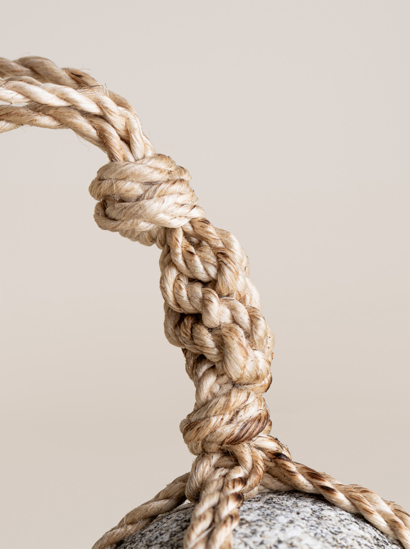 AGOBAY Showroom ZurichOften used in Japanese temples and tea houses, kekkai stones are crafted with intention. They are not merely objects but keepers of spiritual wisdom, echoing the Zen philosophy that ‘heaven, earth and I all share the same origin, and are therefore one’. In Japan, this has led to a spirit of respect for nature and a desire to live in harmony with it since ancient times. The tactile roughness of the stone and the smooth strength of the hemp invite one to ponder the interconnectedness of our existence with nature.