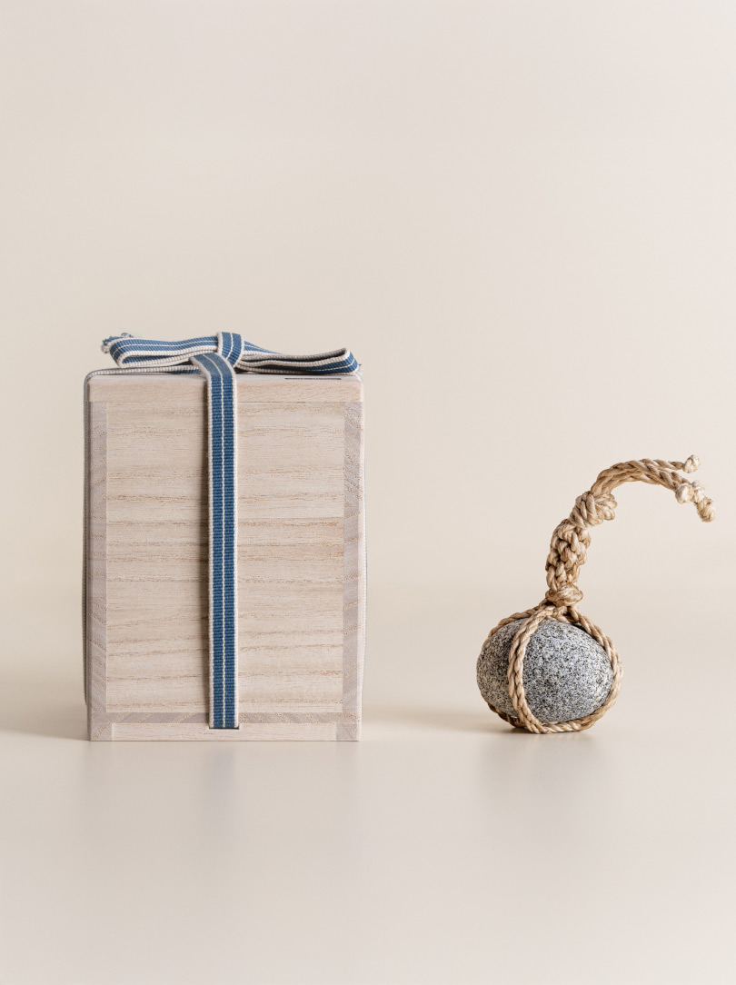 Each stone is delicately wrapped in washi paper, a traditional Japanese paper crafted from the elongated inner fibres of three plants: kozo, mitsumata and gampi. It is presented in a wooden box bearing the artisan’s signature mark. The box itself is made of Paulownia wood, known in East Asia as the ‘empress tree’ and valued for its lightweight but strong properties.