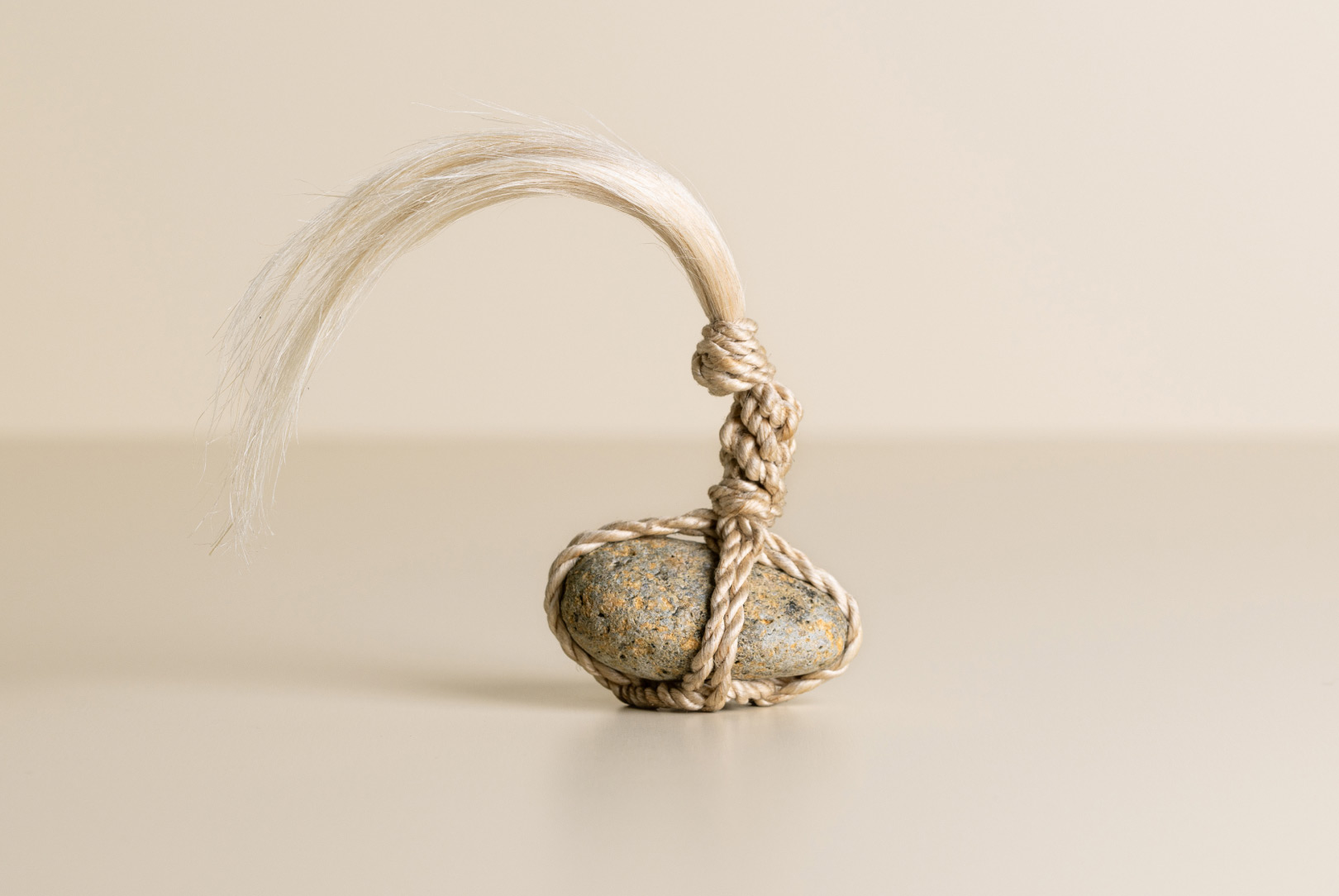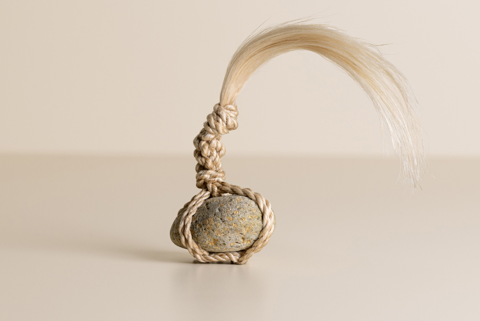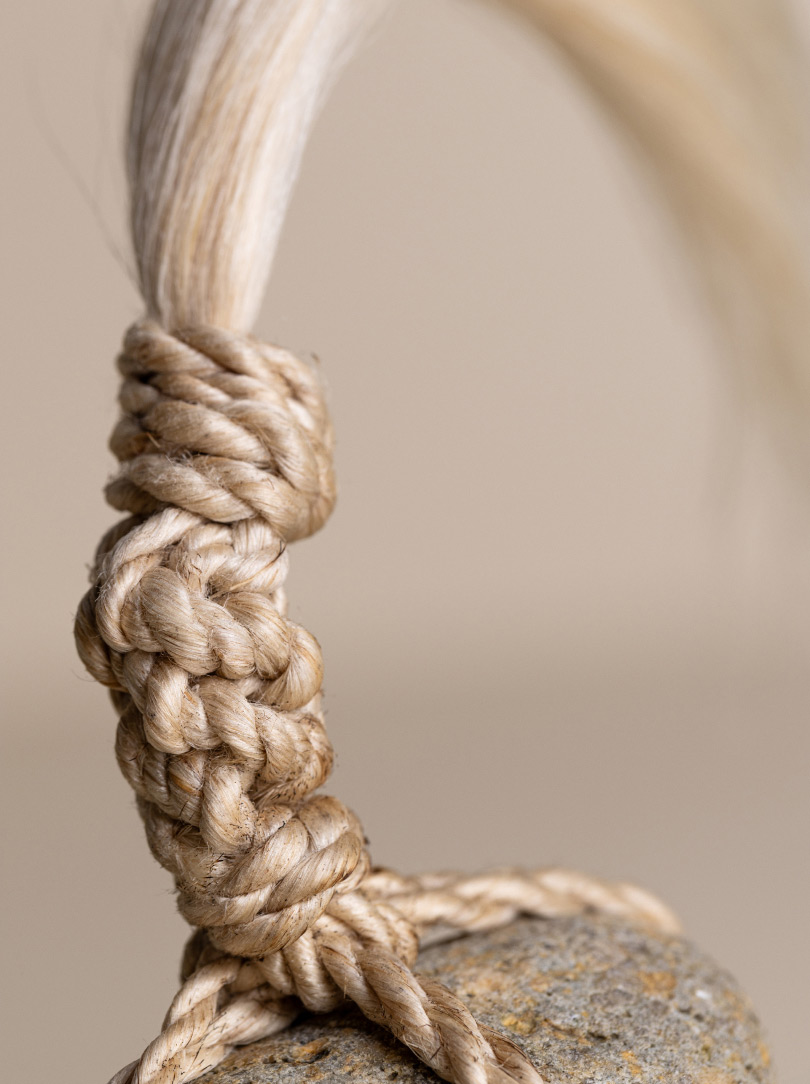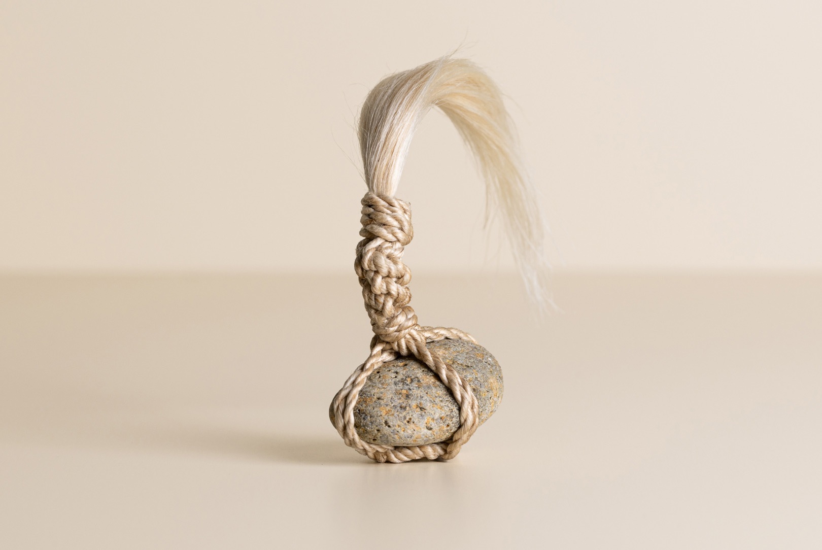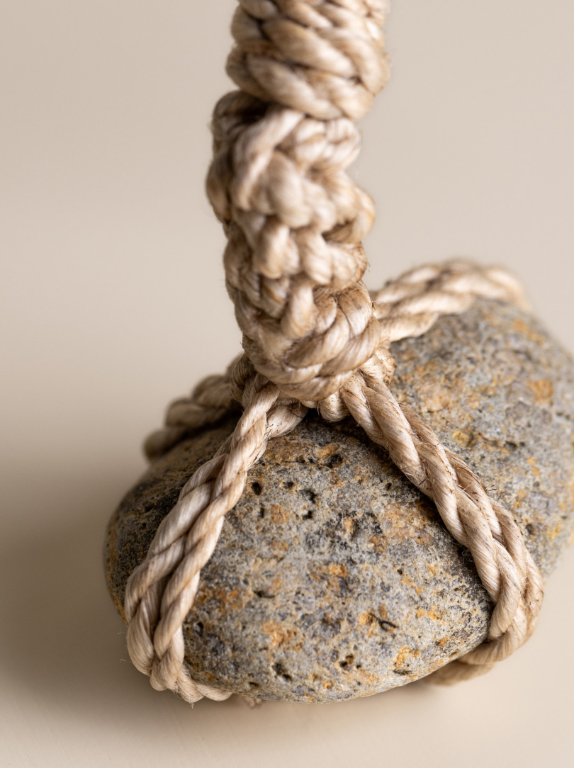 AGOBAY Showroom ZurichOften used in Japanese temples and tea houses, kekkai stones are crafted with intention. They are not merely objects but keepers of spiritual wisdom, echoing the Zen philosophy that ‘heaven, earth and I all share the same origin, and are therefore one’. In Japan, this has led to a spirit of respect for nature and a desire to live in harmony with it since ancient times. The tactile roughness of the stone and the smooth strength of the hemp invite one to ponder the interconnectedness of our existence with nature.