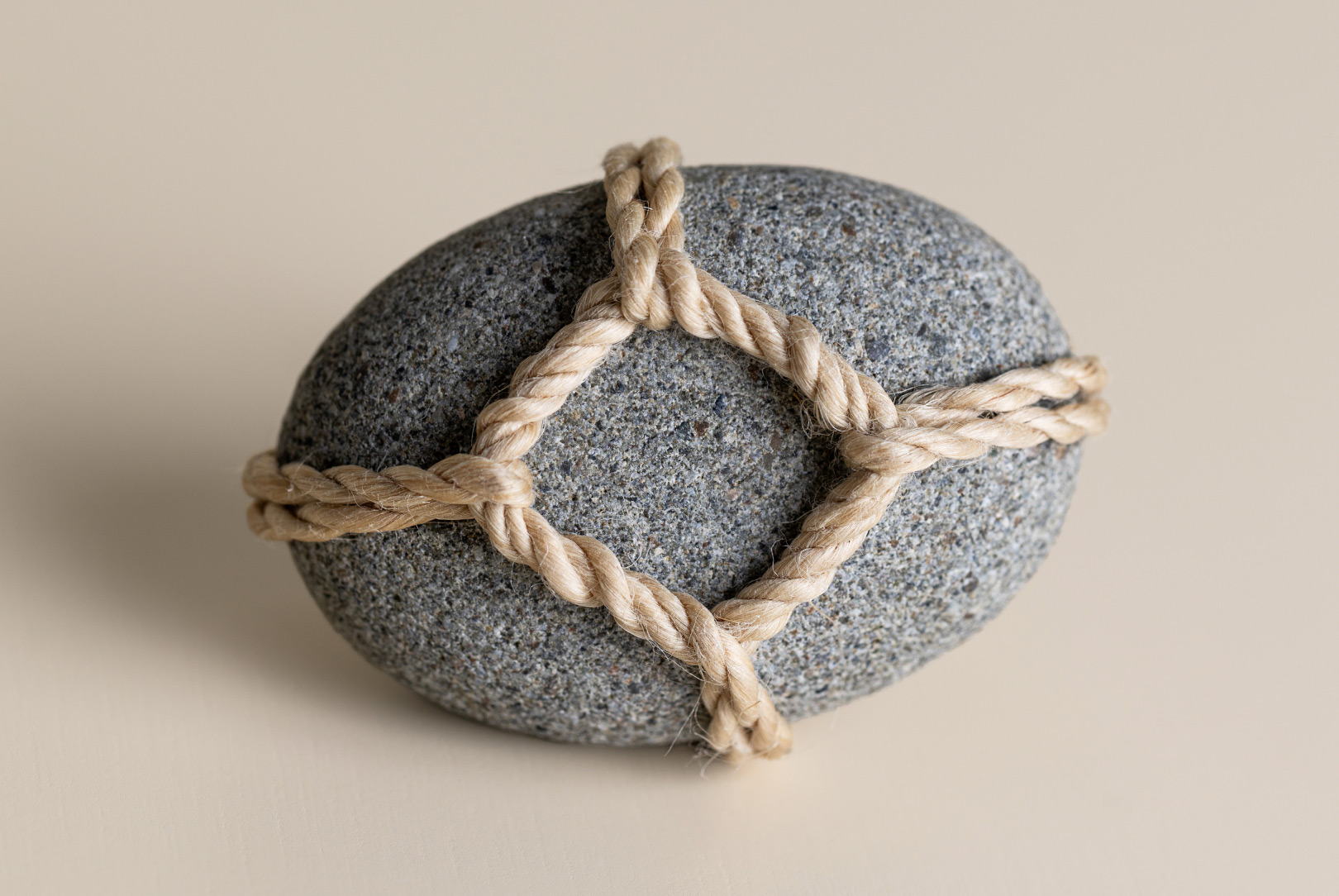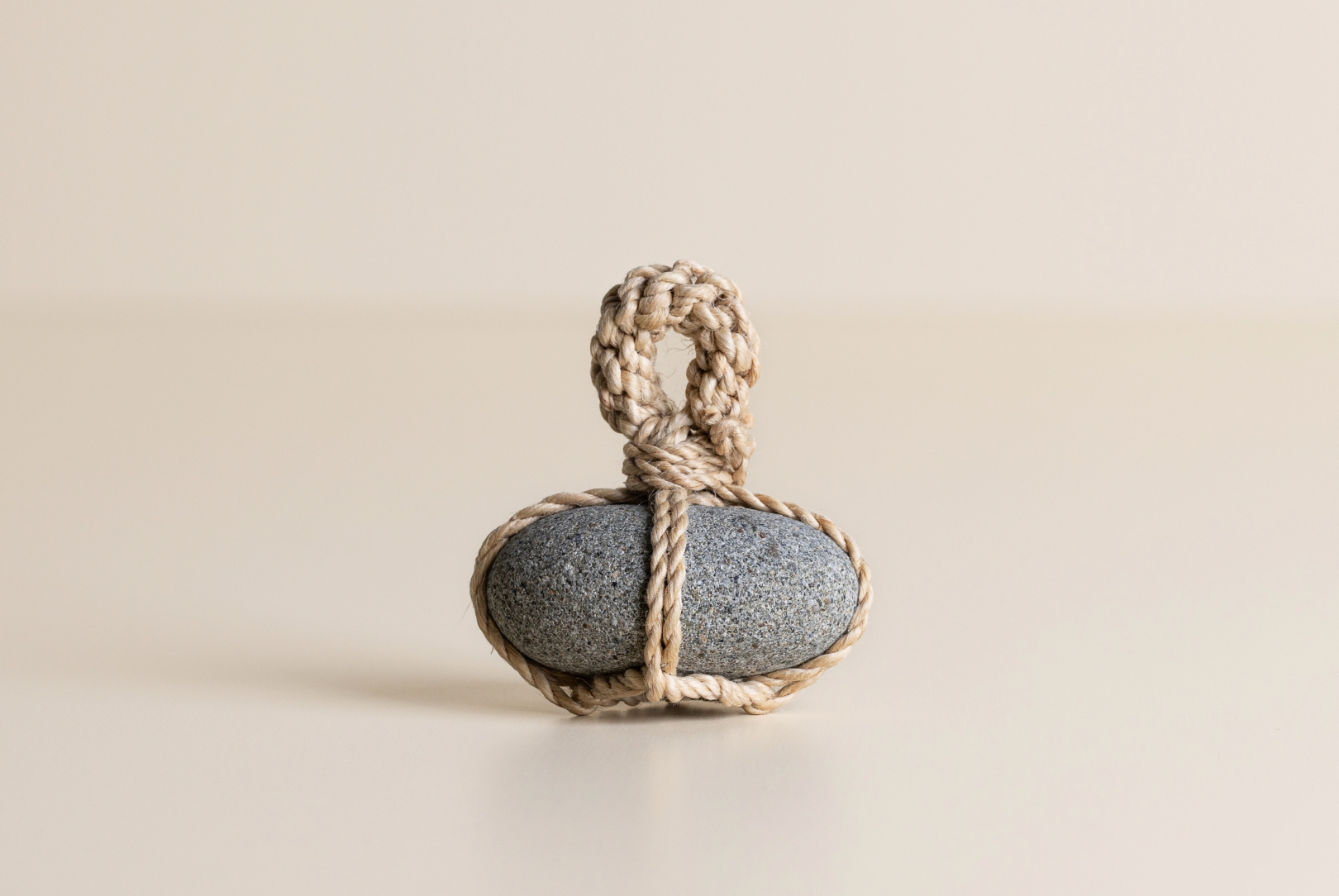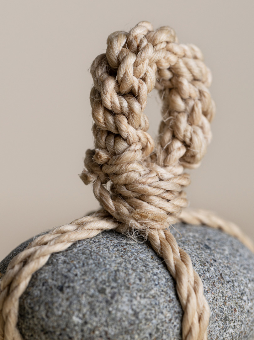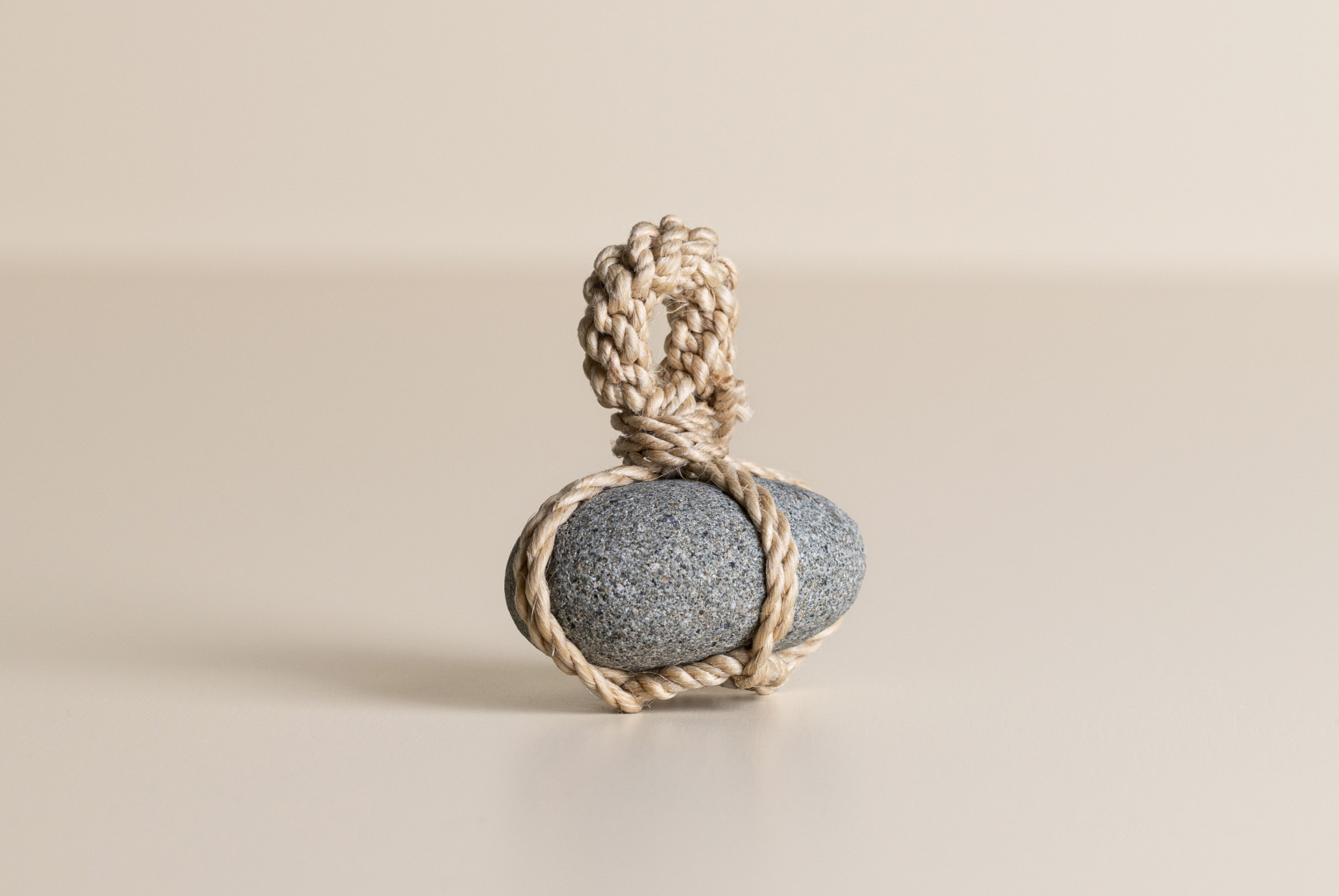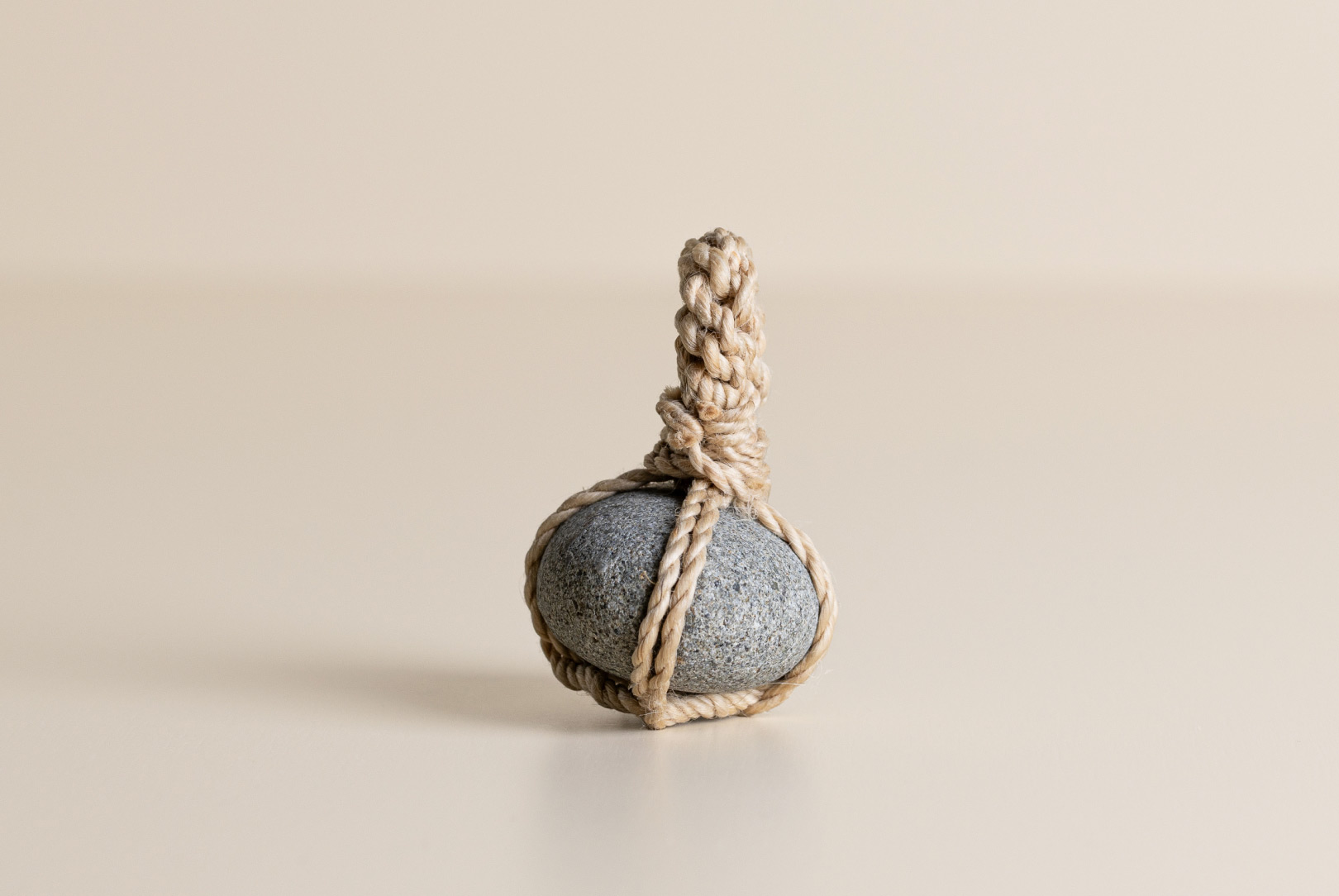 AGOBAY Showroom ZurichOften used in Japanese temples and tea houses, kekkai stones are crafted with intention. They are not merely objects but keepers of spiritual wisdom, echoing the Zen philosophy that ‘heaven, earth and I all share the same origin, and are therefore one’. In Japan, this has led to a spirit of respect for nature and a desire to live in harmony with it since ancient times. The tactile roughness of the stone and the smooth strength of the hemp invite one to ponder the interconnectedness of our existence with nature.