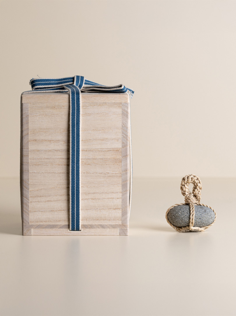 Each stone is delicately wrapped in washi paper, a traditional Japanese paper crafted from the elongated inner fibres of three plants: kozo, mitsumata and gampi. It is presented in a wooden box bearing the artisan’s signature mark. The box itself is made of Paulownia wood, known in East Asia as the ‘empress tree’ and valued for its lightweight but strong properties.