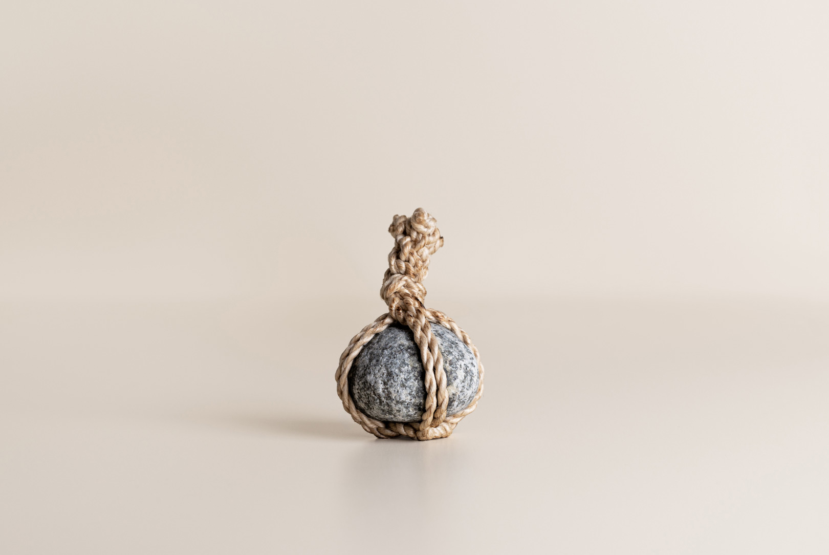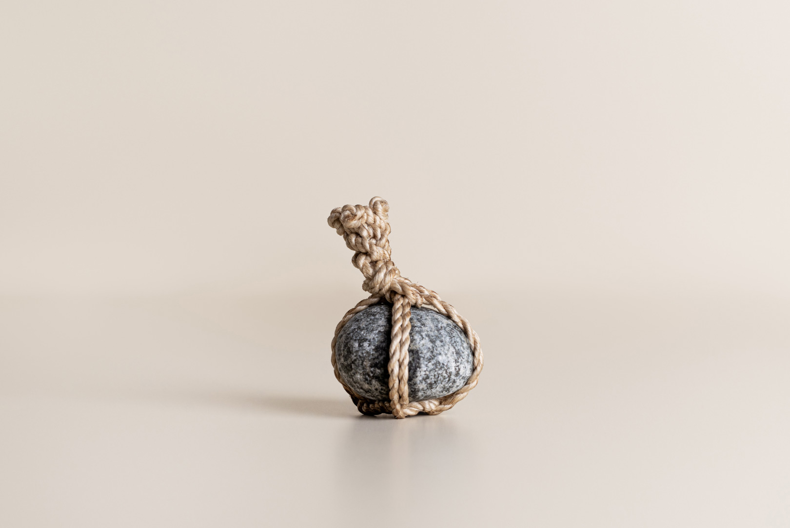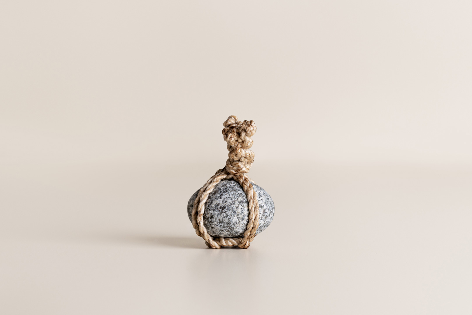 AGOBAY Showroom ZurichOften used in Japanese temples and tea houses, kekkai stones are crafted with intention. They are not merely objects but keepers of spiritual wisdom, echoing the Zen philosophy that ‘heaven, earth and I all share the same origin, and are therefore one’. In Japan, this has led to a spirit of respect for nature and a desire to live in harmony with it since ancient times. The tactile roughness of the stone and the smooth strength of the hemp invite one to ponder the interconnectedness of our existence with nature.