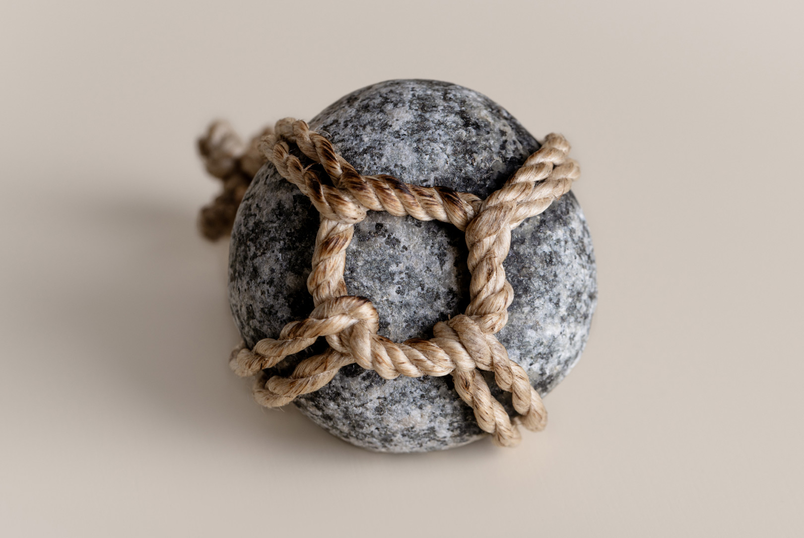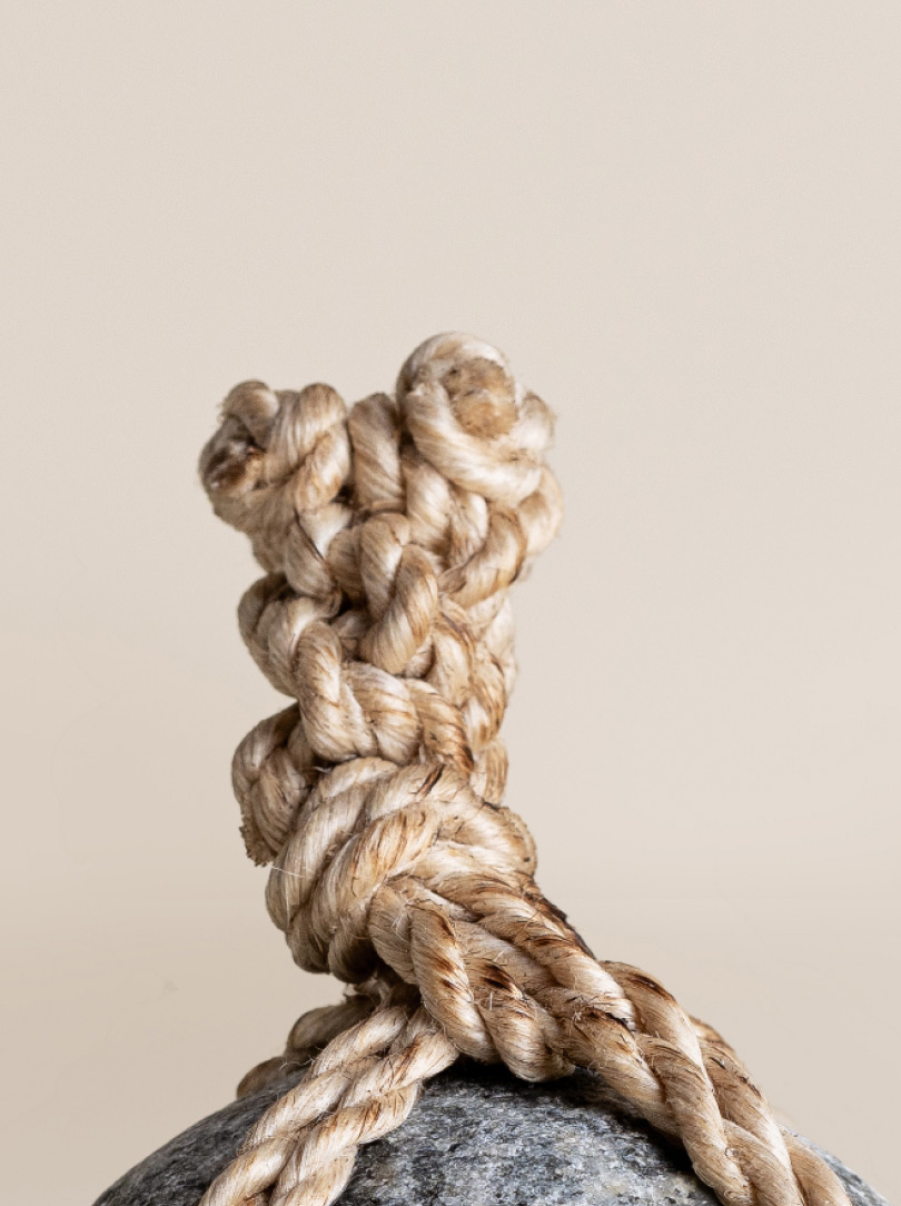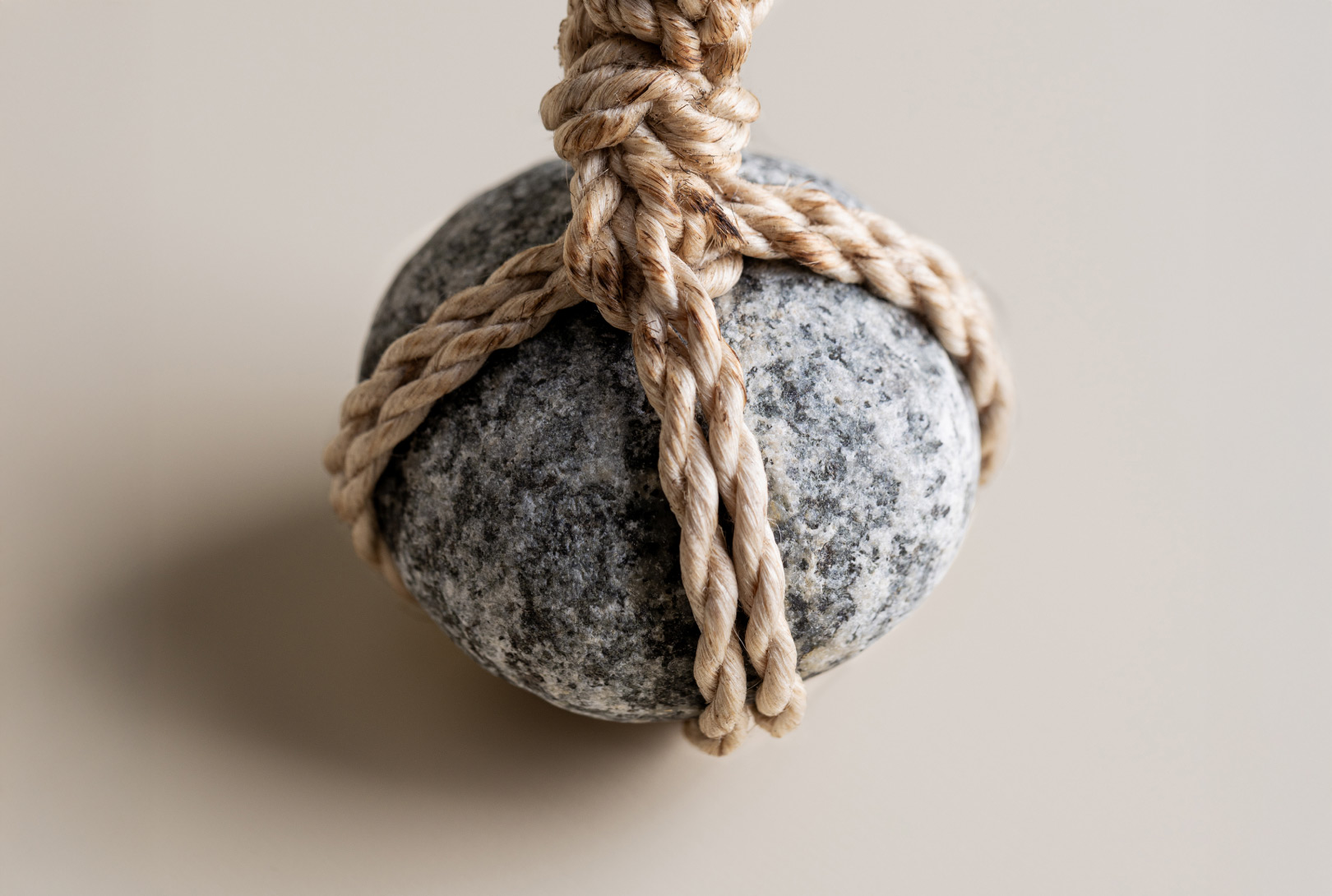AGOBAY Showroom ZurichOften used in Japanese temples and tea houses, kekkai stones are crafted with intention. They are not merely objects but keepers of spiritual wisdom, echoing the Zen philosophy that ‘heaven, earth and I all share the same origin, and are therefore one’. In Japan, this has led to a spirit of respect for nature and a desire to live in harmony with it since ancient times. The tactile roughness of the stone and the smooth strength of the hemp invite one to ponder the interconnectedness of our existence with nature.