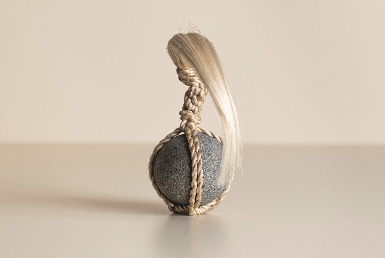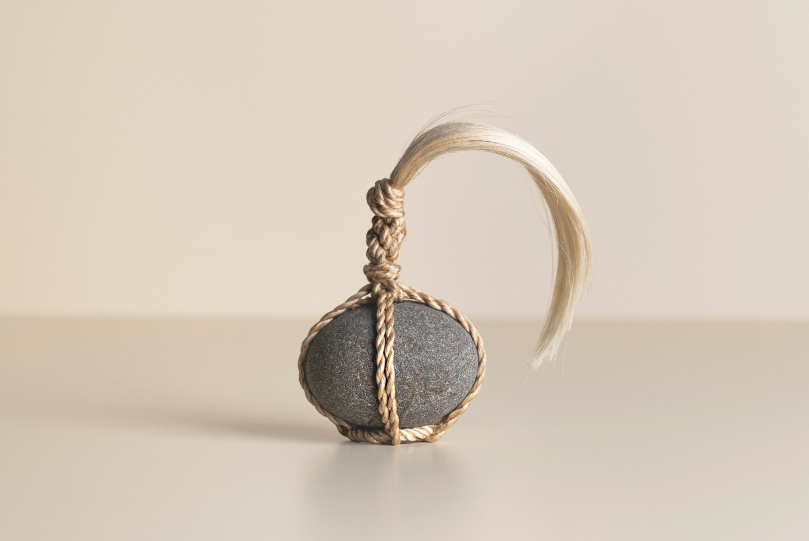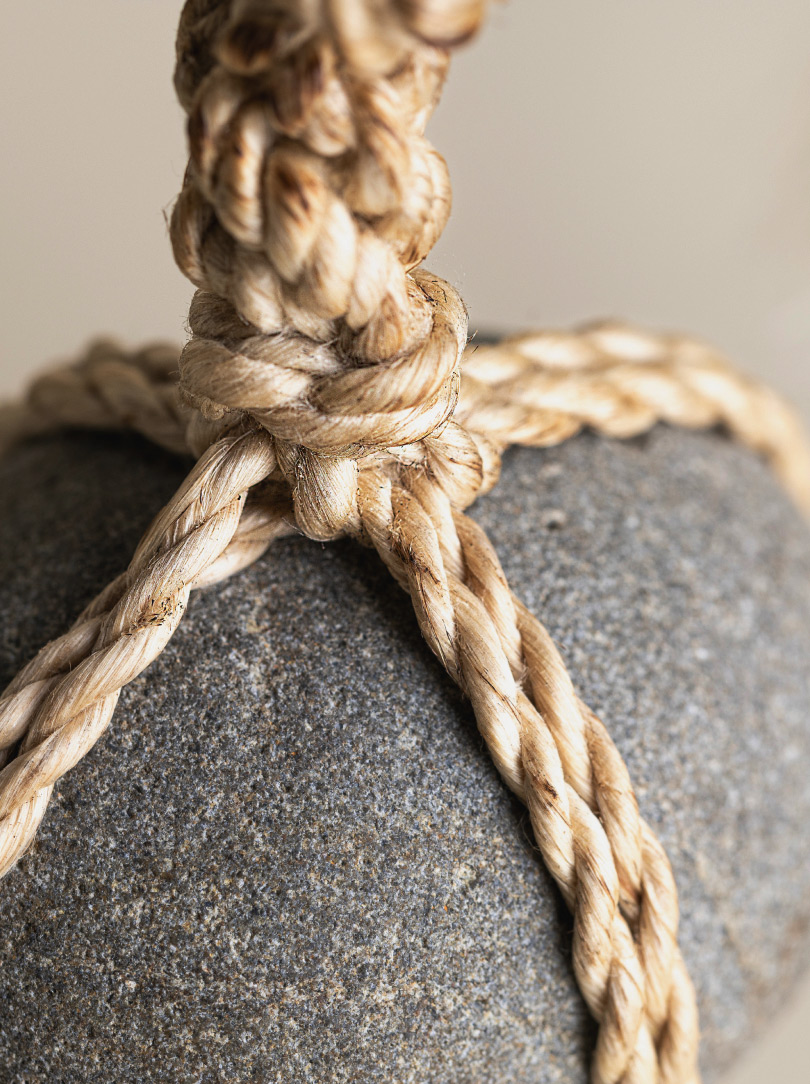 AGOBAY Showroom ZurichOften used in Japanese temples and tea houses, kekkai stones are crafted with intention. They are not merely objects but keepers of spiritual wisdom, echoing the Zen philosophy that ‘heaven, earth and I all share the same origin, and are therefore one’. In Japan, this has led to a spirit of respect for nature and a desire to live in harmony with it since ancient times. The tactile roughness of the stone and the smooth strength of the hemp invite one to ponder the interconnectedness of our existence with nature.