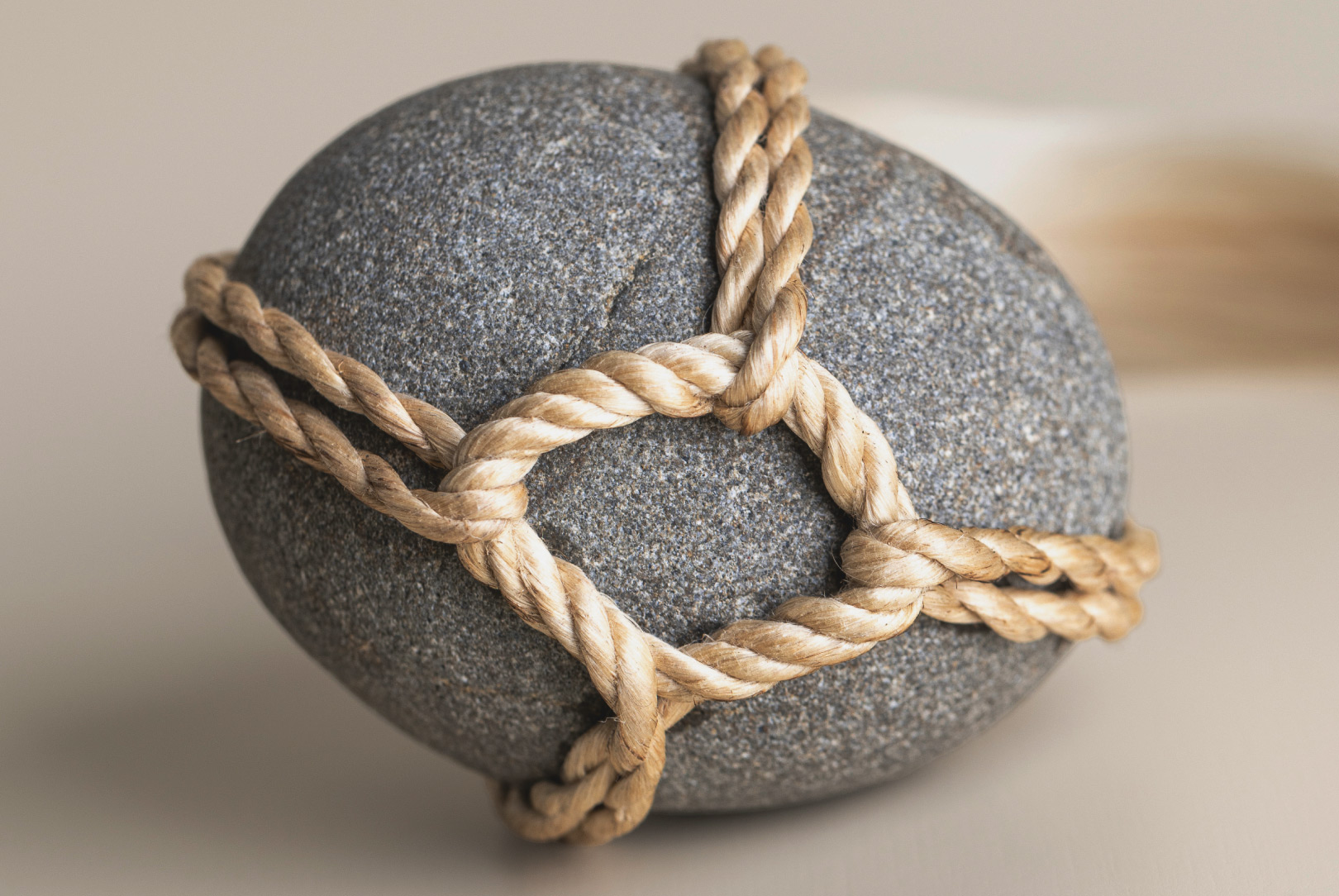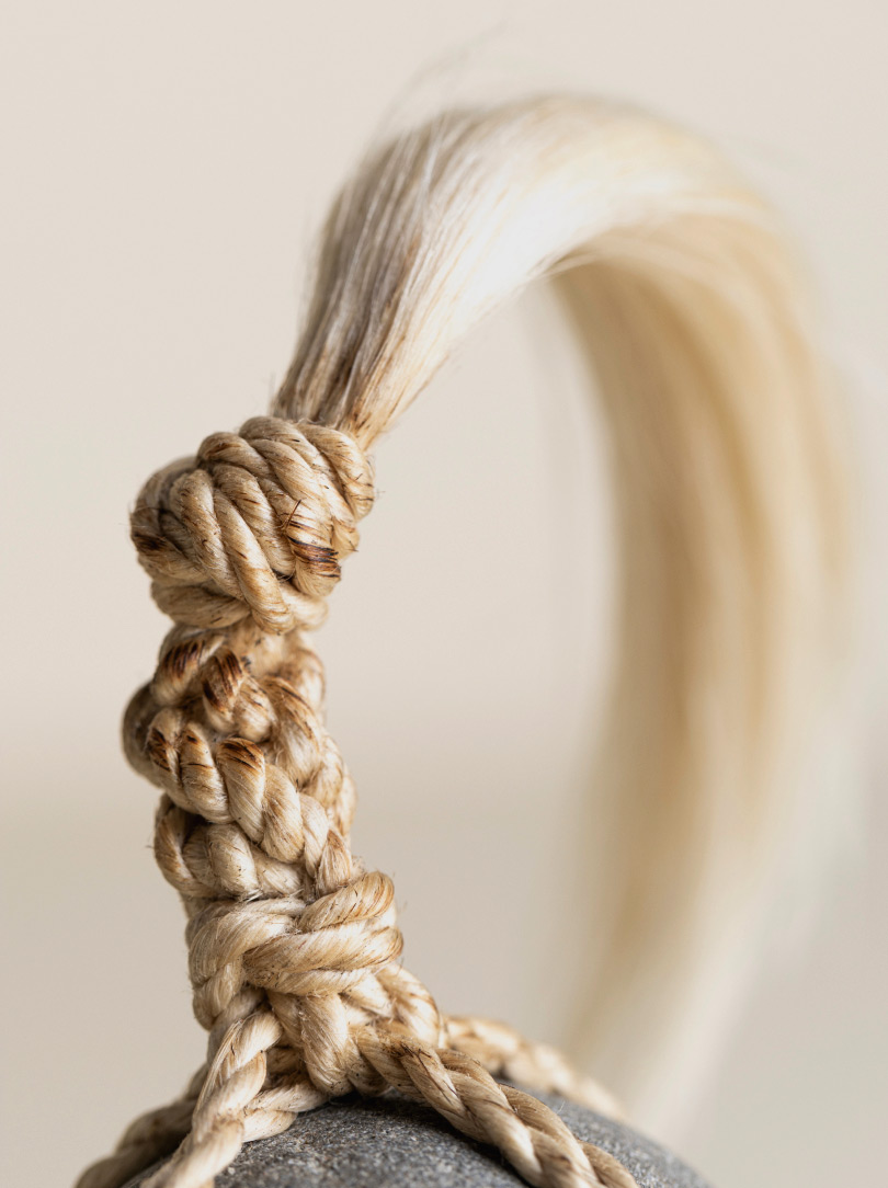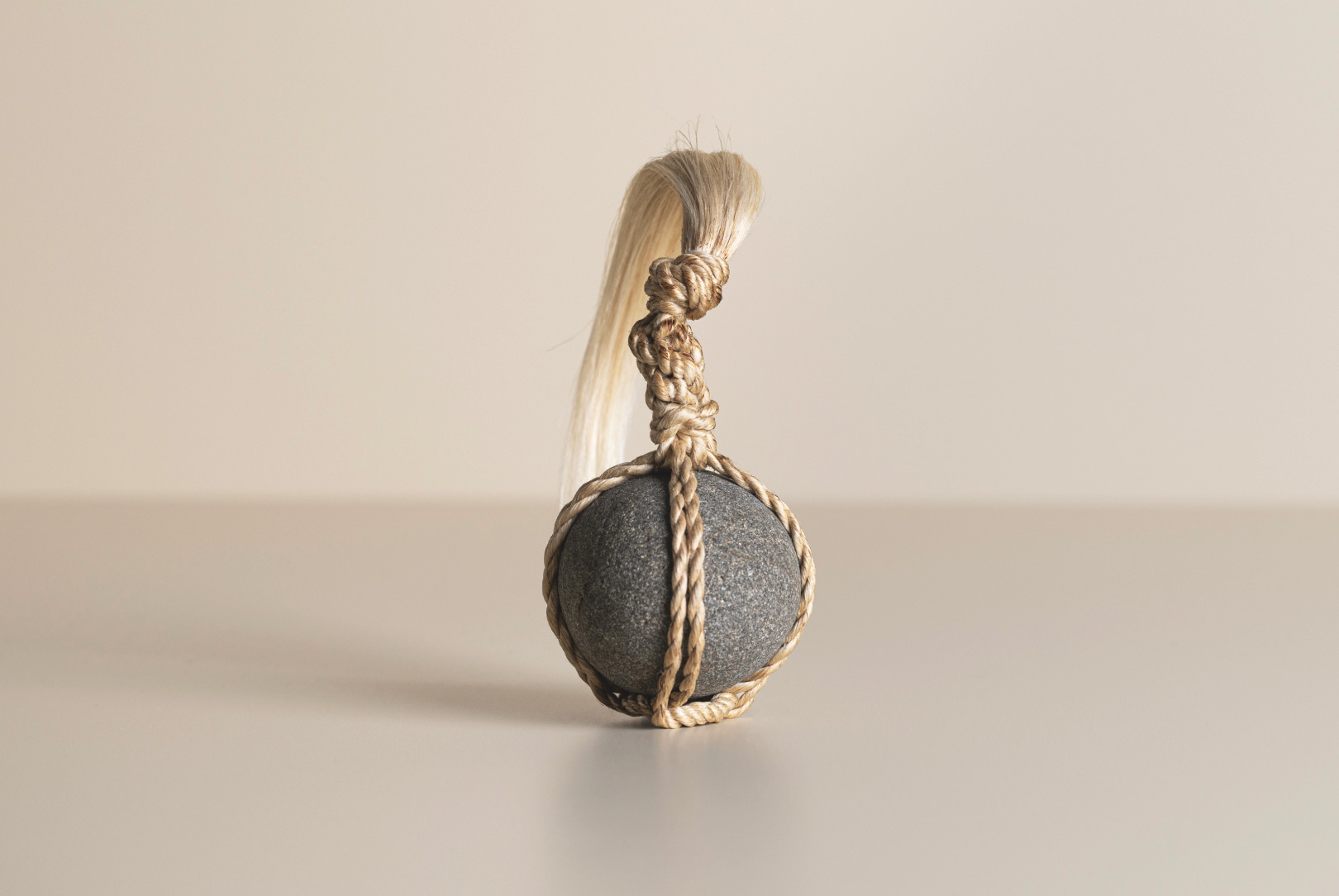 AGOBAY Showroom ZurichOften used in Japanese temples and tea houses, kekkai stones are crafted with intention. They are not merely objects but keepers of spiritual wisdom, echoing the Zen philosophy that ‘heaven, earth and I all share the same origin, and are therefore one’. In Japan, this has led to a spirit of respect for nature and a desire to live in harmony with it since ancient times. The tactile roughness of the stone and the smooth strength of the hemp invite one to ponder the interconnectedness of our existence with nature.