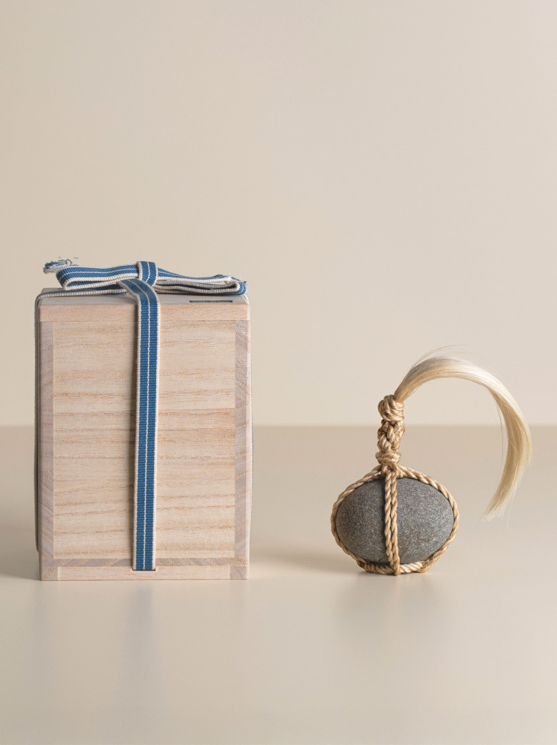 Each stone is delicately wrapped in washi paper, a traditional Japanese paper crafted from the elongated inner fibres of three plants: kozo, mitsumata and gampi. It is presented in a wooden box bearing the artisan’s signature mark. The box itself is made of Paulownia wood, known in East Asia as the ‘empress tree’ and valued for its lightweight but strong properties.