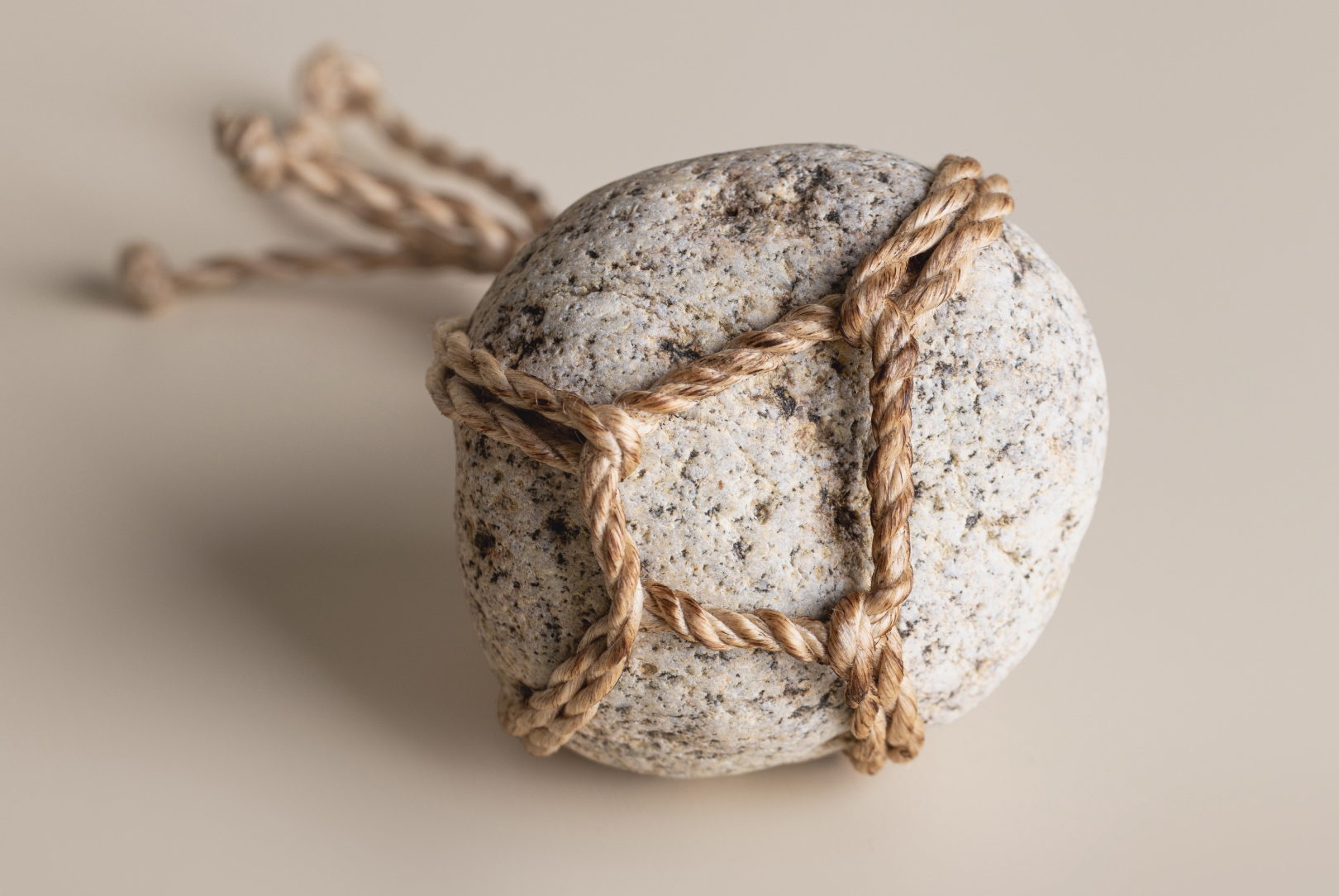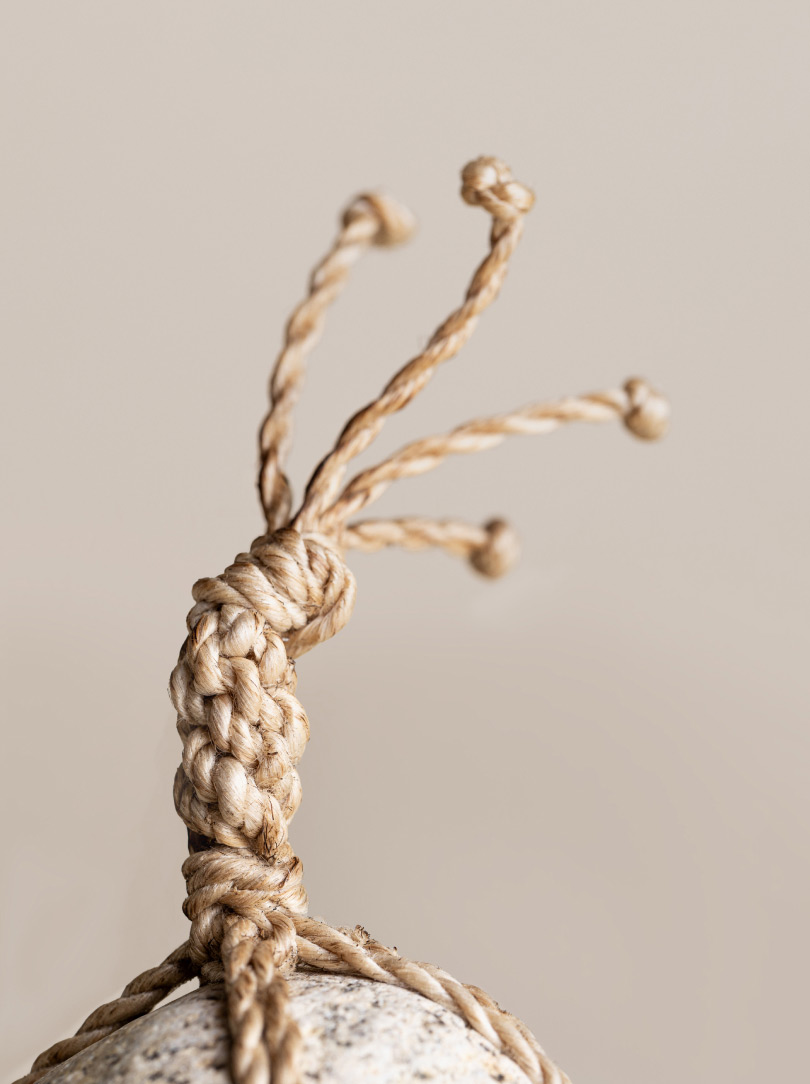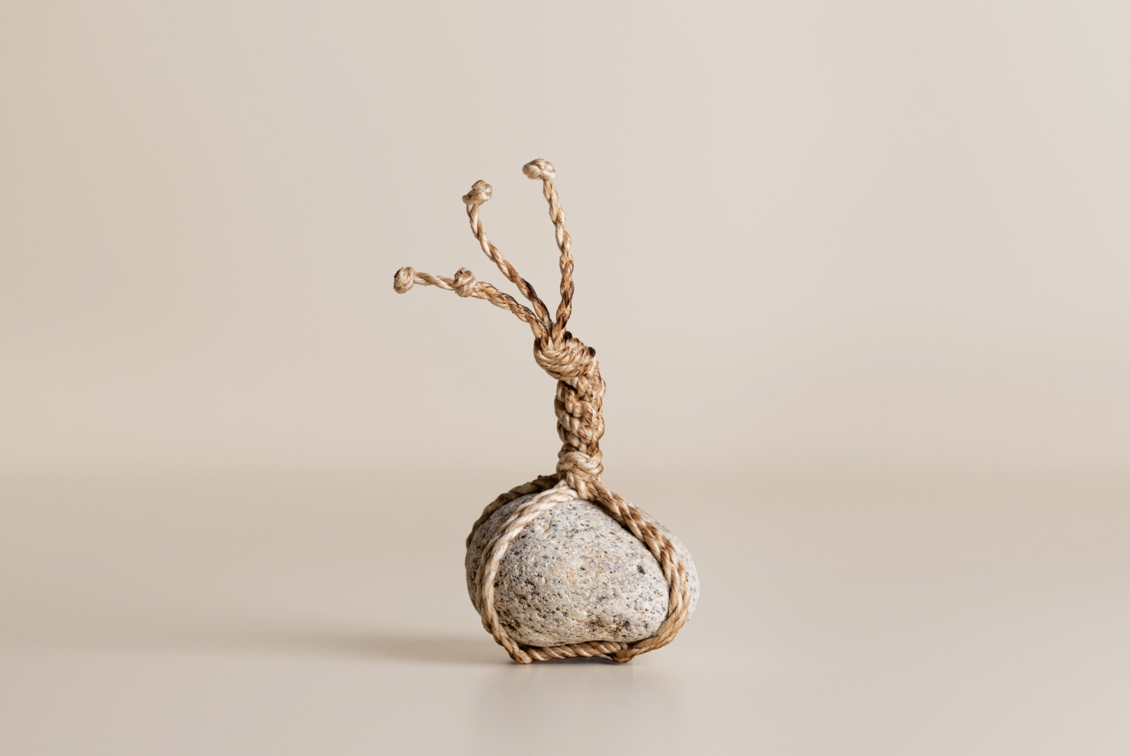 AGOBAY Showroom ZurichOften used in Japanese temples and tea houses, kekkai stones are crafted with intention. They are not merely objects but keepers of spiritual wisdom, echoing the Zen philosophy that ‘heaven, earth and I all share the same origin, and are therefore one’. In Japan, this has led to a spirit of respect for nature and a desire to live in harmony with it since ancient times. The tactile roughness of the stone and the smooth strength of the hemp invite one to ponder the interconnectedness of our existence with nature.
