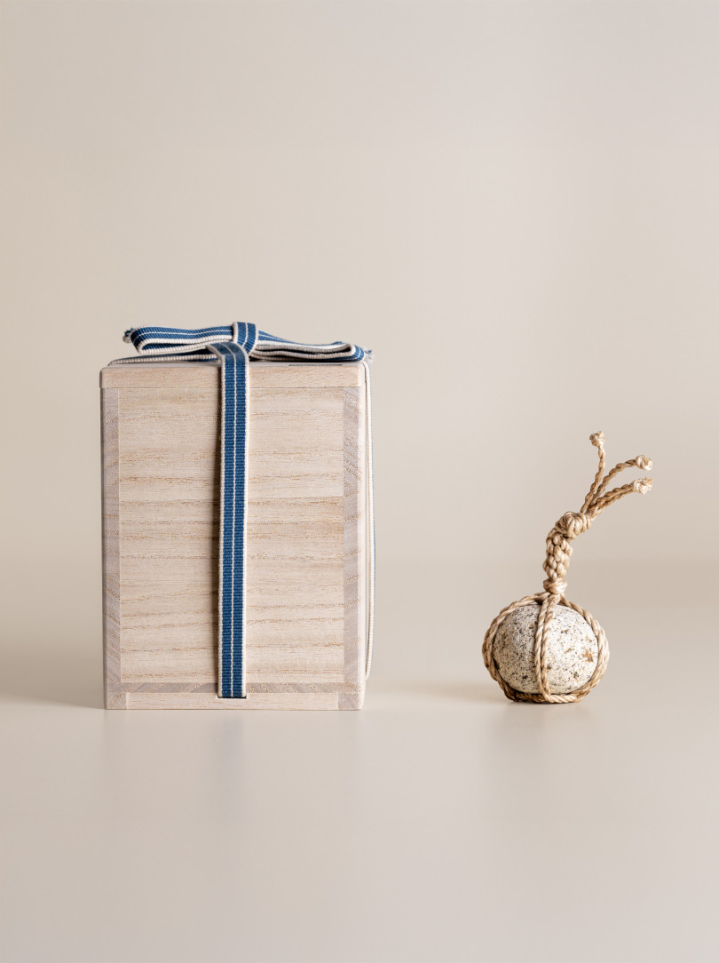 Each stone is delicately wrapped in washi paper, a traditional Japanese paper crafted from the elongated inner fibres of three plants: kozo, mitsumata and gampi. It is presented in a wooden box bearing the artisan’s signature mark. The box itself is made of Paulownia wood, known in East Asia as the ‘empress tree’ and valued for its lightweight but strong properties.