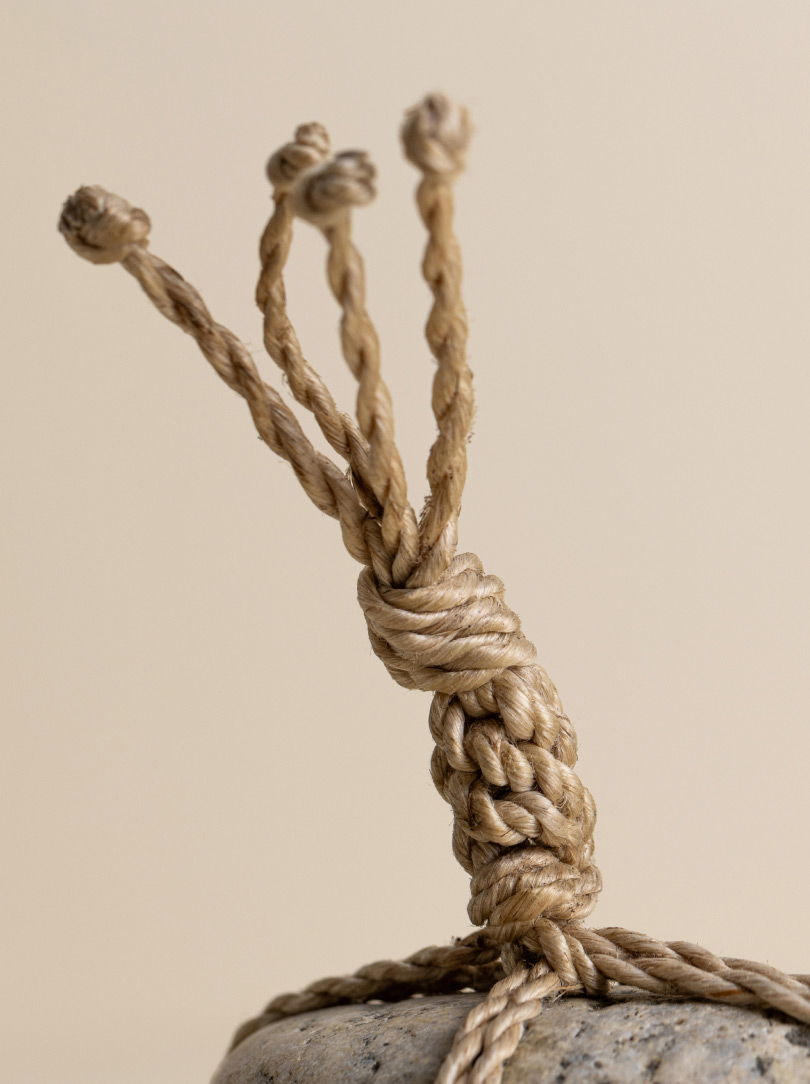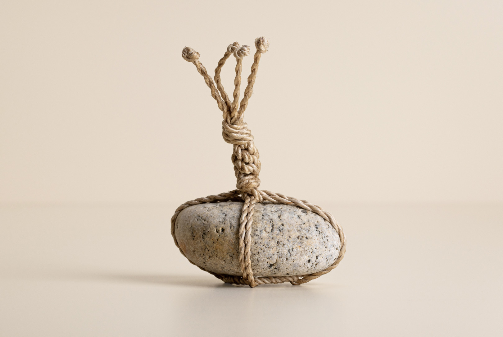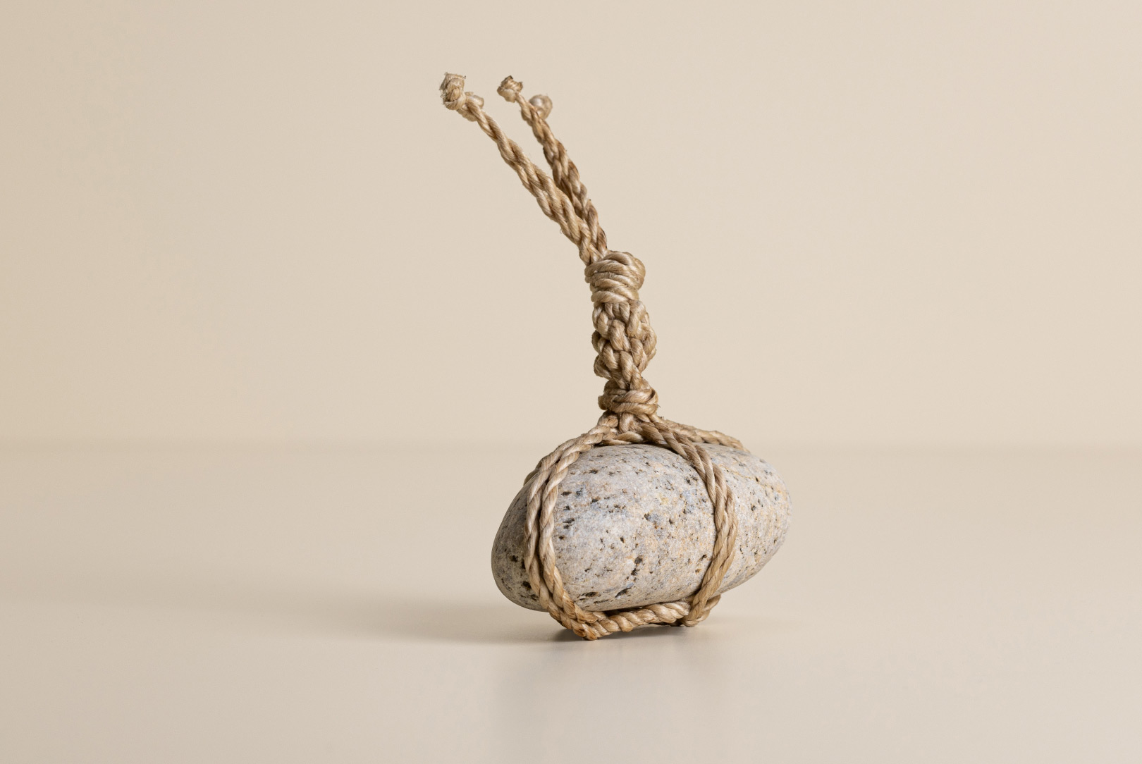 AGOBAY Showroom ZurichOften used in Japanese temples and tea houses, ‘kekkai’ stones are crafted with intention. They are not merely objects but keepers of spiritual wisdom, echoing the Zen philosophy that ‘heaven, earth and I all share the same origin, and are therefore one’. In Japan, this has led to a spirit of respect for nature and a desire to live in harmony with it since ancient times. The tactile roughness of the stone and the smooth strength of the hemp invite one to ponder the interconnectedness of our existence with nature.