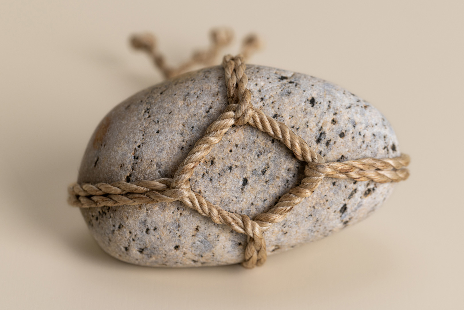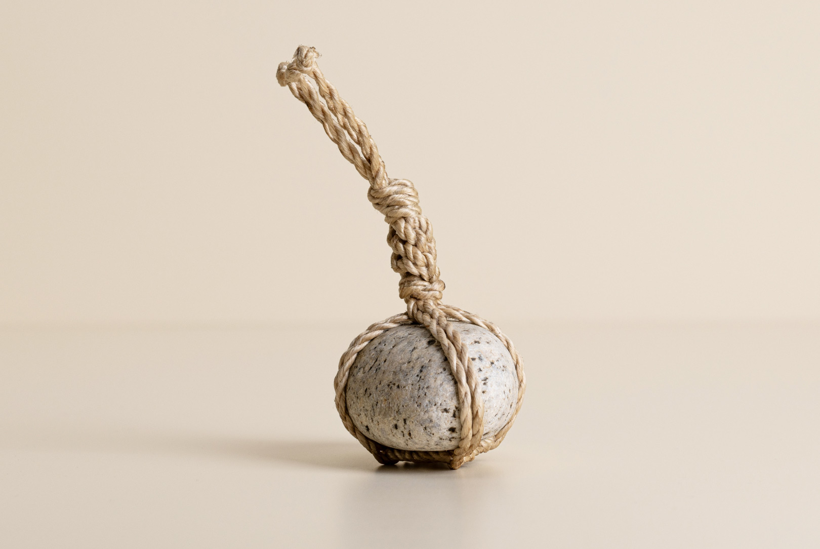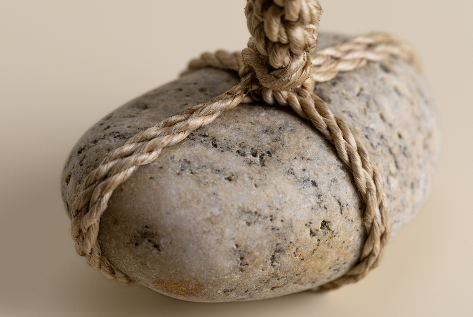 AGOBAY Showroom ZurichOften used in Japanese temples and tea houses, ‘kekkai’ stones are crafted with intention. They are not merely objects but keepers of spiritual wisdom, echoing the Zen philosophy that ‘heaven, earth and I all share the same origin, and are therefore one’. In Japan, this has led to a spirit of respect for nature and a desire to live in harmony with it since ancient times. The tactile roughness of the stone and the smooth strength of the hemp invite one to ponder the interconnectedness of our existence with nature.