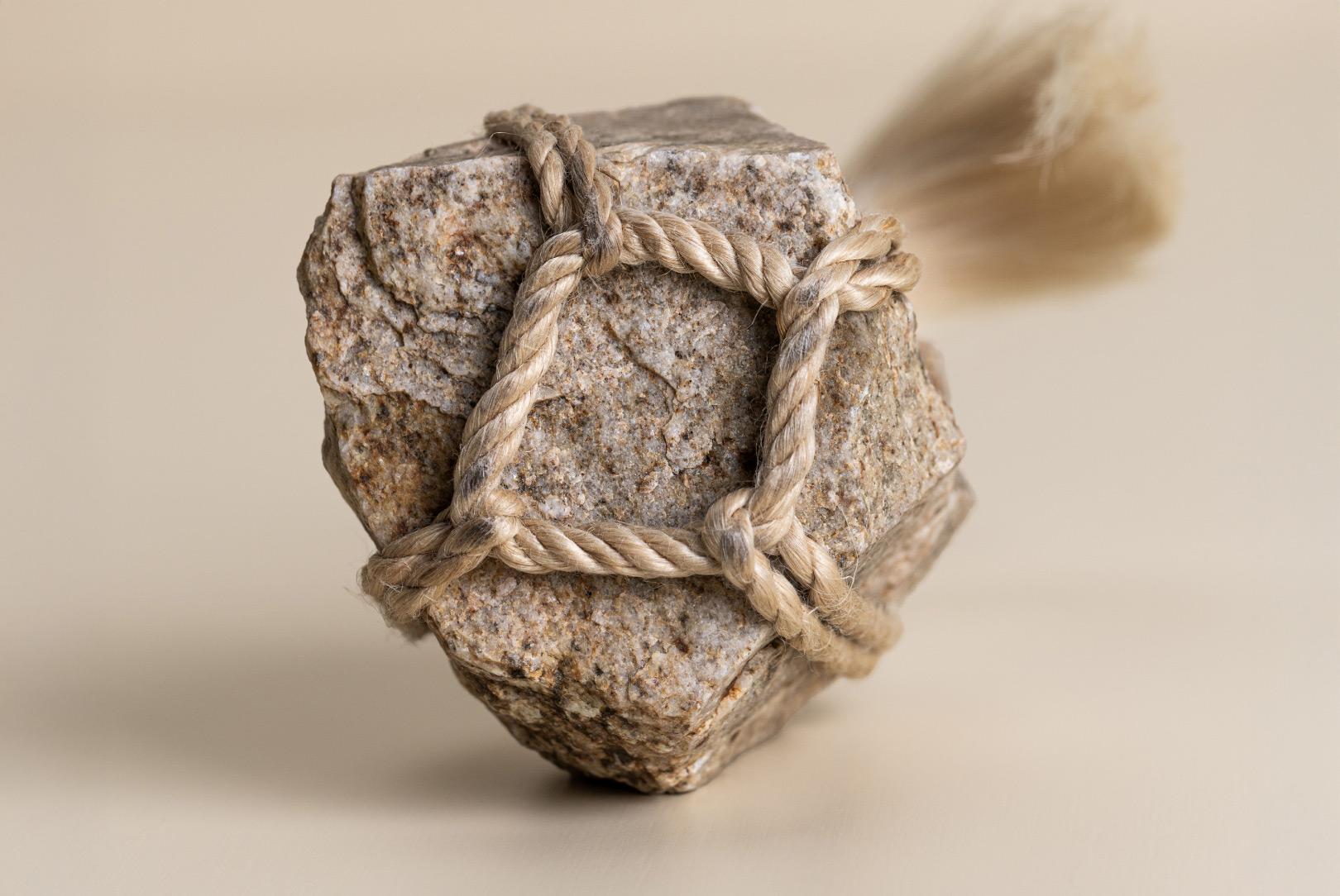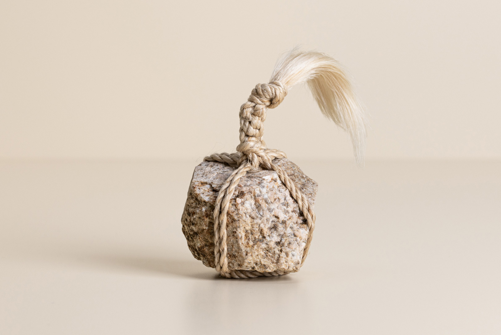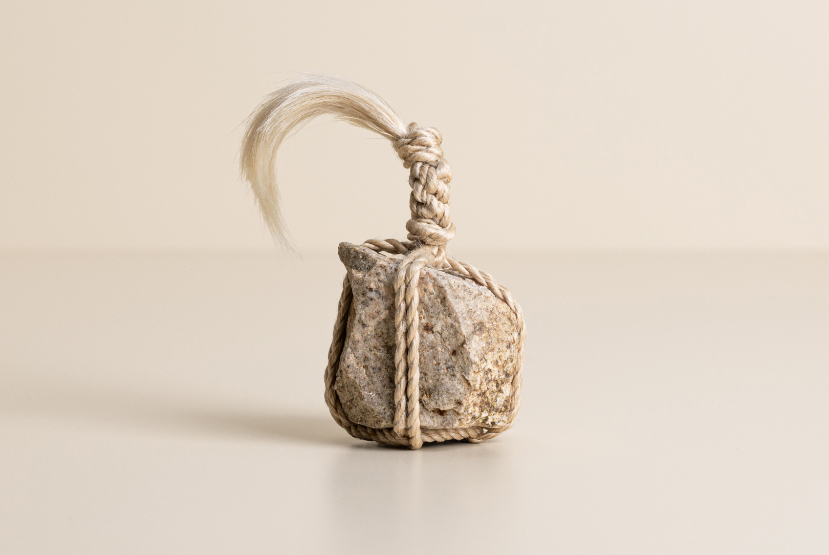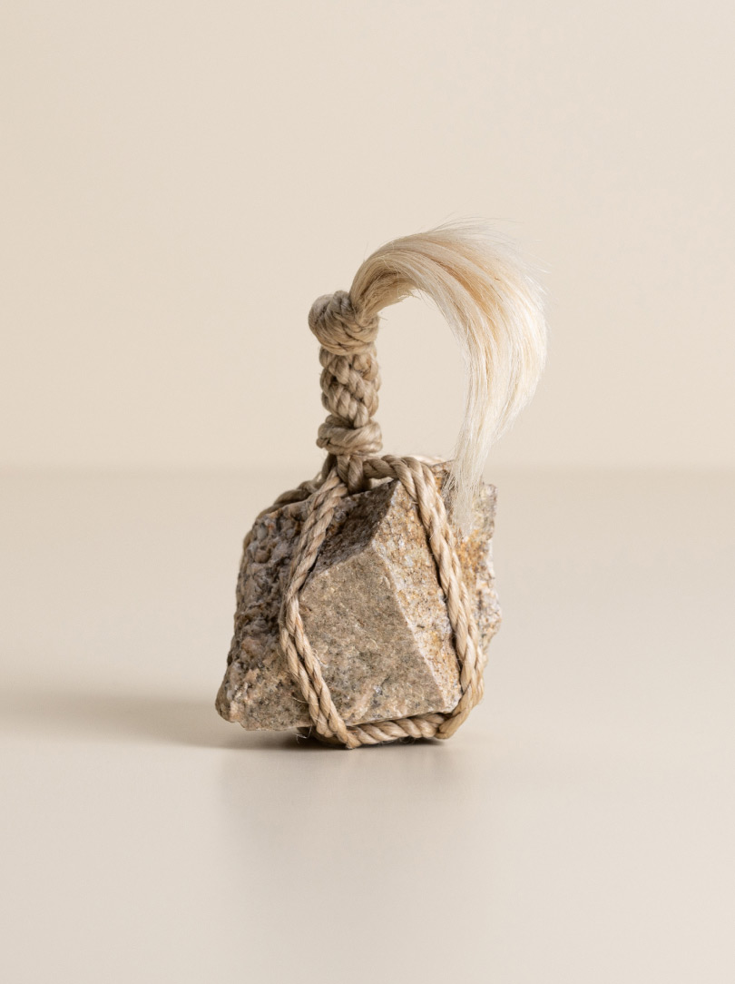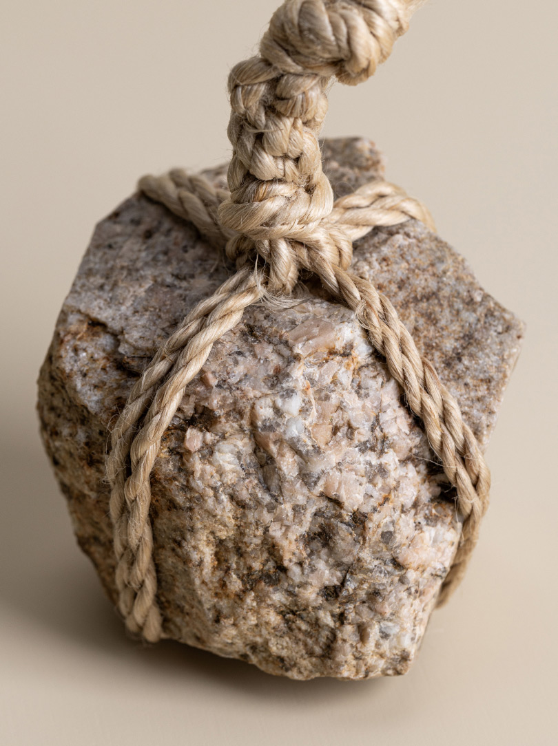 AGOBAY Showroom ZurichOften used in Japanese temples and tea houses, ‘kekkai’ stones are crafted with intention. They are not merely objects but keepers of spiritual wisdom, echoing the Zen philosophy that ‘heaven, earth and I all share the same origin, and are therefore one’. In Japan, this has led to a spirit of respect for nature and a desire to live in harmony with it since ancient times. The tactile roughness of the stone and the smooth strength of the hemp invite one to ponder the interconnectedness of our existence with nature.