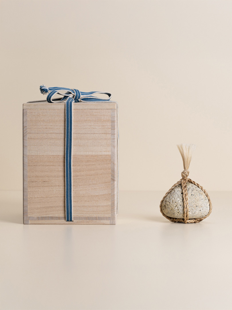 Each stone is delicately wrapped in washi paper, a traditional Japanese paper crafted from the elongated inner fibres of three plants: kozo, mitsumata and gampi. It is presented in a wooden box bearing the artisan’s signature mark. The box itself is made of Paulownia wood, known in East Asia as the ‘empress tree’ and valued for its lightweight but strong properties.