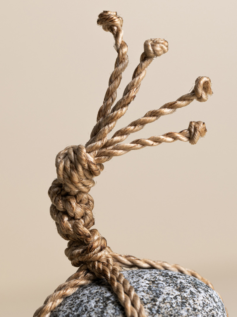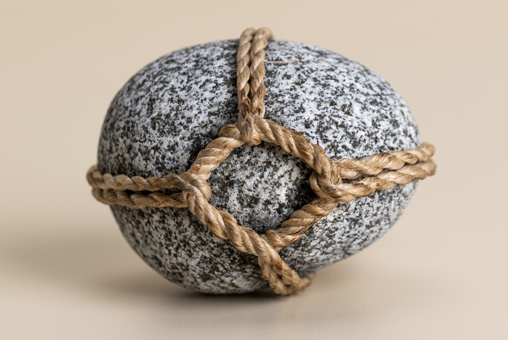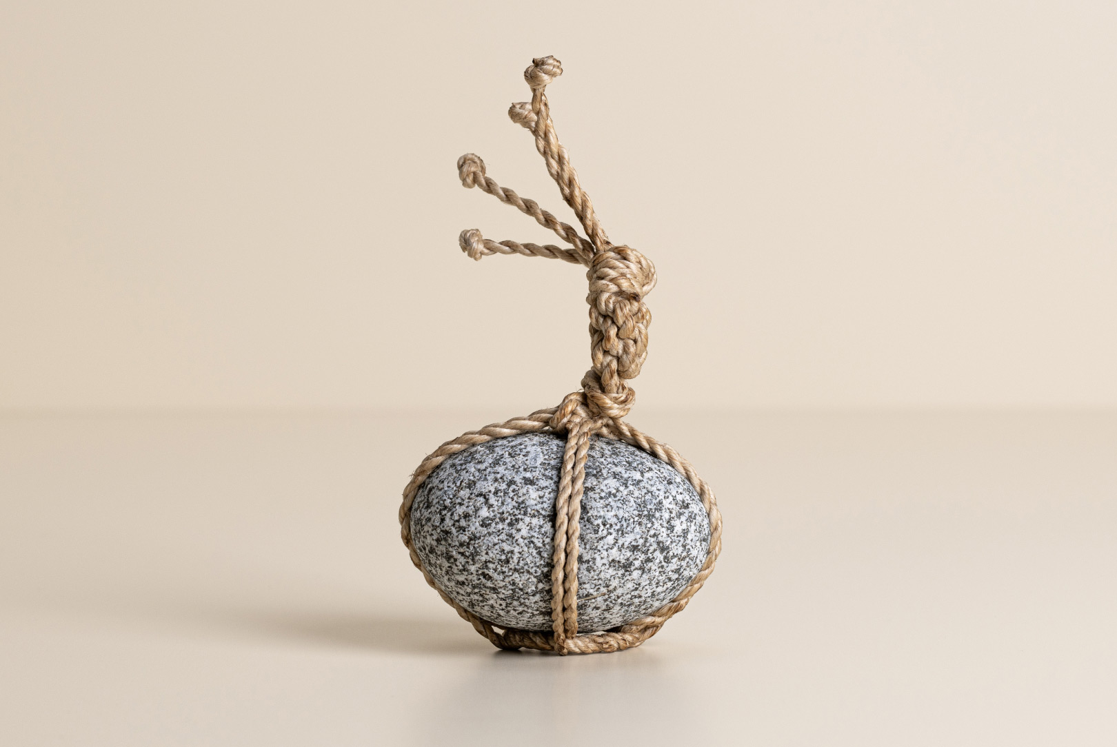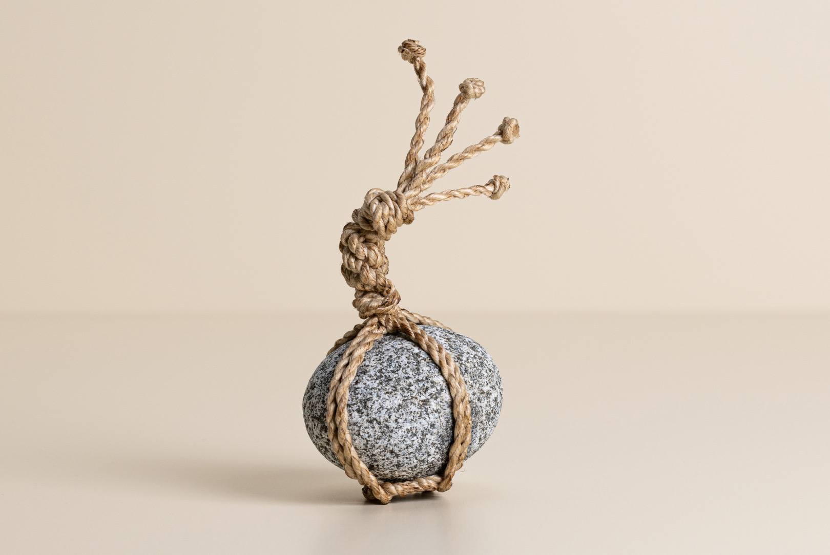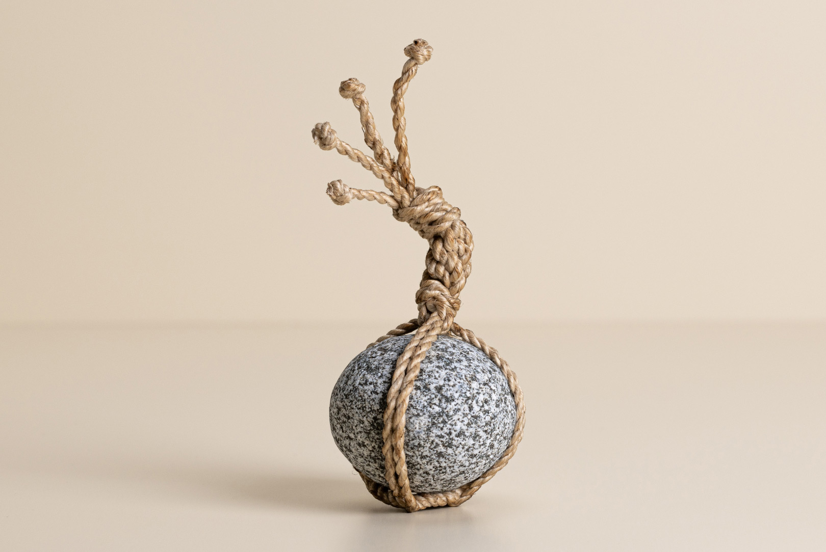 AGOBAY Showroom ZurichOften used in Japanese temples and tea houses, ‘kekkai’ stones are crafted with intention. They are not merely objects but keepers of spiritual wisdom, echoing the Zen philosophy that ‘heaven, earth and I all share the same origin, and are therefore one’. In Japan, this has led to a spirit of respect for nature and a desire to live in harmony with it since ancient times. The tactile roughness of the stone and the smooth strength of the hemp invite one to ponder the interconnectedness of our existence with nature.