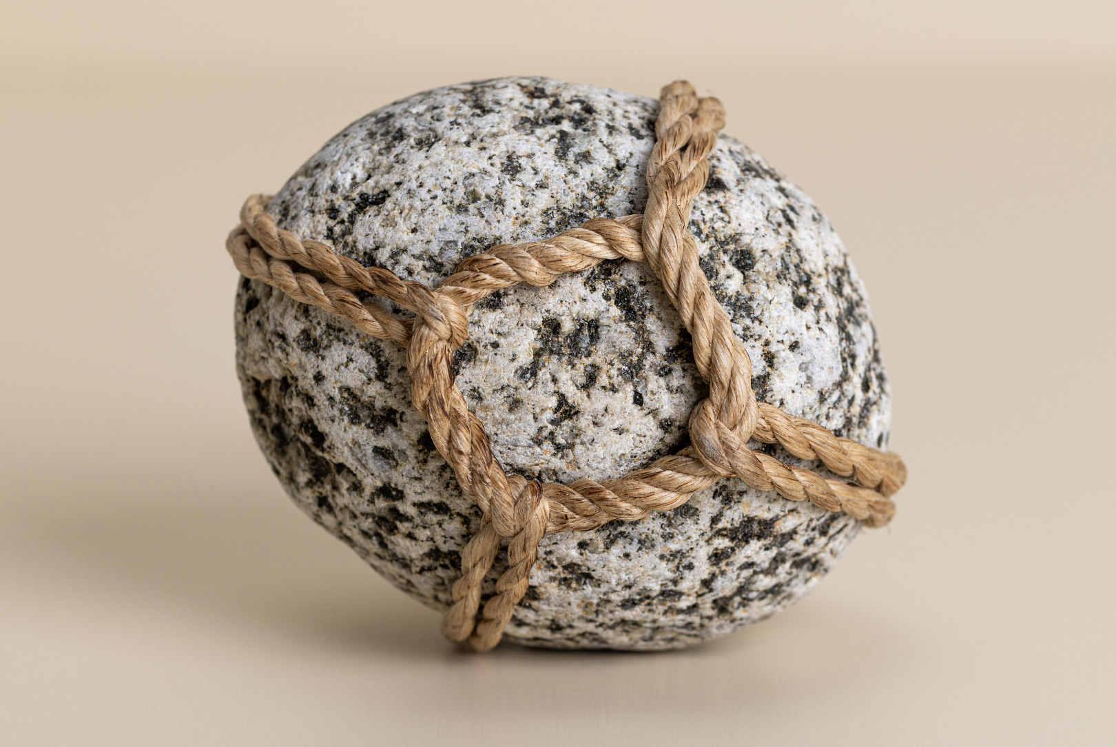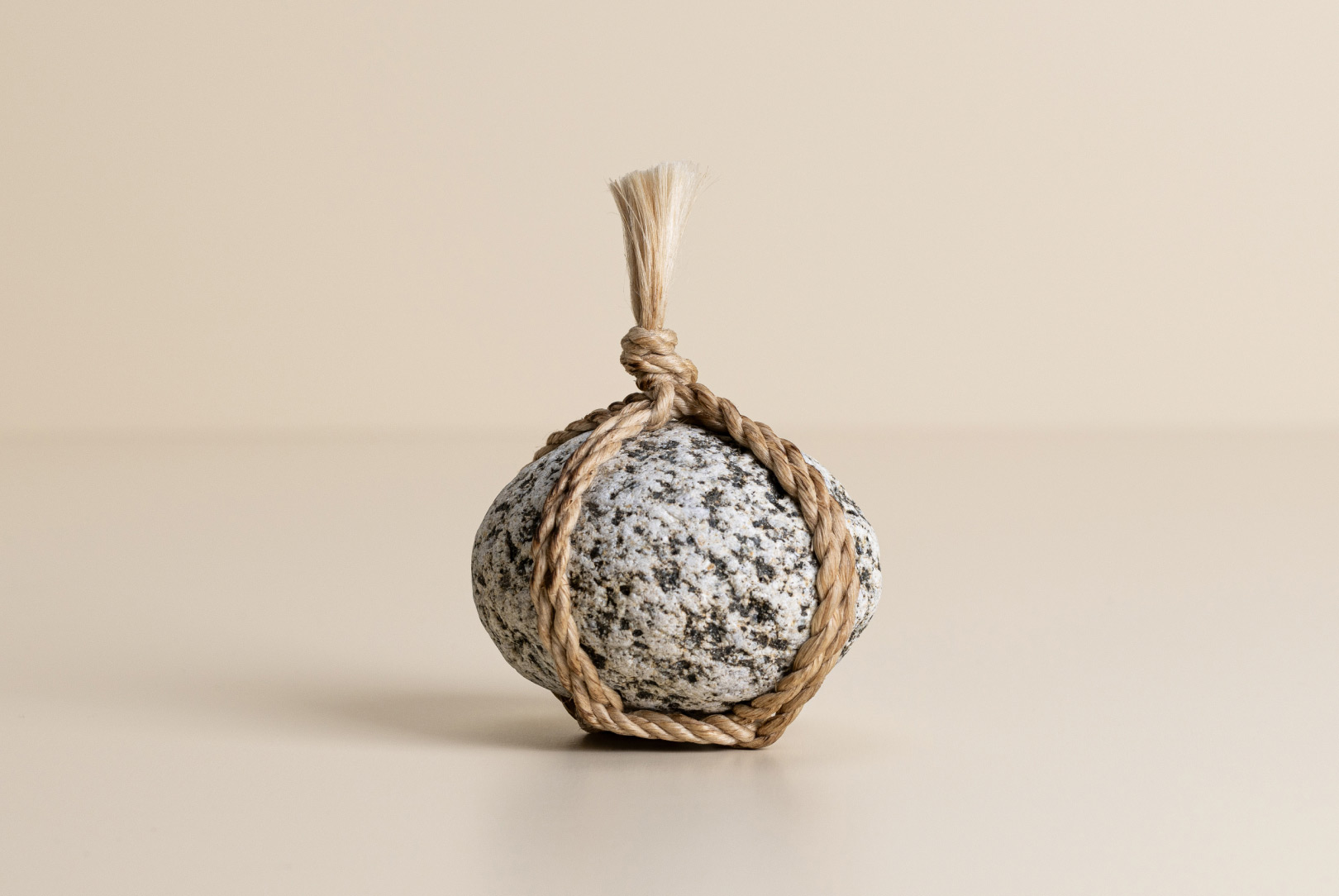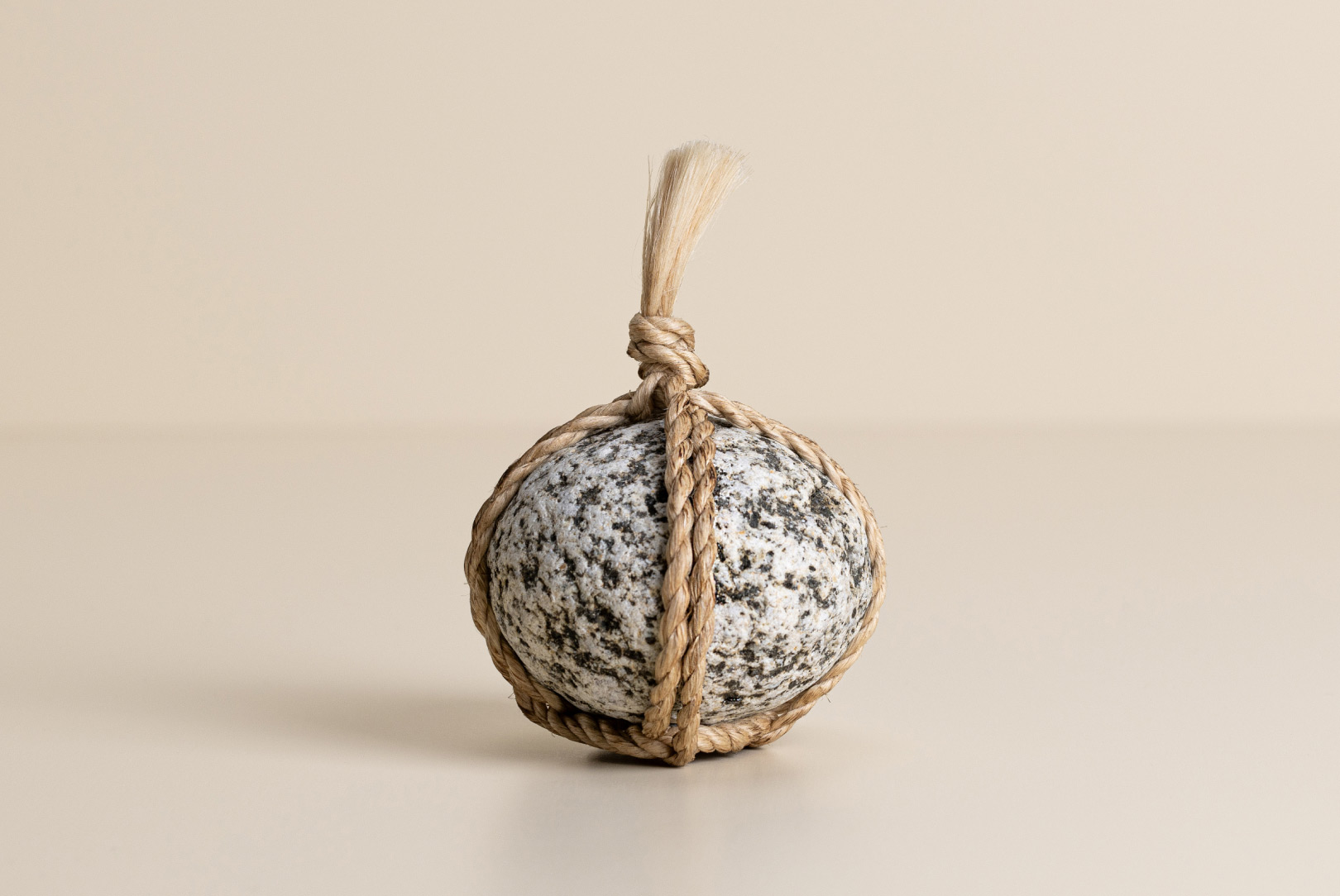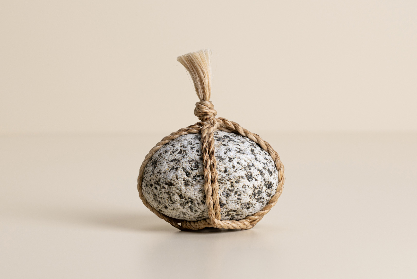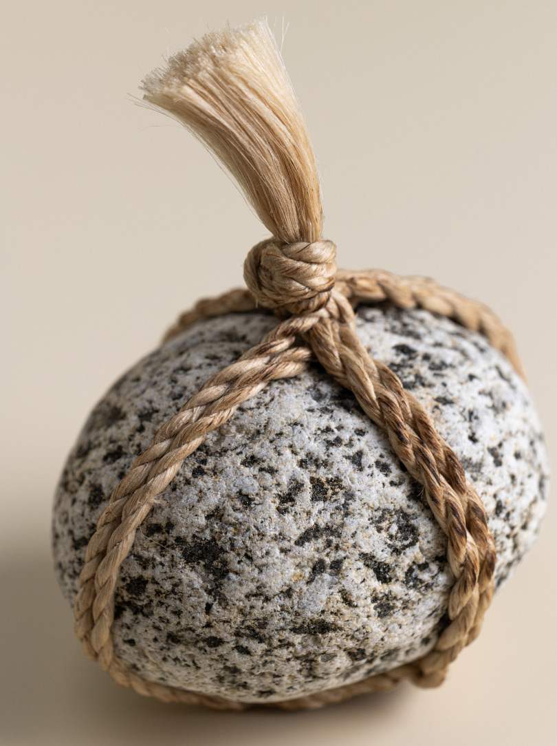 AGOBAY Showroom ZurichOften used in Japanese temples and tea houses, ‘kekkai’ stones are crafted with intention. They are not merely objects but keepers of spiritual wisdom, echoing the Zen philosophy that ‘heaven, earth and I all share the same origin, and are therefore one’. In Japan, this has led to a spirit of respect for nature and a desire to live in harmony with it since ancient times. The tactile roughness of the stone and the smooth strength of the hemp invite one to ponder the interconnectedness of our existence with nature.