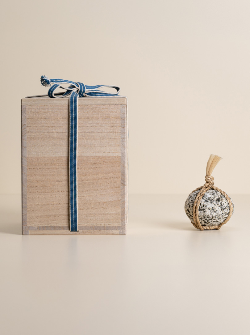 Each stone is delicately wrapped in washi paper, a traditional Japanese paper crafted from the elongated inner fibres of three plants: kozo, mitsumata and gampi. It is presented in a wooden box bearing the artisan’s signature mark. The box itself is made of Paulownia wood, known in East Asia as the ‘empress tree’ and valued for its lightweight but strong properties.