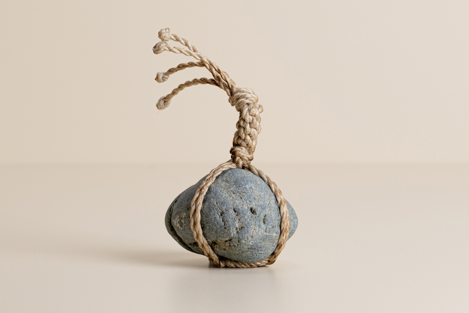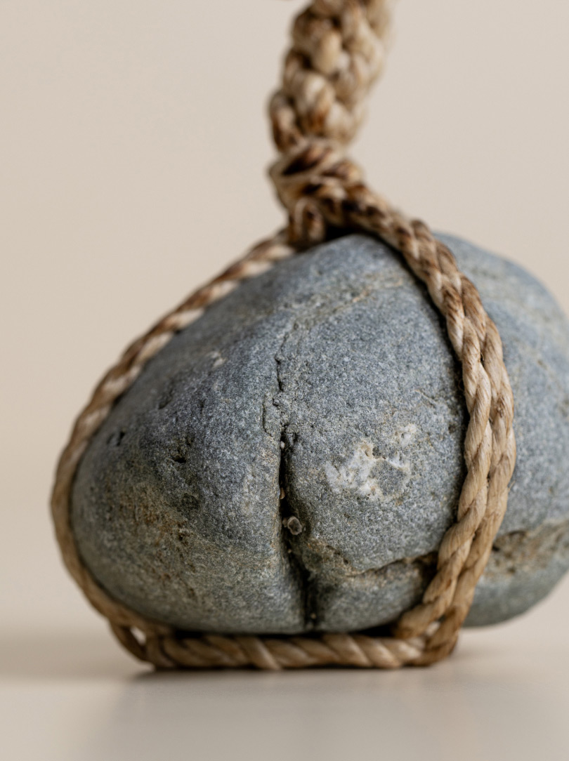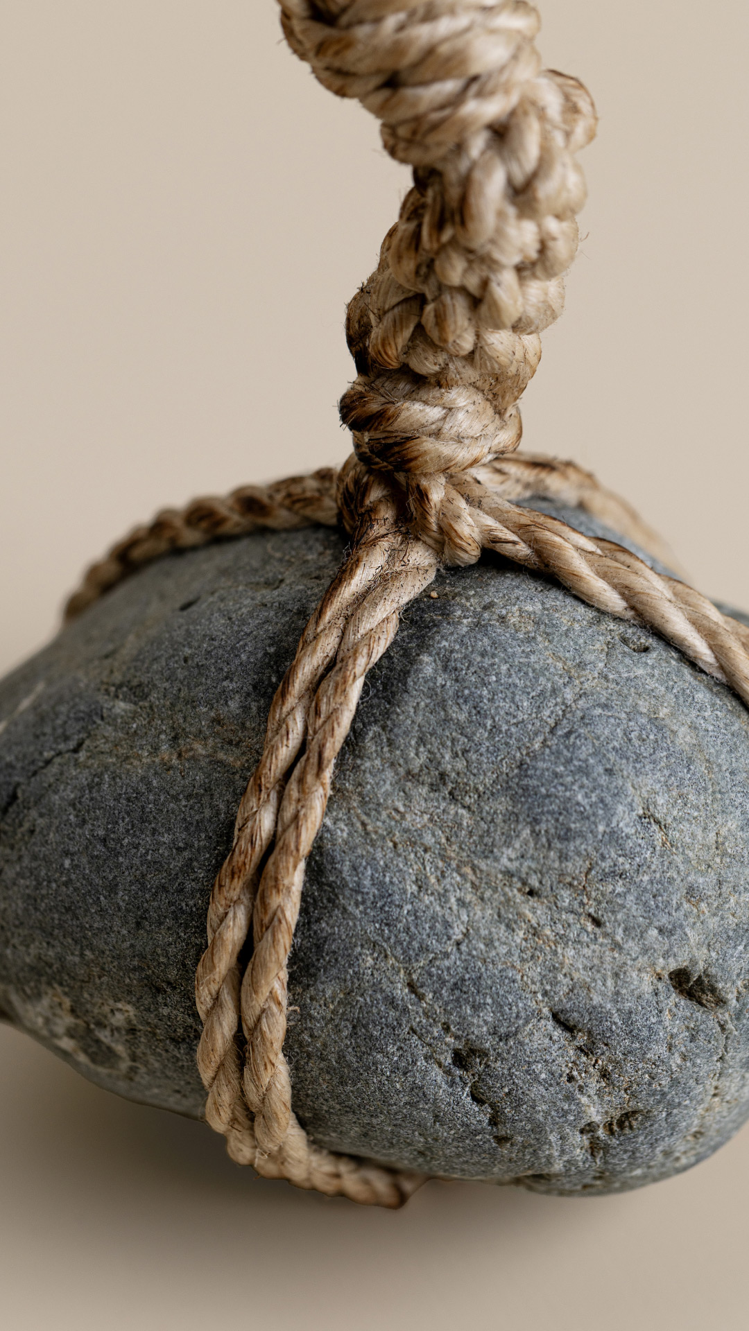 AGOBAY Showroom ZurichOften used in Japanese temples and tea houses, ‘kekkai’ stones are crafted with intention. They are not merely objects but keepers of spiritual wisdom, echoing the Zen philosophy that ‘heaven, earth and I all share the same origin, and are therefore one’. In Japan, this has led to a spirit of respect for nature and a desire to live in harmony with it since ancient times. The tactile roughness of the stone and the smooth strength of the hemp invite one to ponder the interconnectedness of our existence with nature.
