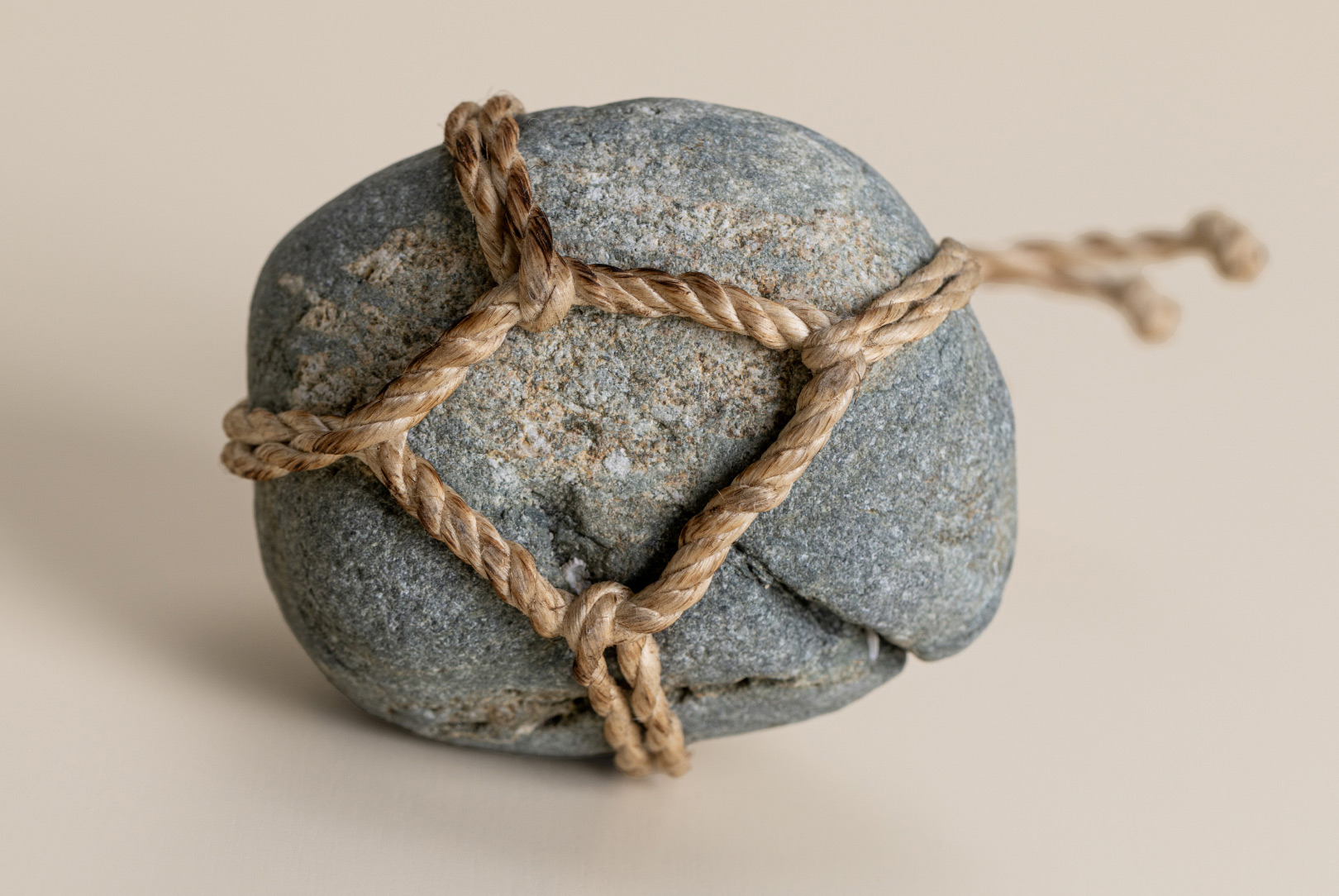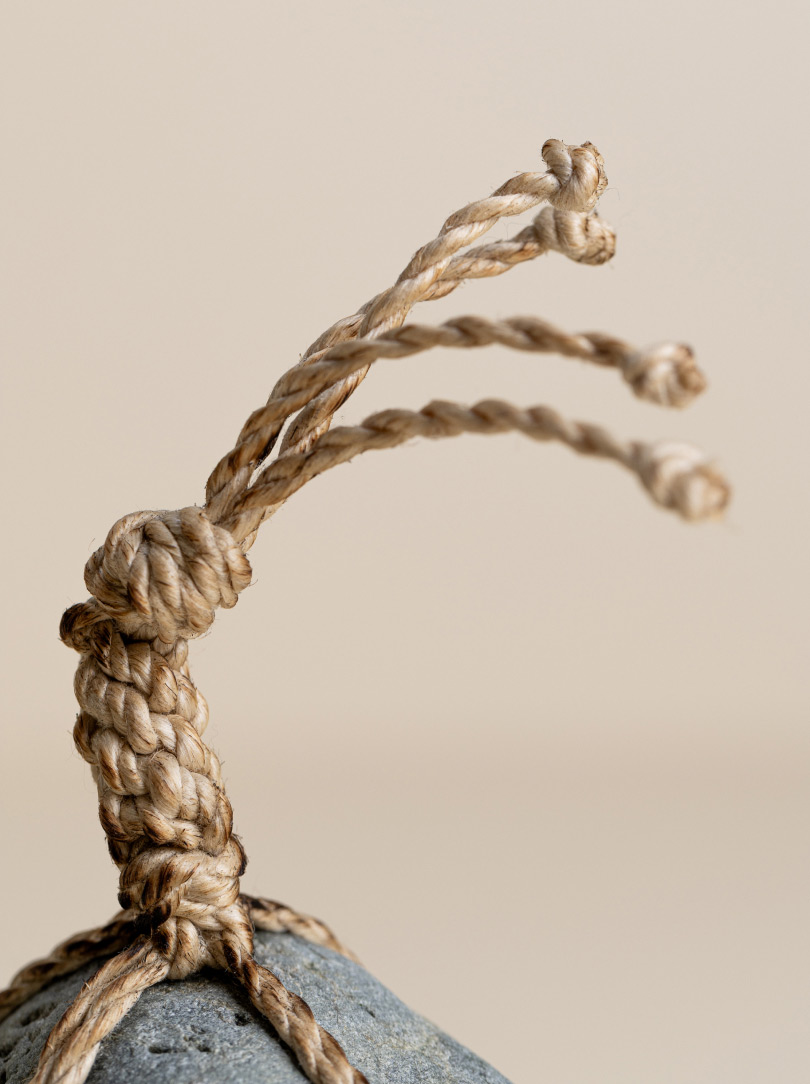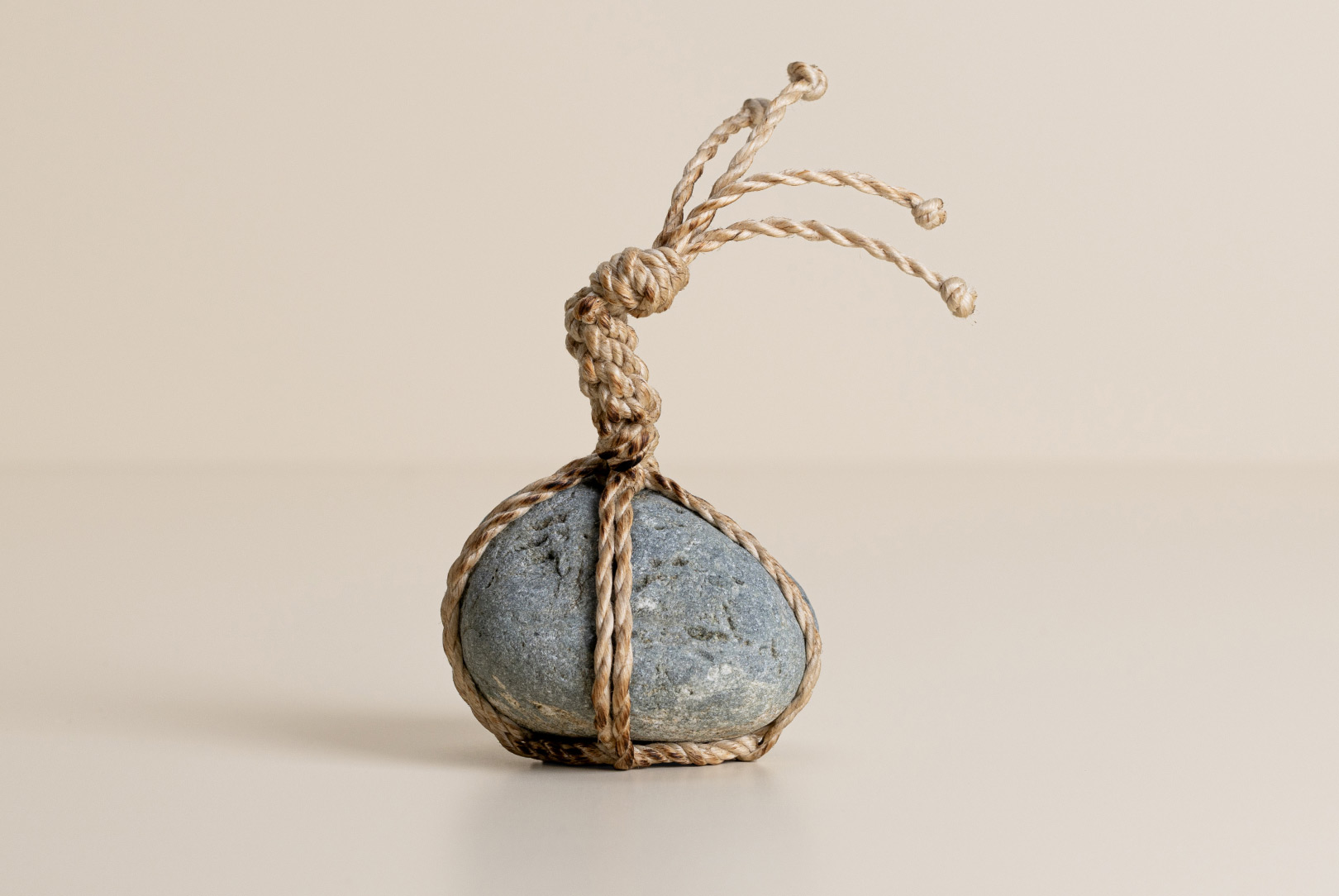 AGOBAY Showroom ZurichOften used in Japanese temples and tea houses, ‘kekkai’ stones are crafted with intention. They are not merely objects but keepers of spiritual wisdom, echoing the Zen philosophy that ‘heaven, earth and I all share the same origin, and are therefore one’. In Japan, this has led to a spirit of respect for nature and a desire to live in harmony with it since ancient times. The tactile roughness of the stone and the smooth strength of the hemp invite one to ponder the interconnectedness of our existence with nature.