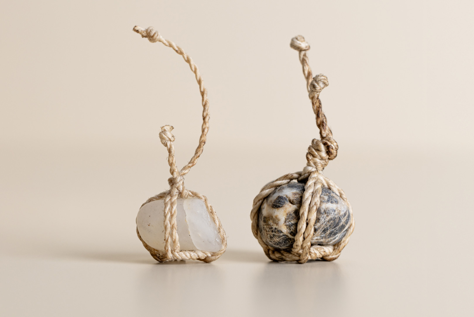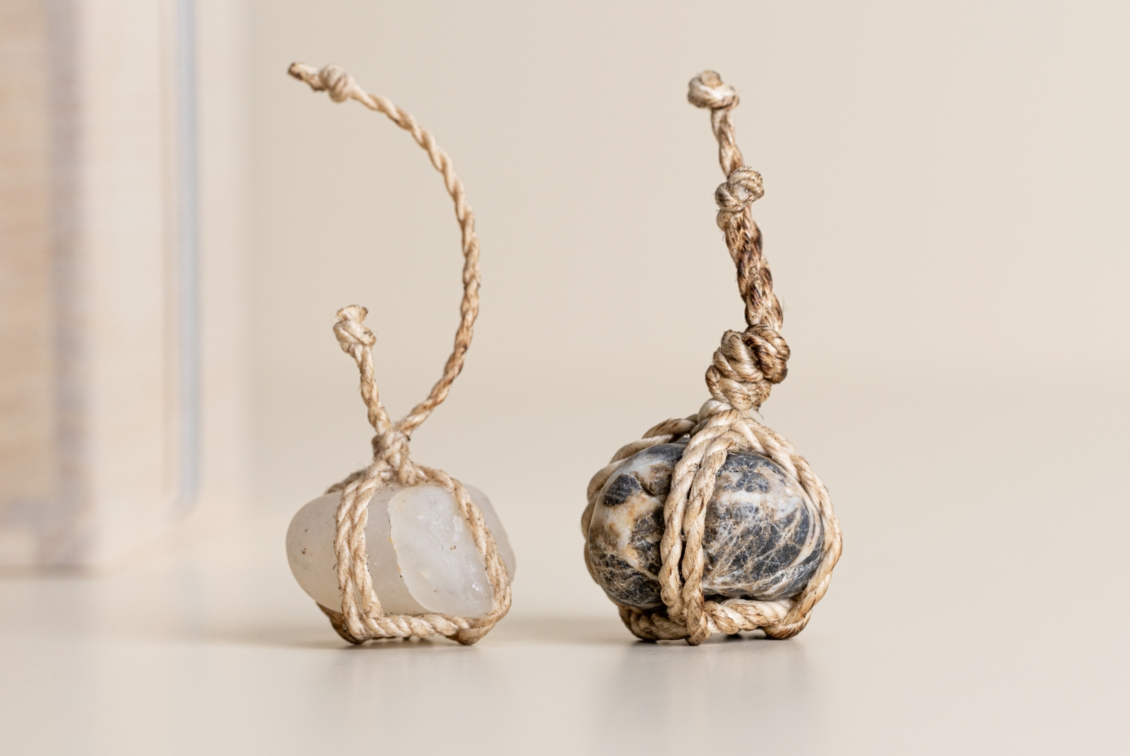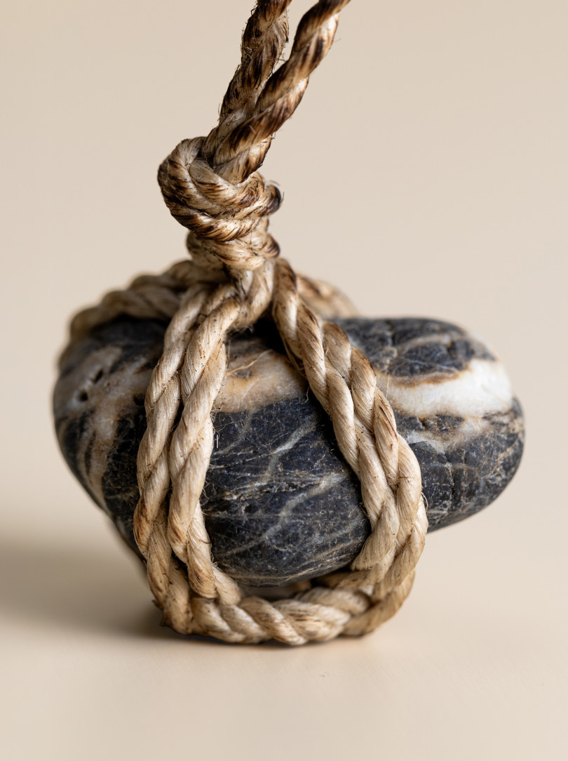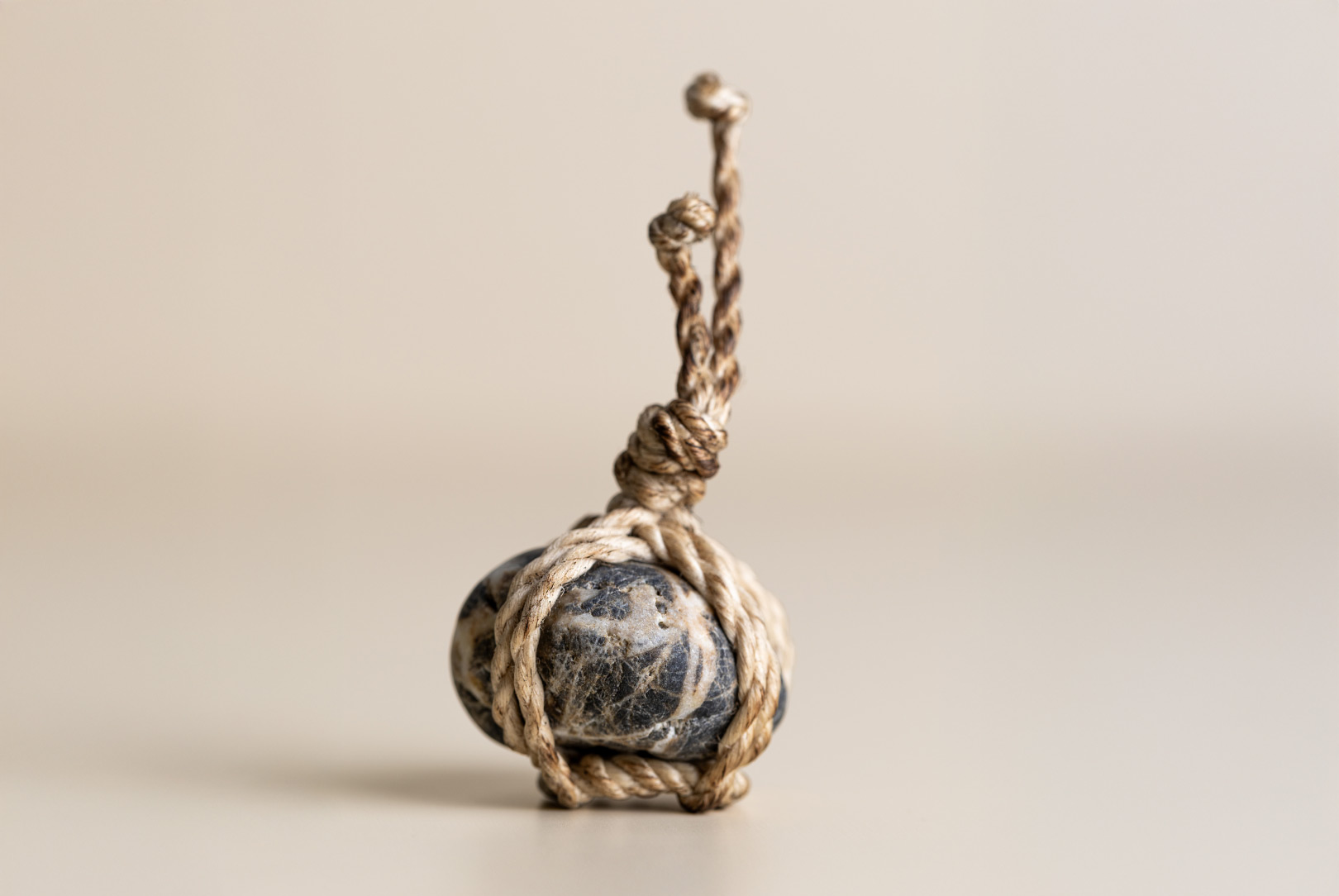 AGOBAY Showroom ZurichOften used in Japanese temples and tea houses, ‘kekkai’ stones are crafted with intention. They are not merely objects but keepers of spiritual wisdom, echoing the Zen philosophy that ‘heaven, earth and I all share the same origin, and are therefore one’. In Japan, this has led to a spirit of respect for nature and a desire to live in harmony with it since ancient times. The tactile roughness of the stone and the smooth strength of the hemp invite one to ponder the interconnectedness of our existence with nature.