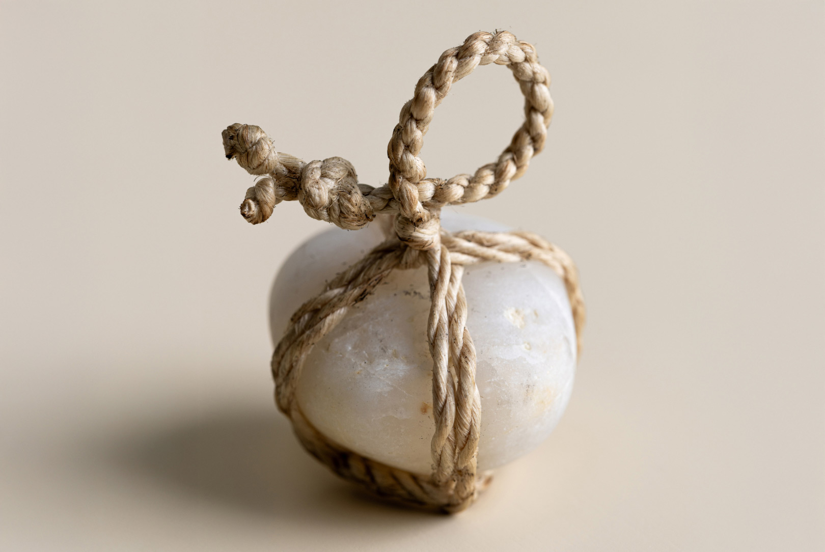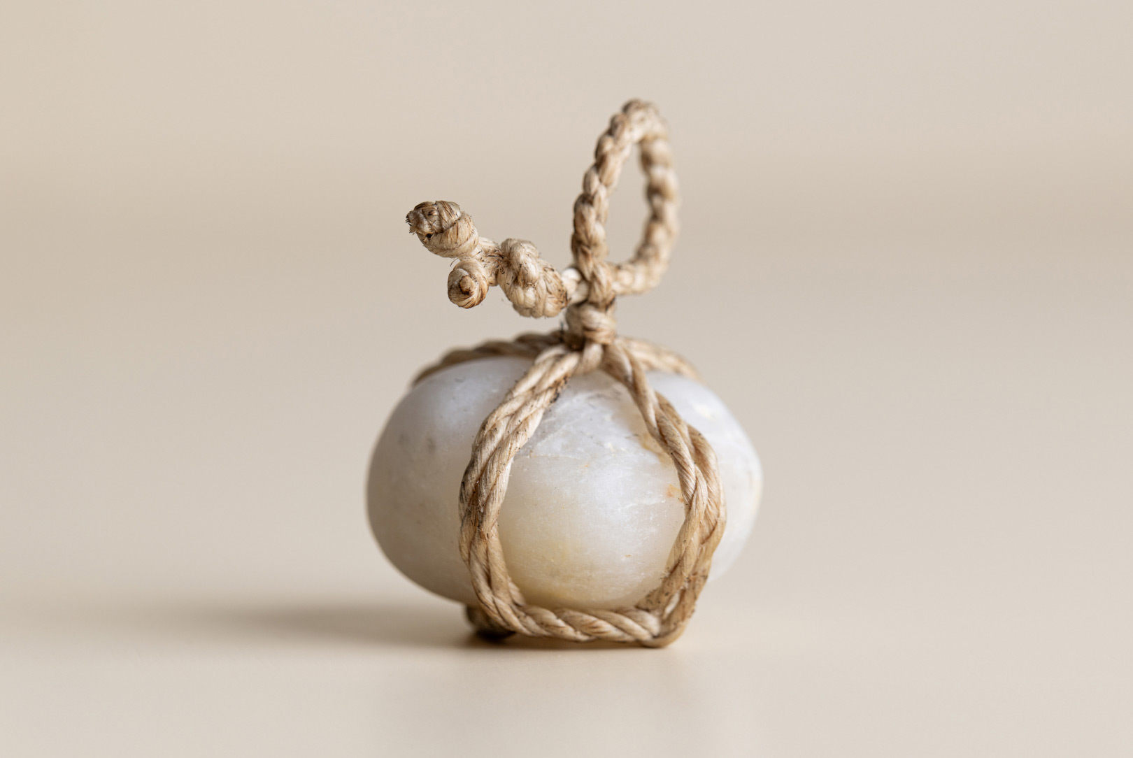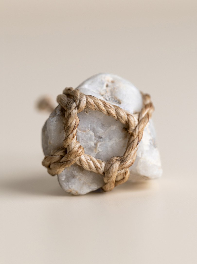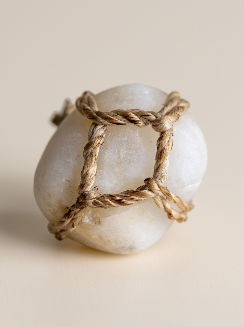 AGOBAY Showroom ZurichOften used in Japanese temples and tea houses, ‘kekkai’ stones are crafted with intention. They are not merely objects but keepers of spiritual wisdom, echoing the Zen philosophy that ‘heaven, earth and I all share the same origin, and are therefore one’. In Japan, this has led to a spirit of respect for nature and a desire to live in harmony with it since ancient times. The tactile roughness of the stone and the smooth strength of the hemp invite one to ponder the interconnectedness of our existence with nature.