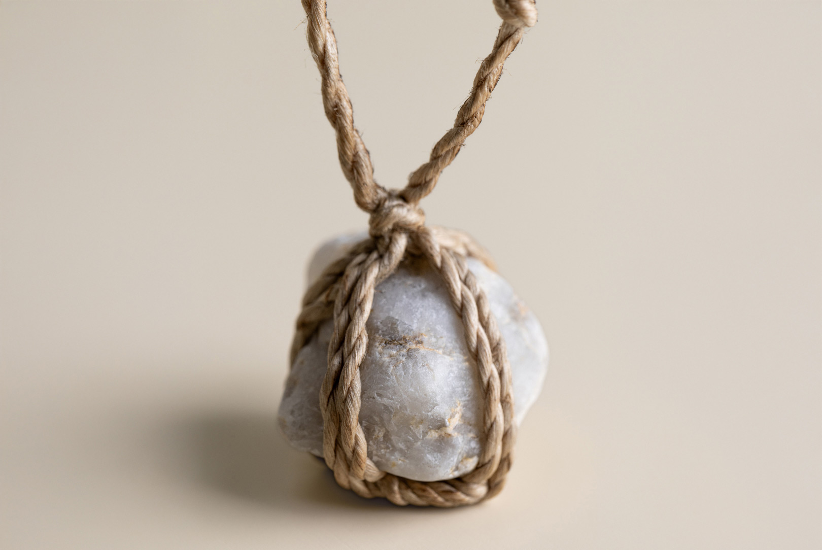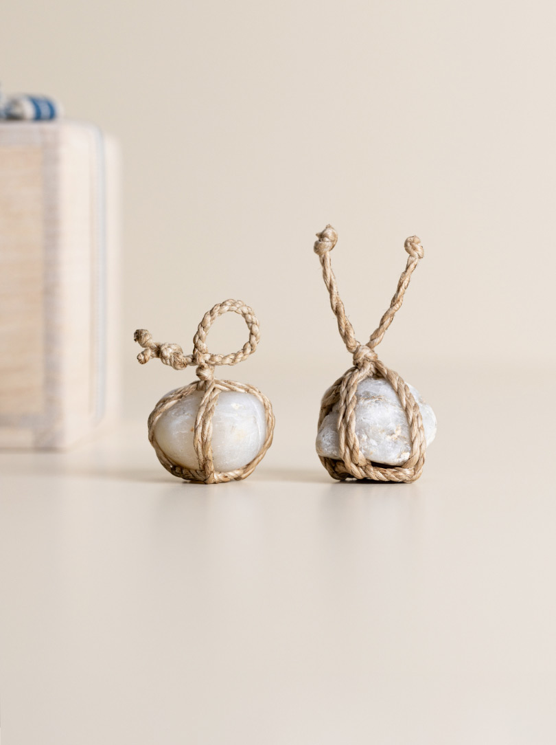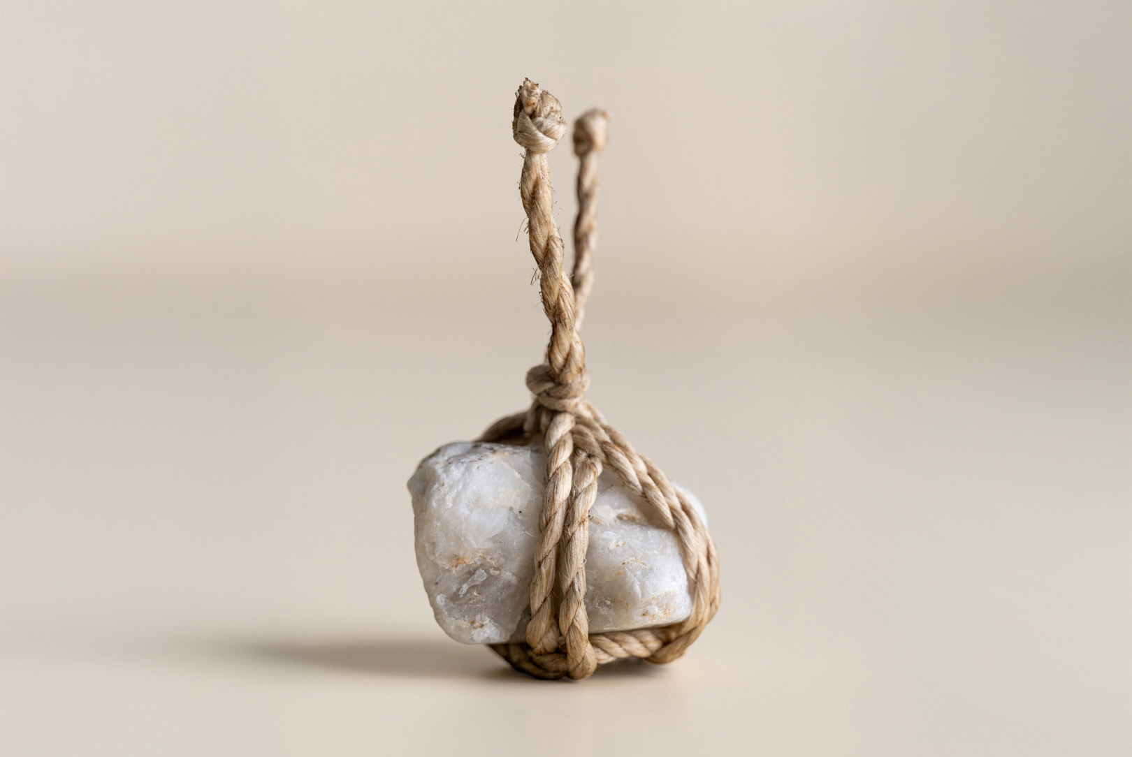 AGOBAY Showroom ZurichOften used in Japanese temples and tea houses, ‘kekkai’ stones are crafted with intention. They are not merely objects but keepers of spiritual wisdom, echoing the Zen philosophy that ‘heaven, earth and I all share the same origin, and are therefore one’. In Japan, this has led to a spirit of respect for nature and a desire to live in harmony with it since ancient times. The tactile roughness of the stone and the smooth strength of the hemp invite one to ponder the interconnectedness of our existence with nature.