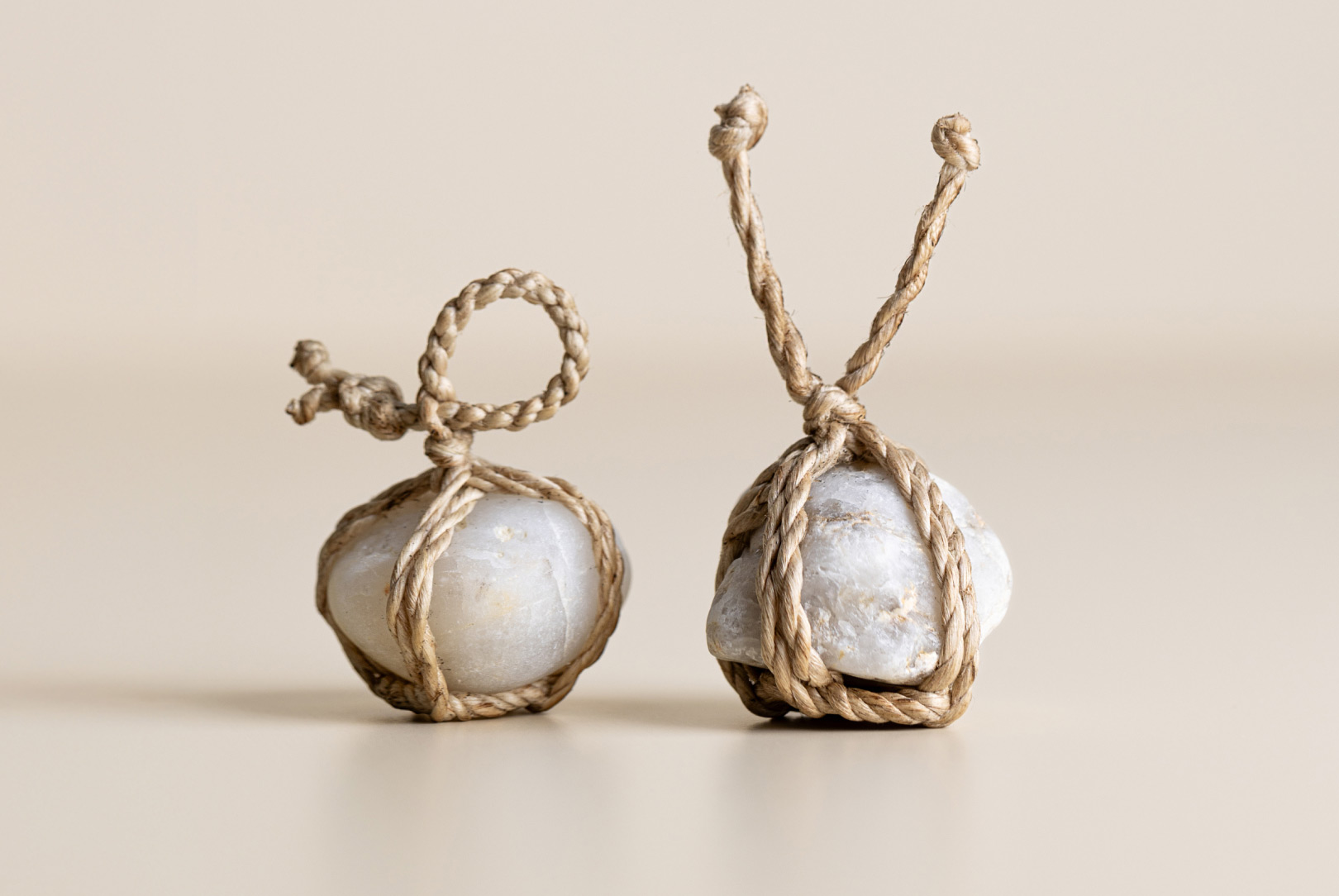 In the quietness of the dawn at one of Kyoto’s oldest Zen temples, Buddhist Zen monk Tosei Shinabe sits in deep meditation, practising ‘zazen’ (‘za’ 坐, Japanese for seated and ‘zen’ 禅 for meditation). His journey takes him to the mystical Awaji Island, the ‘land of birth’ in Japanese mythology, where he selects stones imbued with the earth‘s raw beauty. Wrapped in Seima rope made from the finest Japanese hemp, his ‘za kekkai’ stones serve as a silent testament, a Dharma tool, to the boundary between two spiritual realms, a line as delicate as it is profound.
