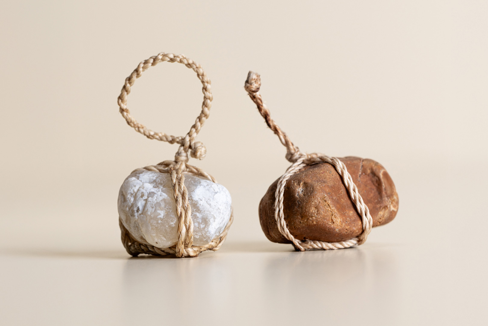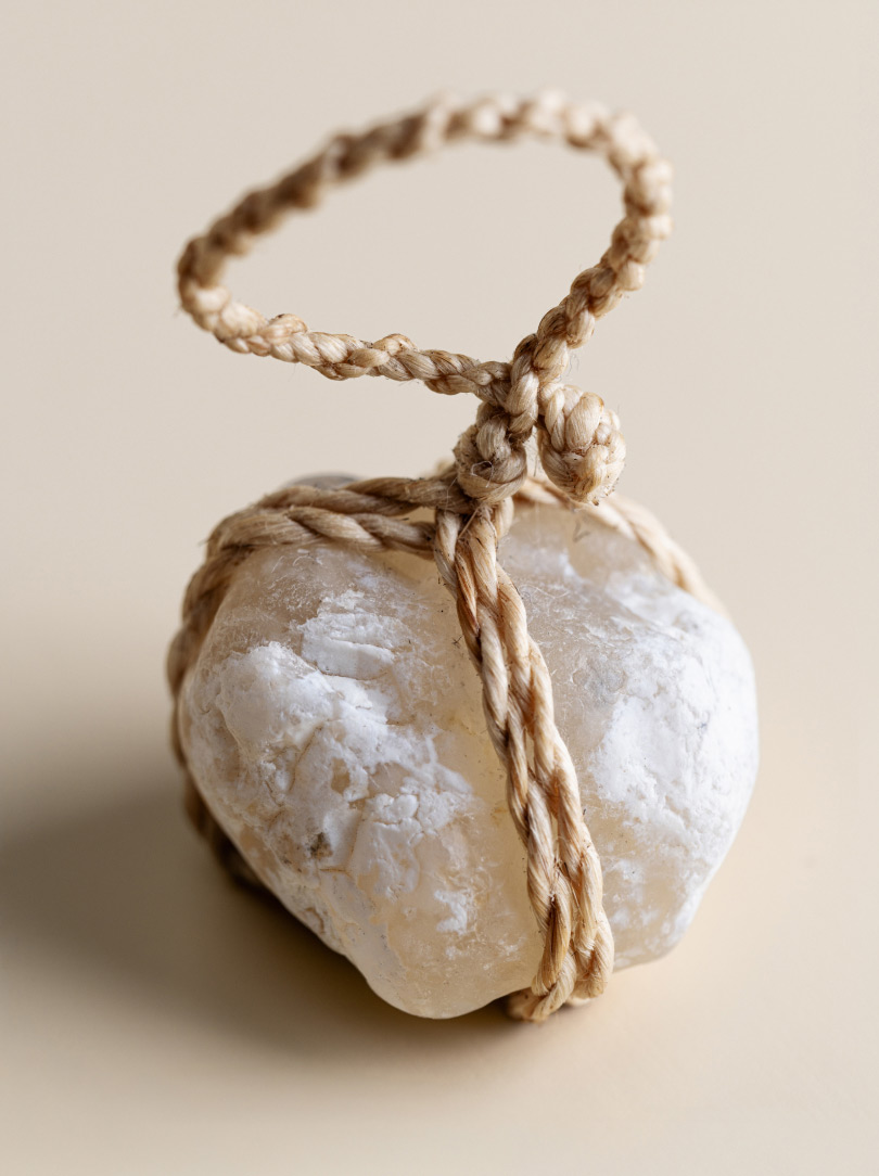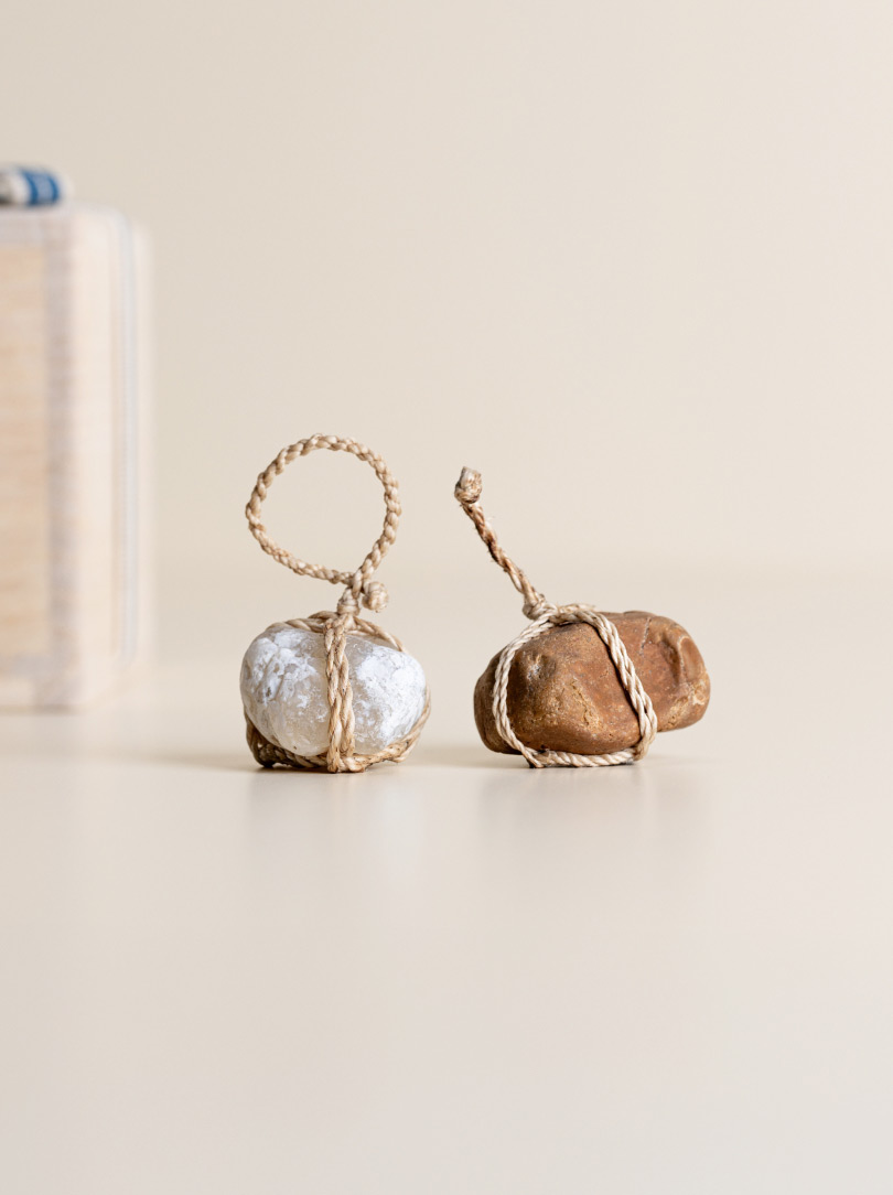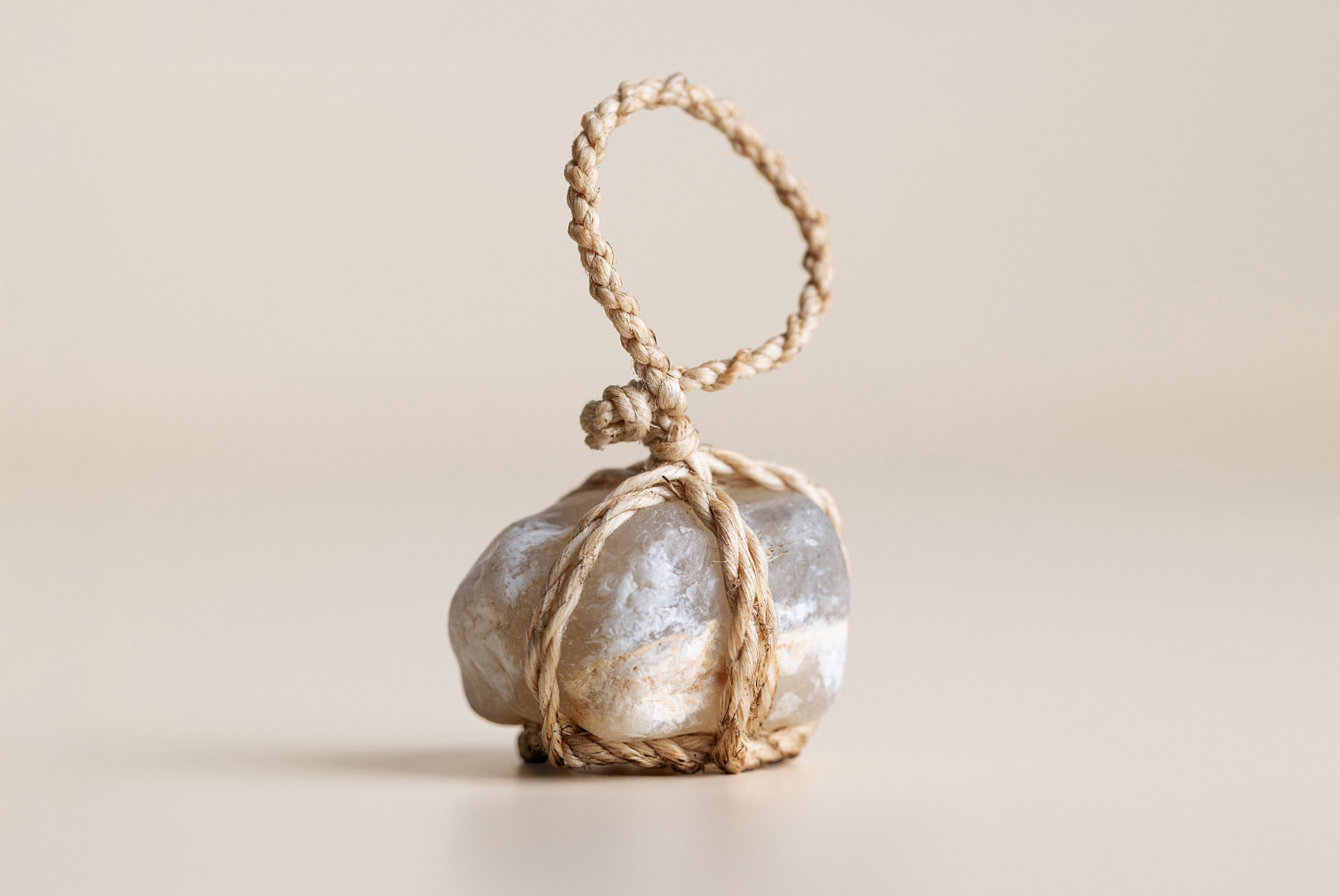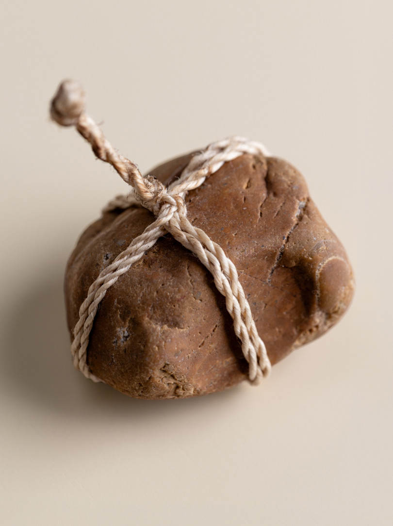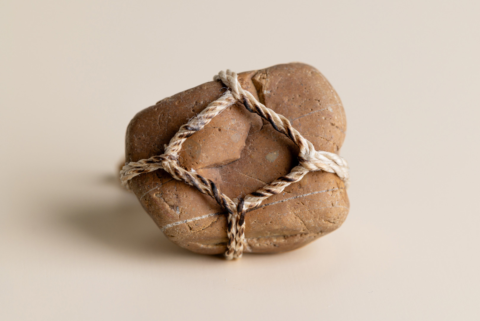 AGOBAY Showroom ZurichOften used in Japanese temples and tea houses, ‘kekkai’ stones are crafted with intention. They are not merely objects but keepers of spiritual wisdom, echoing the Zen philosophy that ‘heaven, earth and I all share the same origin, and are therefore one’. In Japan, this has led to a spirit of respect for nature and a desire to live in harmony with it since ancient times. The tactile roughness of the stone and the smooth strength of the hemp invite one to ponder the interconnectedness of our existence with nature.