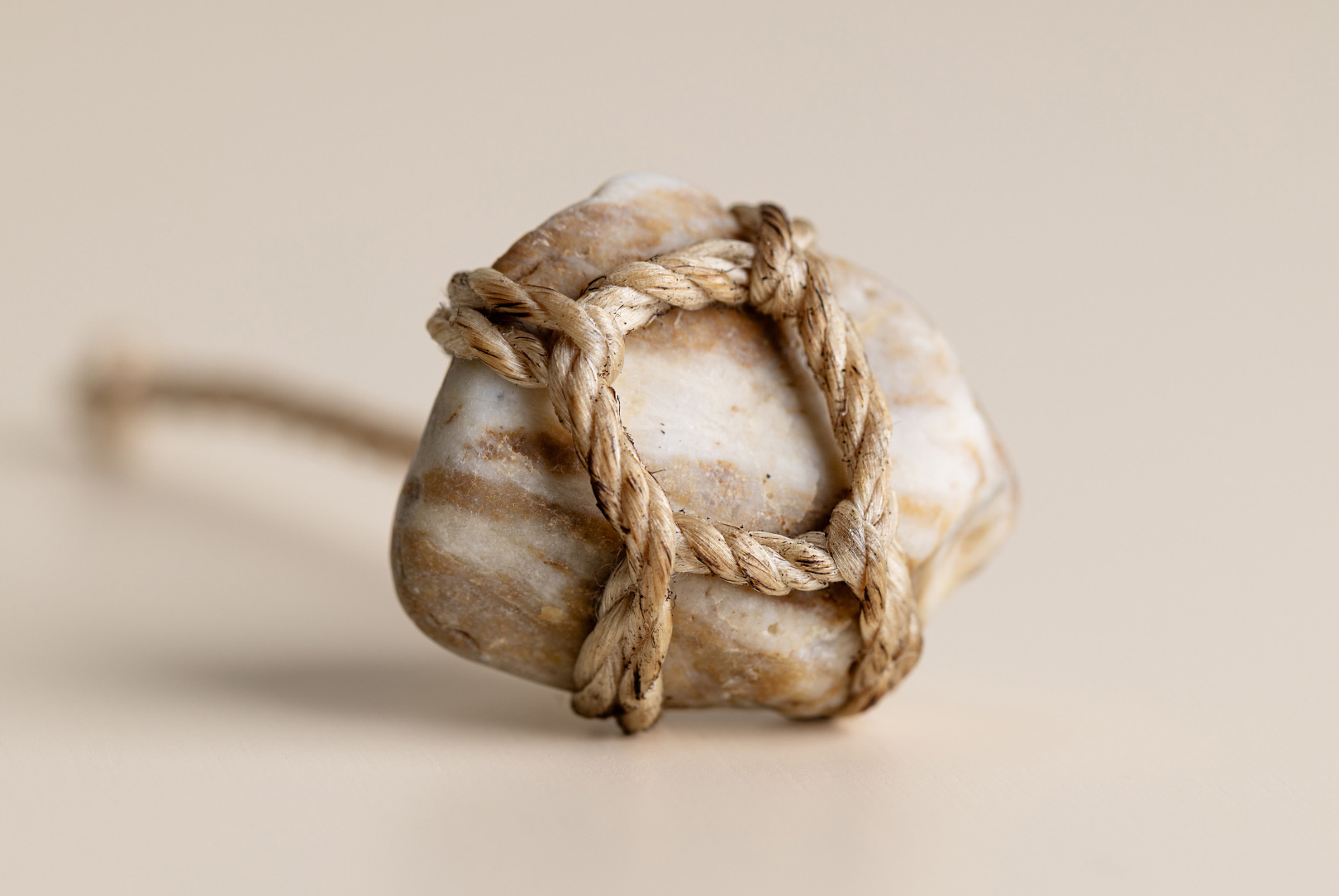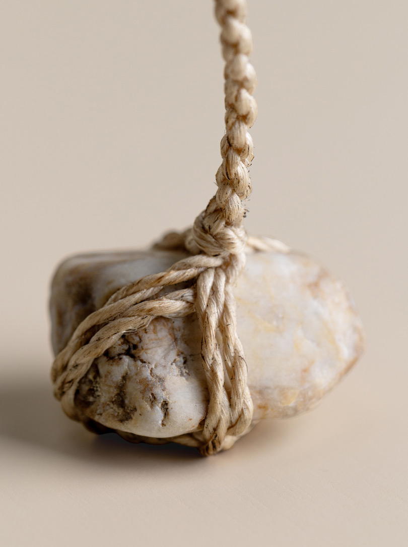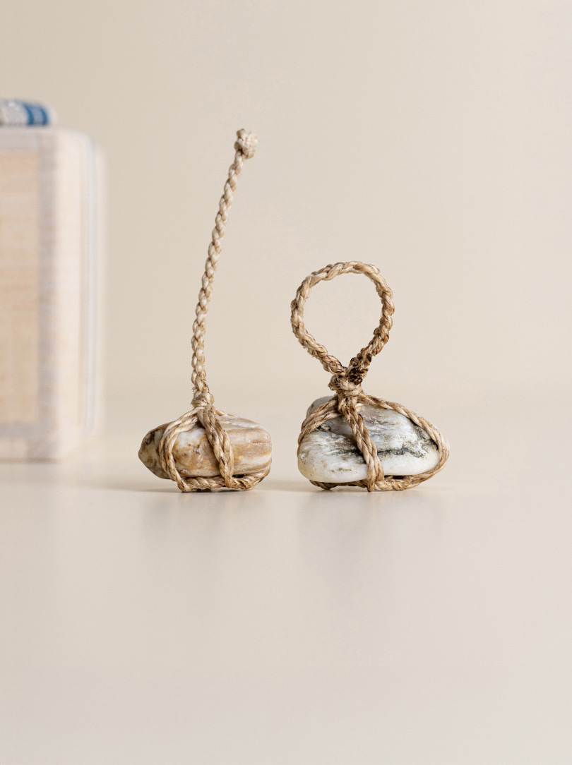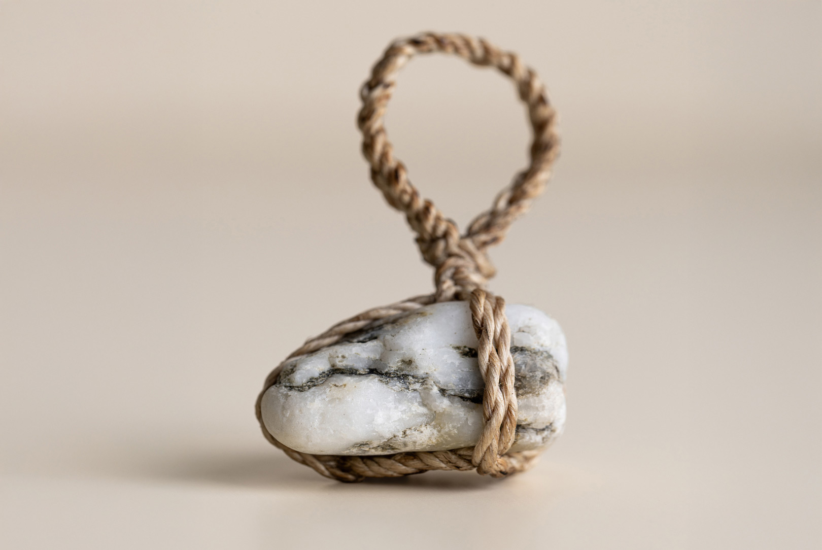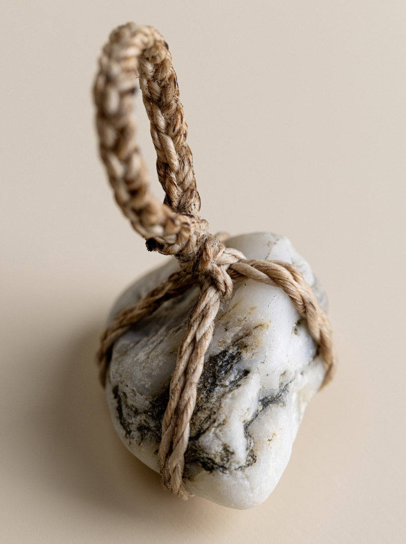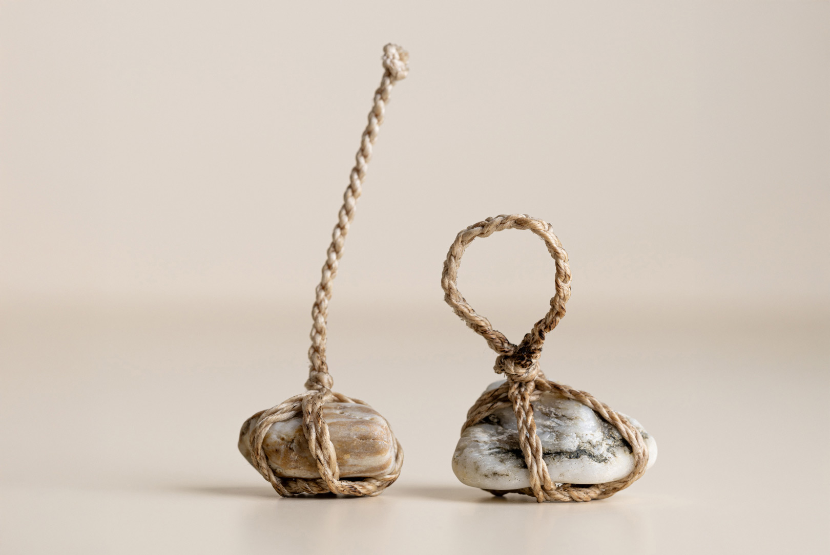 AGOBAY Showroom ZurichOften used in Japanese temples and tea houses, ‘kekkai’ stones are crafted with intention. They are not merely objects but keepers of spiritual wisdom, echoing the Zen philosophy that ‘heaven, earth and I all share the same origin, and are therefore one’. In Japan, this has led to a spirit of respect for nature and a desire to live in harmony with it since ancient times. The tactile roughness of the stone and the smooth strength of the hemp invite one to ponder the interconnectedness of our existence with nature.