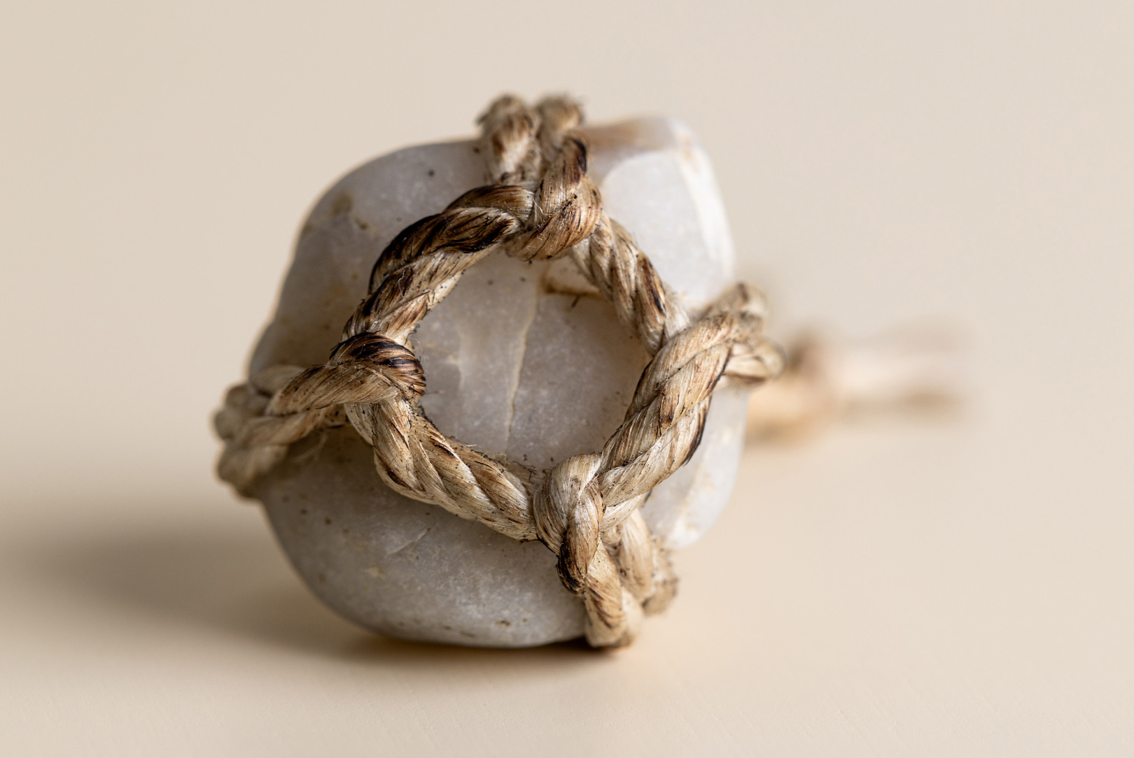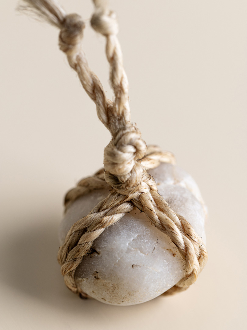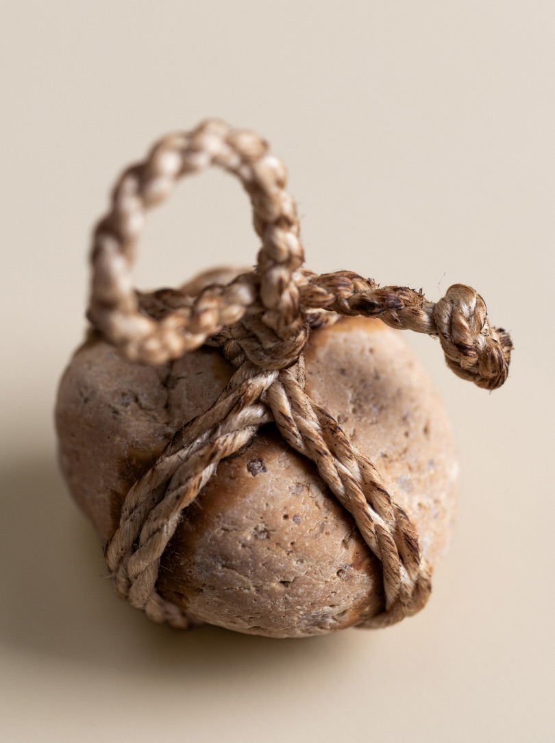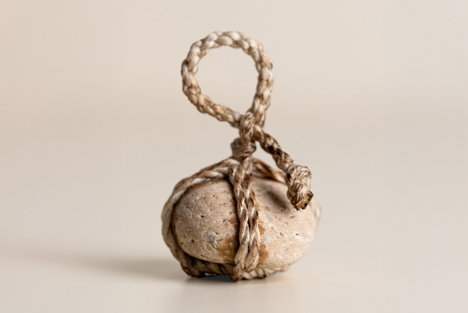 AGOBAY Showroom ZurichOften used in Japanese temples and tea houses, ‘kekkai’ stones are crafted with intention. They are not merely objects but keepers of spiritual wisdom, echoing the Zen philosophy that ‘heaven, earth and I all share the same origin, and are therefore one’. In Japan, this has led to a spirit of respect for nature and a desire to live in harmony with it since ancient times. The tactile roughness of the stone and the smooth strength of the hemp invite one to ponder the interconnectedness of our existence with nature.