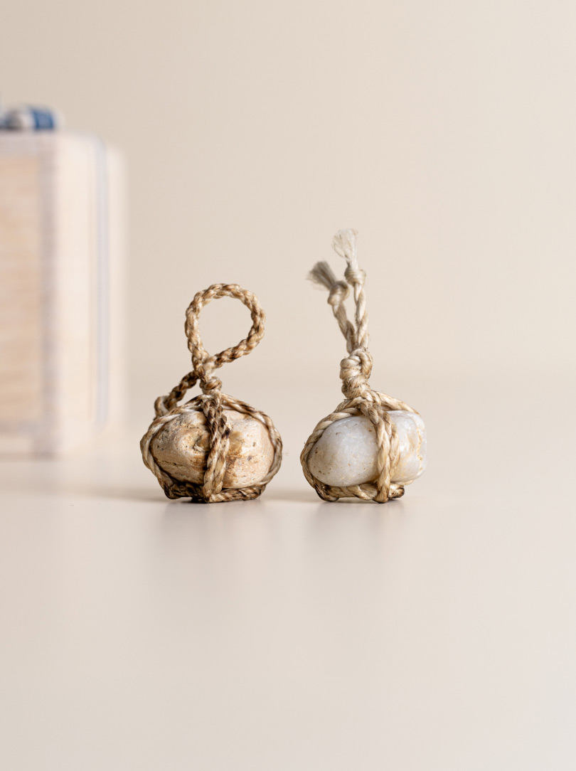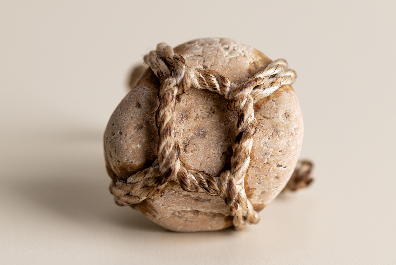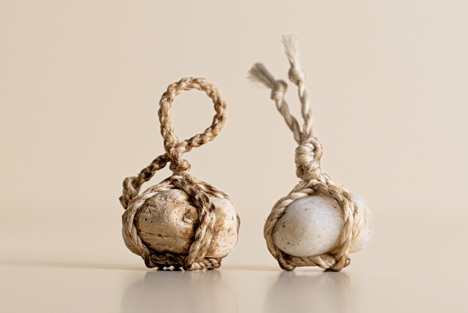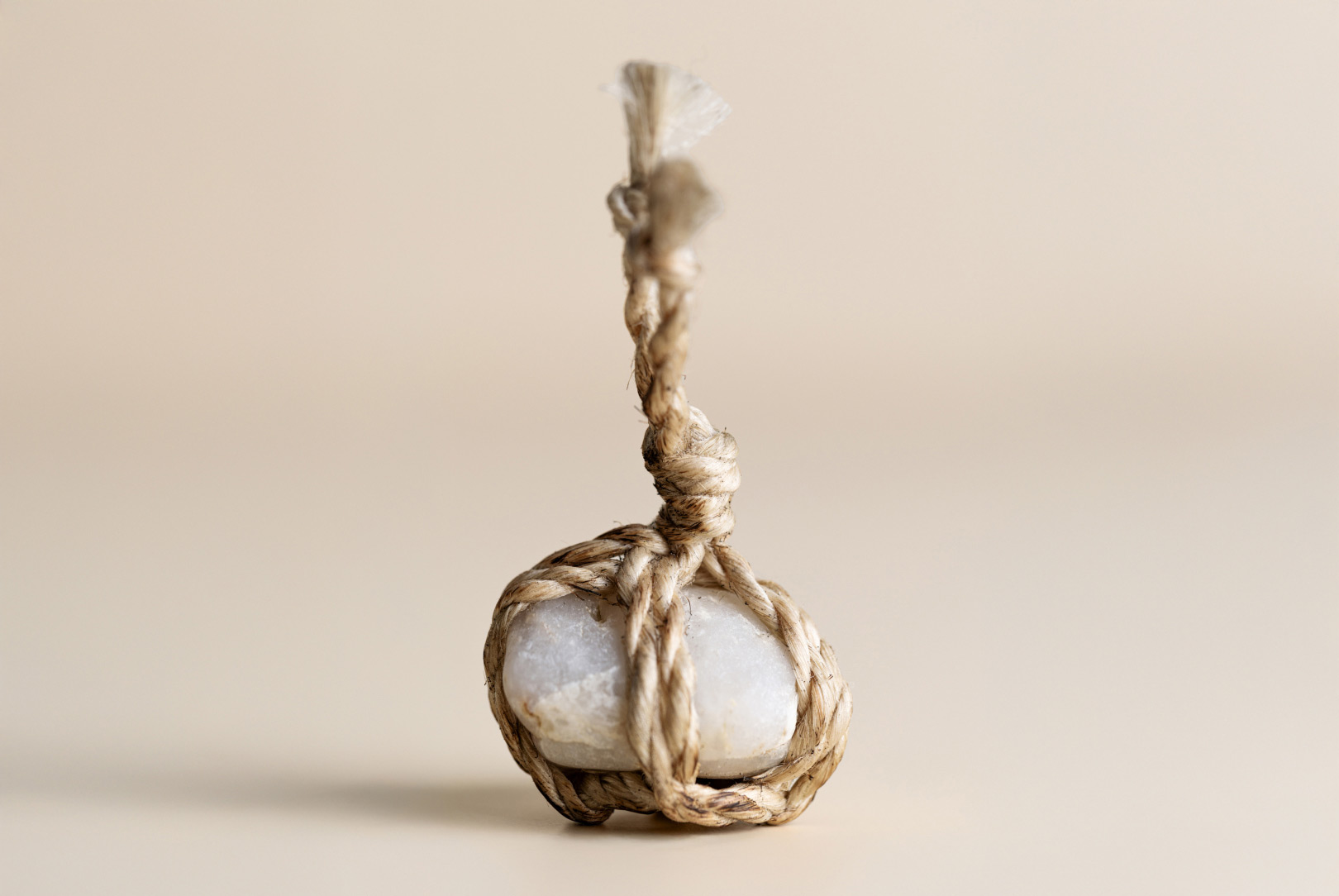 AGOBAY Showroom ZurichOften used in Japanese temples and tea houses, ‘kekkai’ stones are crafted with intention. They are not merely objects but keepers of spiritual wisdom, echoing the Zen philosophy that ‘heaven, earth and I all share the same origin, and are therefore one’. In Japan, this has led to a spirit of respect for nature and a desire to live in harmony with it since ancient times. The tactile roughness of the stone and the smooth strength of the hemp invite one to ponder the interconnectedness of our existence with nature.