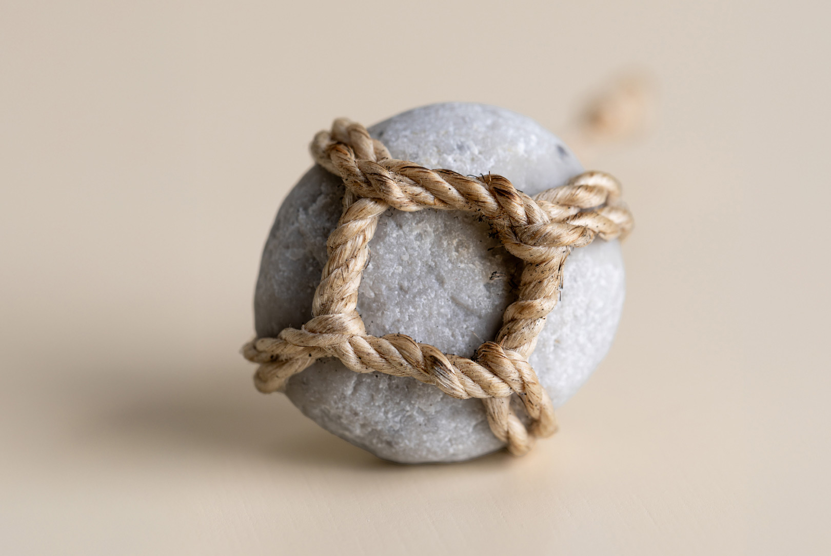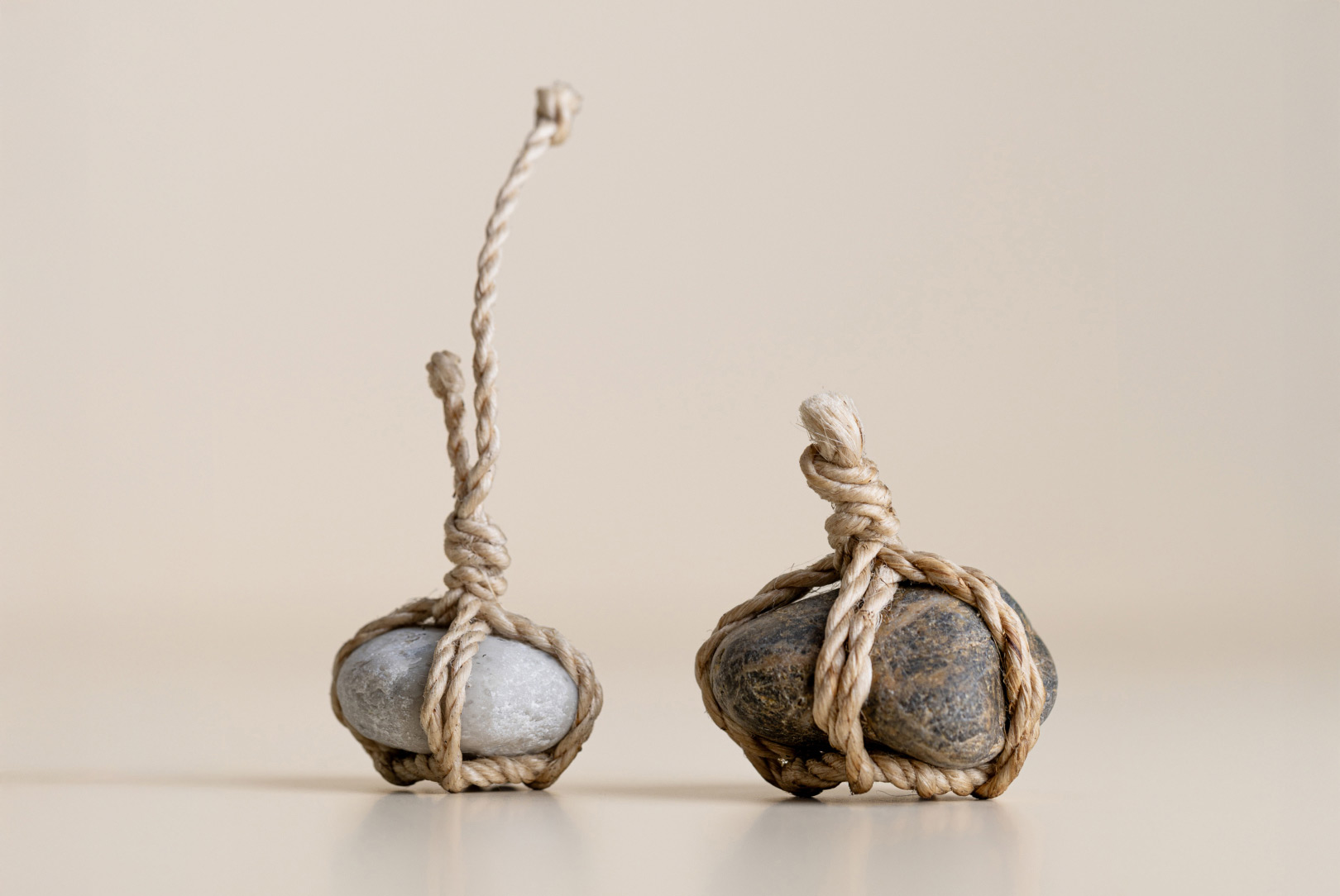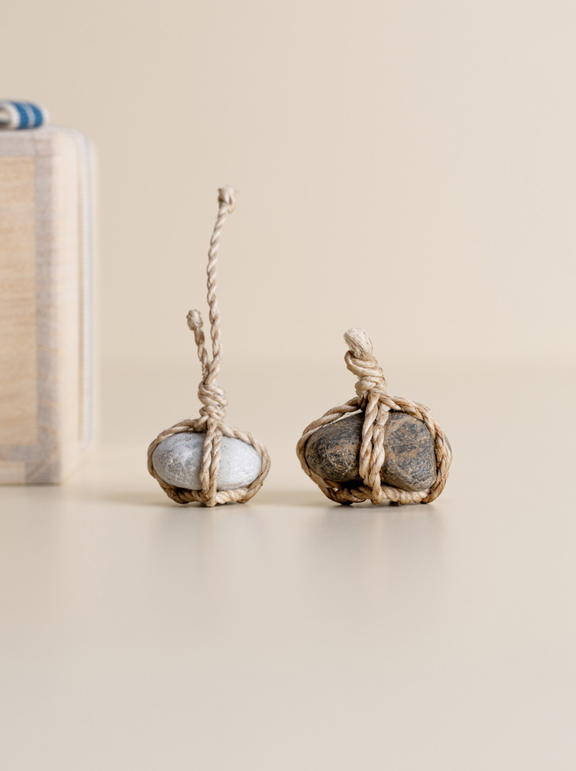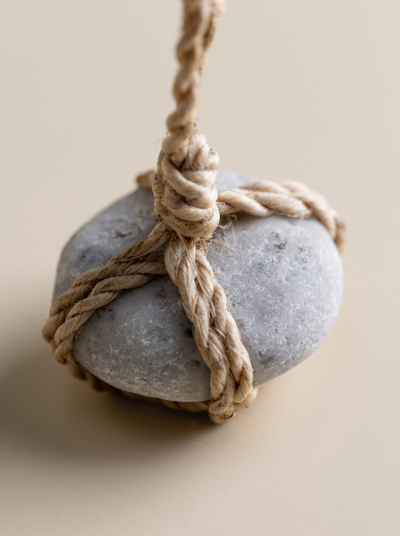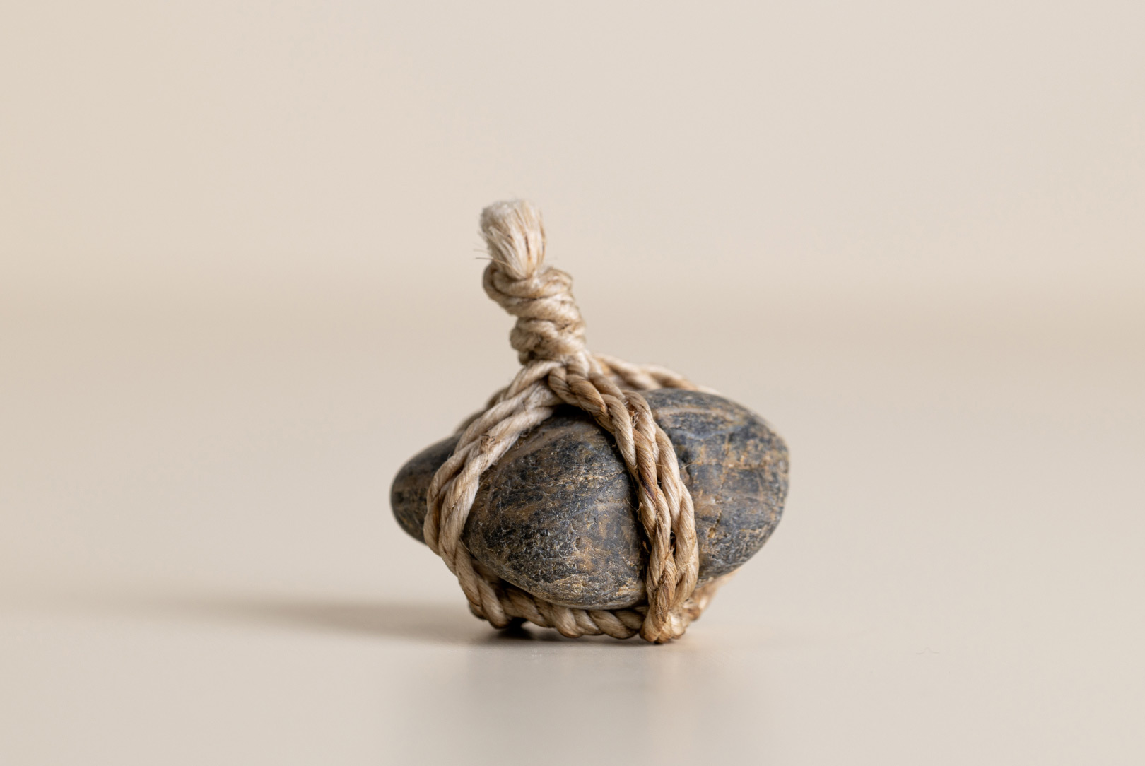 AGOBAY Showroom ZurichOften used in Japanese temples and tea houses, ‘kekkai’ stones are crafted with intention. They are not merely objects but keepers of spiritual wisdom, echoing the Zen philosophy that ‘heaven, earth and I all share the same origin, and are therefore one’. In Japan, this has led to a spirit of respect for nature and a desire to live in harmony with it since ancient times. The tactile roughness of the stone and the smooth strength of the hemp invite one to ponder the interconnectedness of our existence with nature.