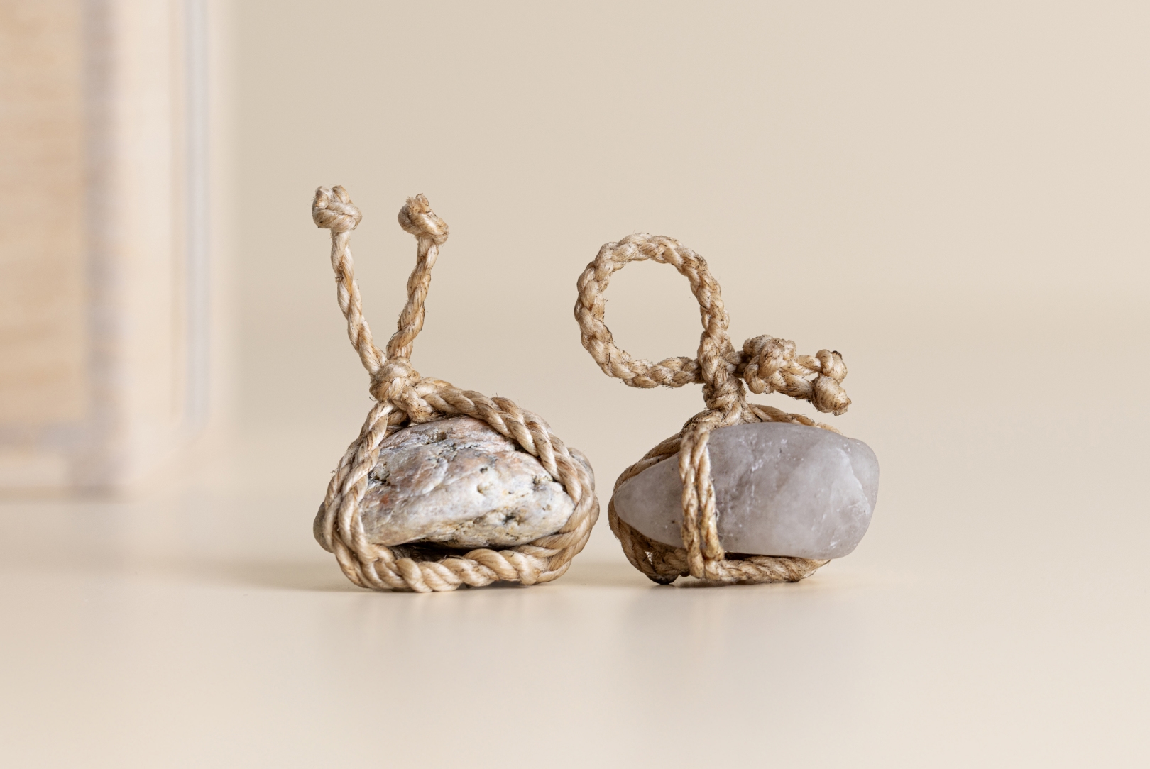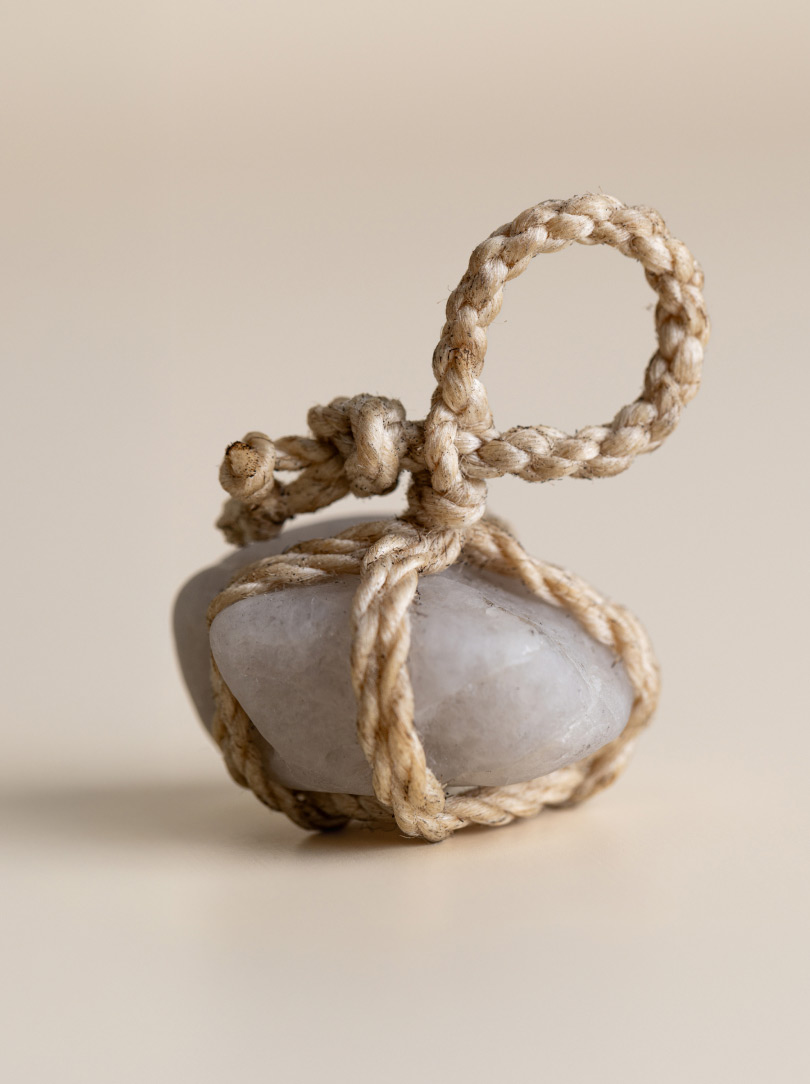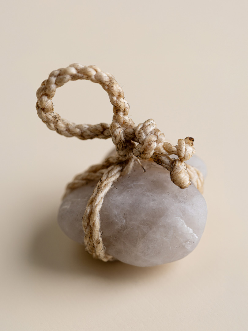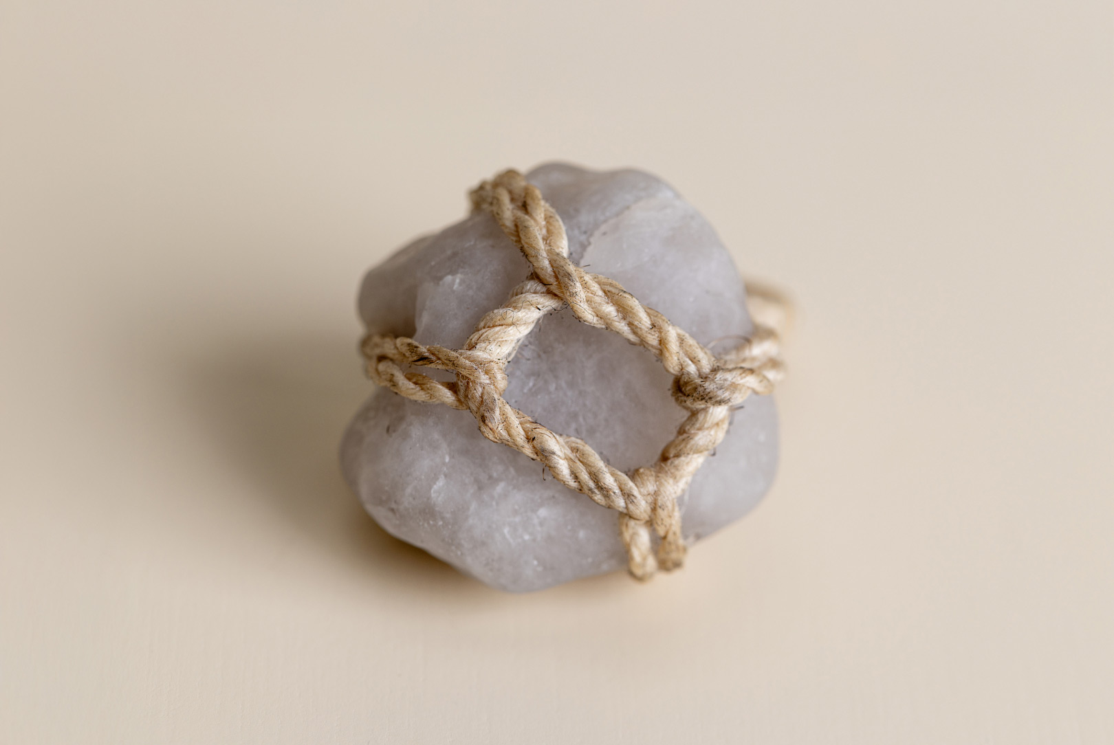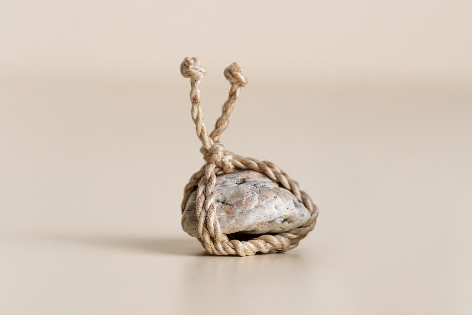 AGOBAY Showroom ZurichOften used in Japanese temples and tea houses, ‘kekkai’ stones are crafted with intention. They are not merely objects but keepers of spiritual wisdom, echoing the Zen philosophy that ‘heaven, earth and I all share the same origin, and are therefore one’. In Japan, this has led to a spirit of respect for nature and a desire to live in harmony with it since ancient times. The tactile roughness of the stone and the smooth strength of the hemp invite one to ponder the interconnectedness of our existence with nature.