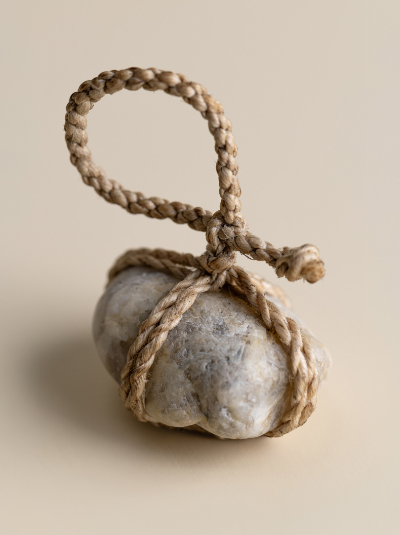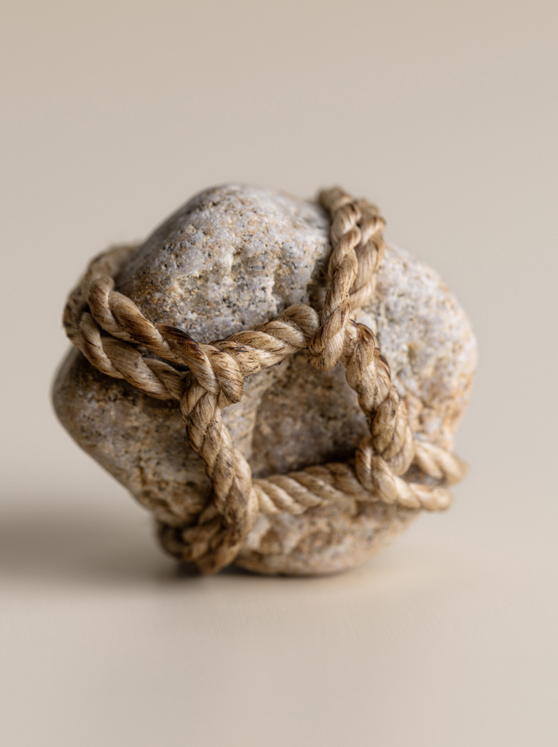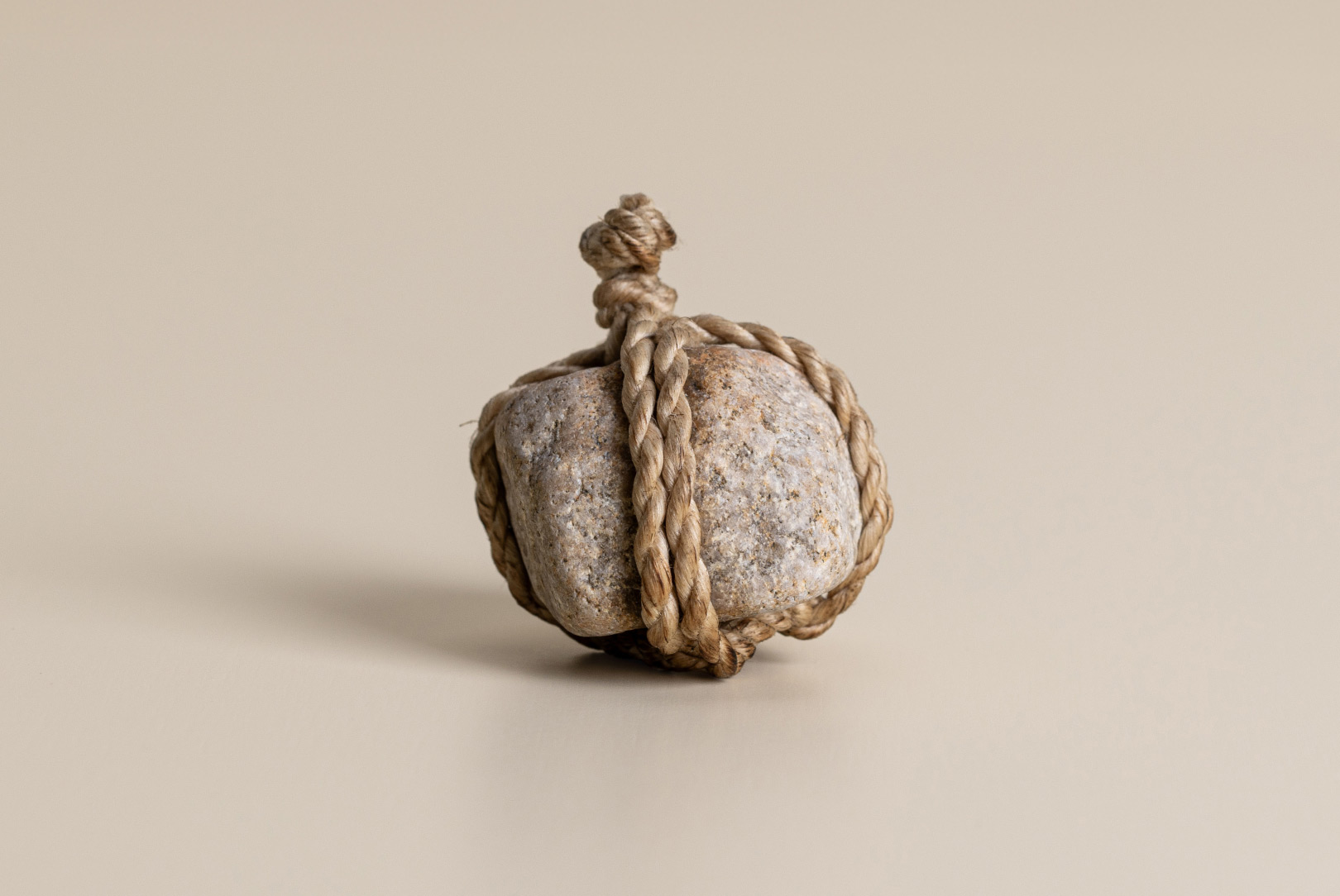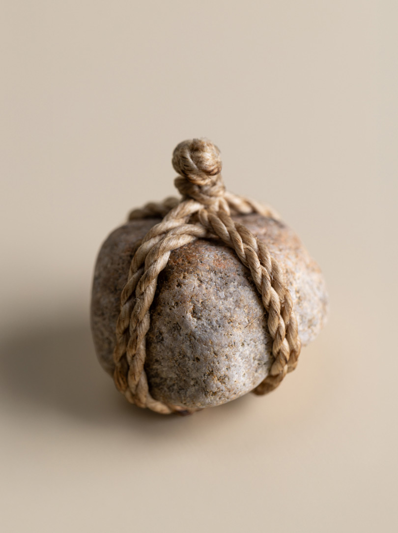 AGOBAY Showroom ZurichOften used in Japanese temples and tea houses, ‘kekkai’ stones are crafted with intention. They are not merely objects but keepers of spiritual wisdom, echoing the Zen philosophy that ‘heaven, earth and I all share the same origin, and are therefore one’. In Japan, this has led to a spirit of respect for nature and a desire to live in harmony with it since ancient times. The tactile roughness of the stone and the smooth strength of the hemp invite one to ponder the interconnectedness of our existence with nature.