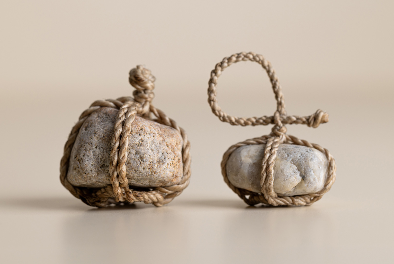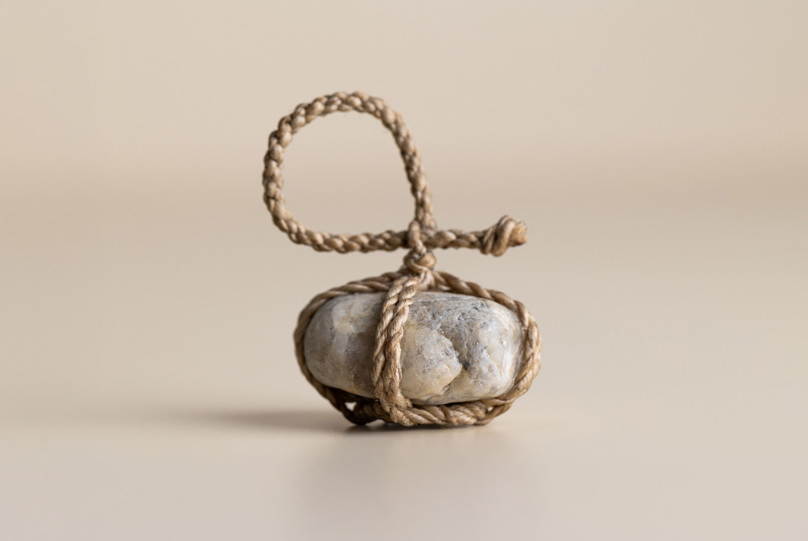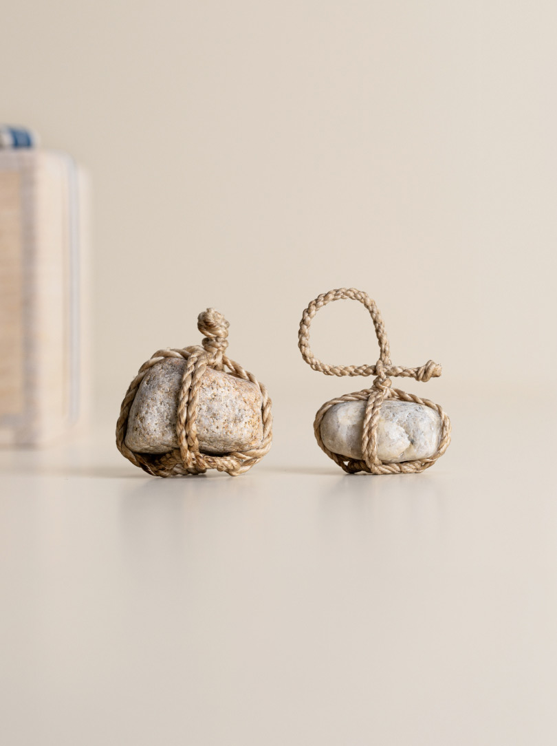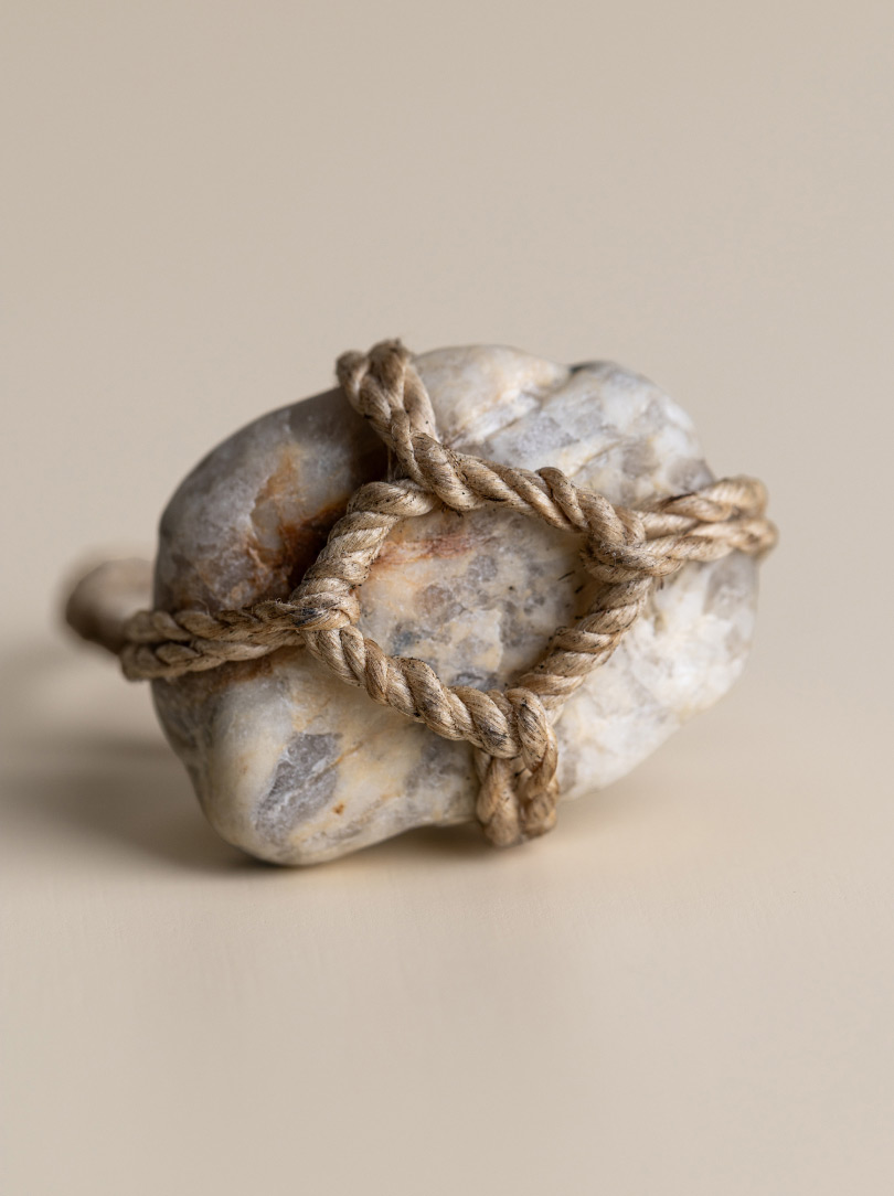 AGOBAY Showroom ZurichOften used in Japanese temples and tea houses, ‘kekkai’ stones are crafted with intention. They are not merely objects but keepers of spiritual wisdom, echoing the Zen philosophy that ‘heaven, earth and I all share the same origin, and are therefore one’. In Japan, this has led to a spirit of respect for nature and a desire to live in harmony with it since ancient times. The tactile roughness of the stone and the smooth strength of the hemp invite one to ponder the interconnectedness of our existence with nature.