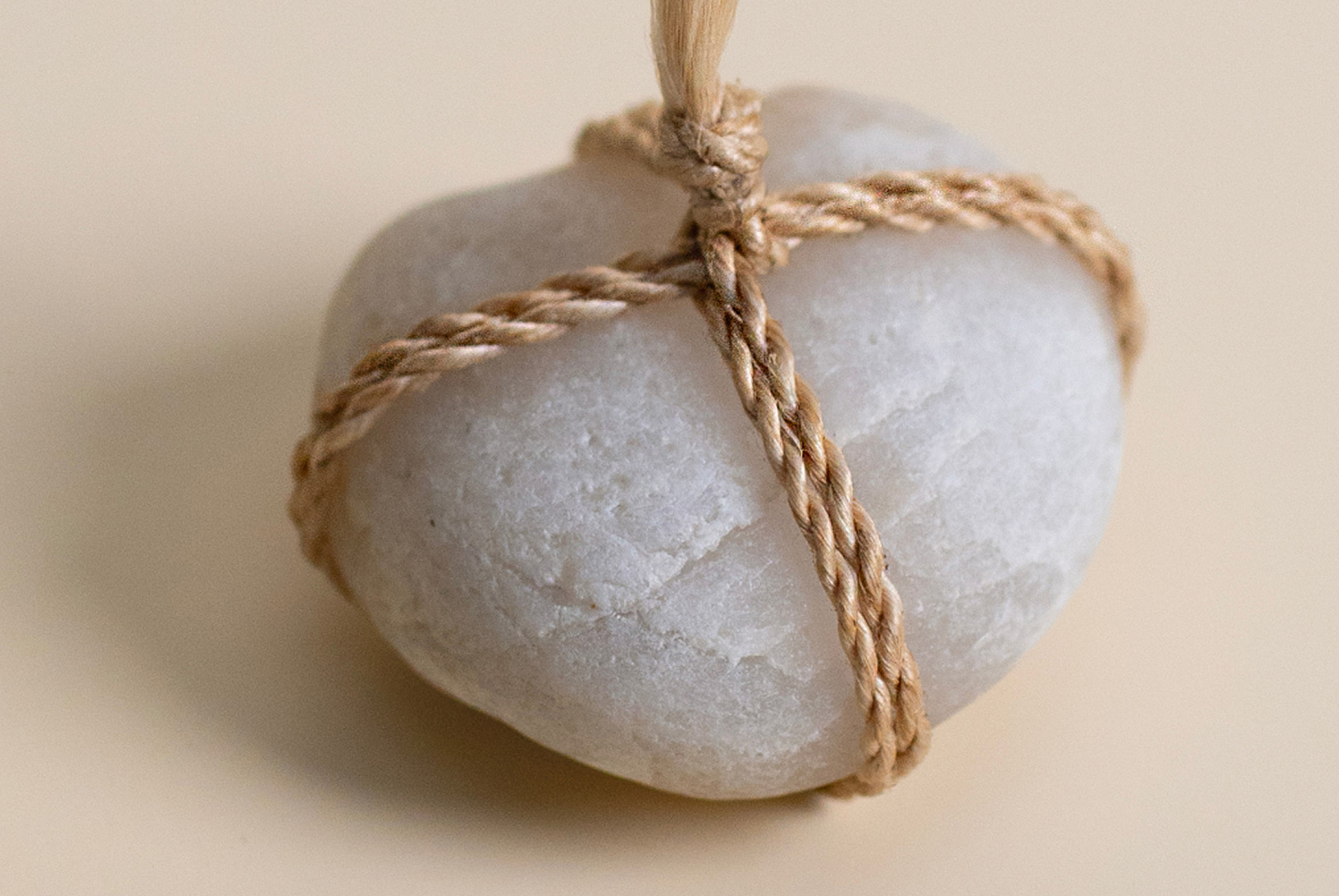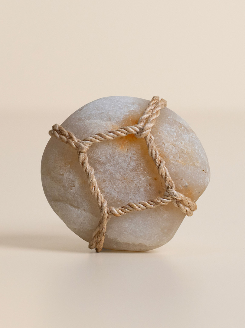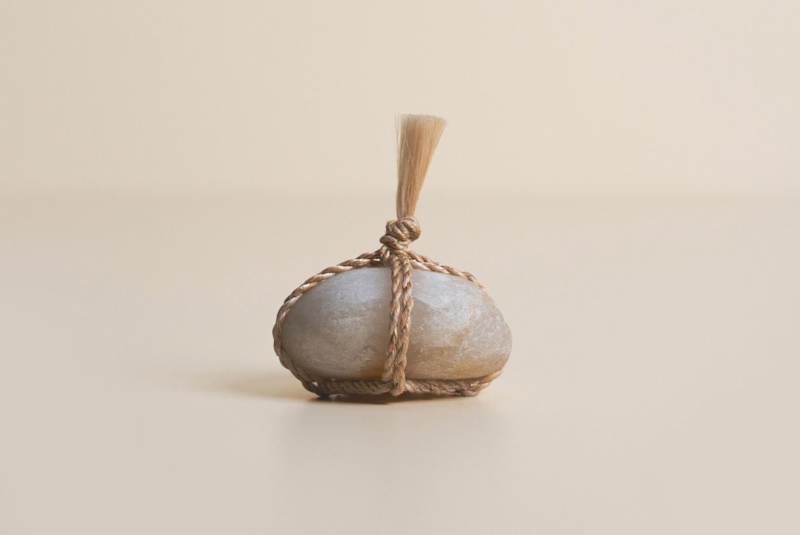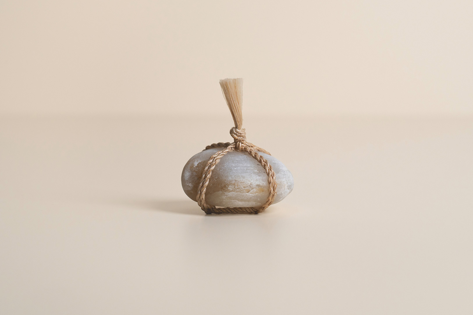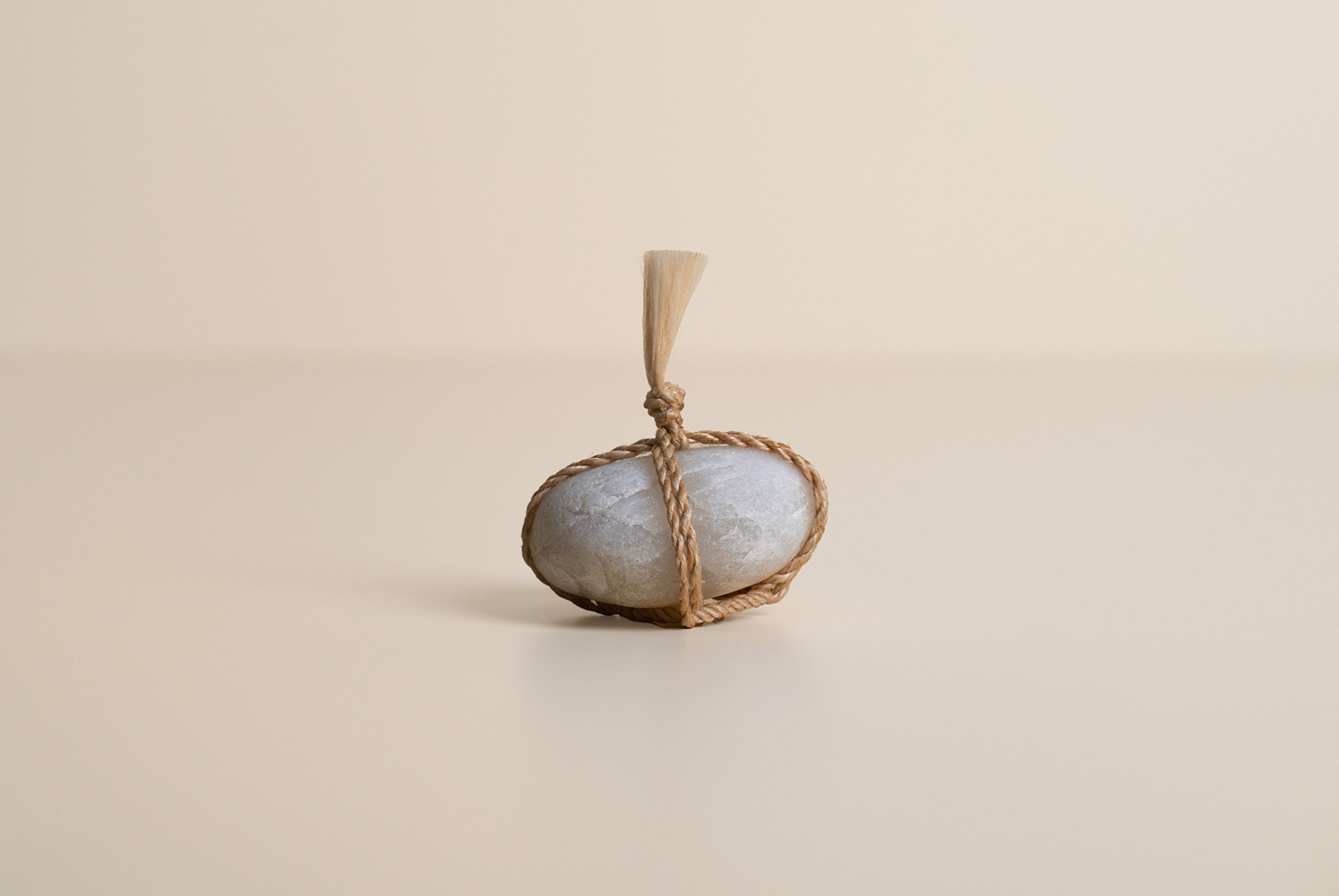 AGOBAY Showroom ZurichOften used in Japanese temples and tea houses, kekkai stones are crafted with intention. They are not merely objects but keepers of spiritual wisdom, echoing the Zen philosophy that ‘heaven, earth and I all share the same origin, and are therefore one’. In Japan, this has led to a spirit of respect for nature and a desire to live in harmony with it since ancient times. The tactile roughness of the stone and the smooth strength of the hemp invite one to ponder the interconnectedness of our existence with nature.