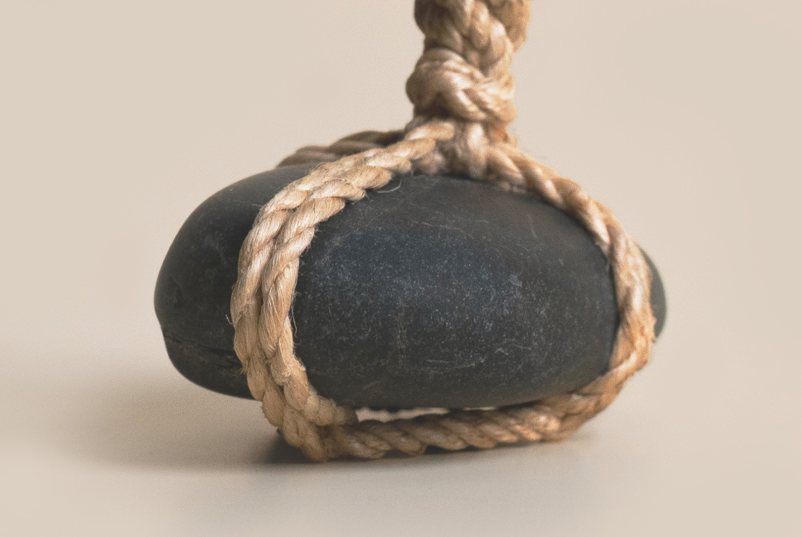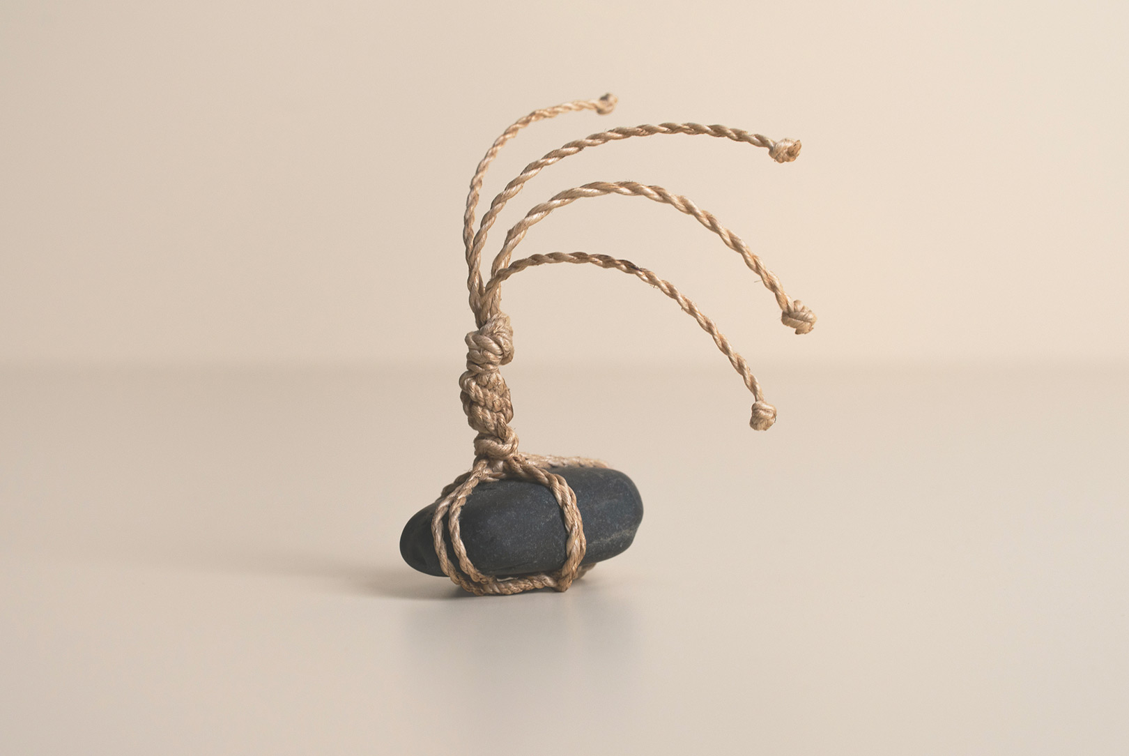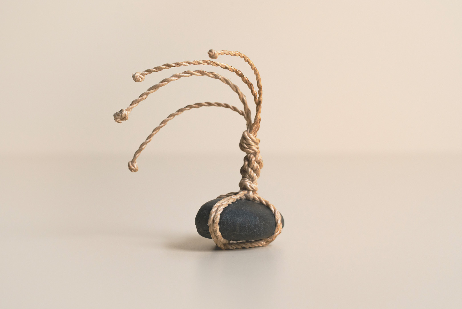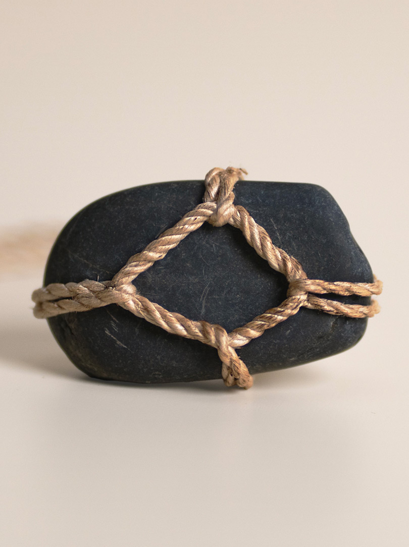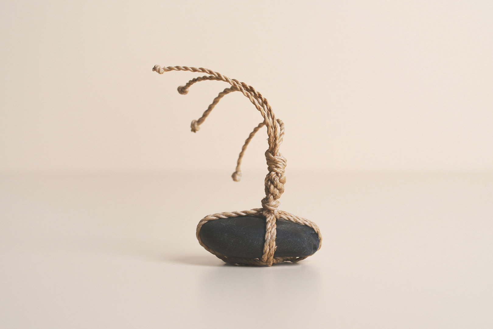 AGOBAY Showroom ZurichOften used in Japanese temples and tea houses, kekkai stones are crafted with intention. They are not merely objects but keepers of spiritual wisdom, echoing the Zen philosophy that ‘heaven, earth and I all share the same origin, and are therefore one’. In Japan, this has led to a spirit of respect for nature and a desire to live in harmony with it since ancient times. The tactile roughness of the stone and the smooth strength of the hemp invite one to ponder the interconnectedness of our existence with nature.