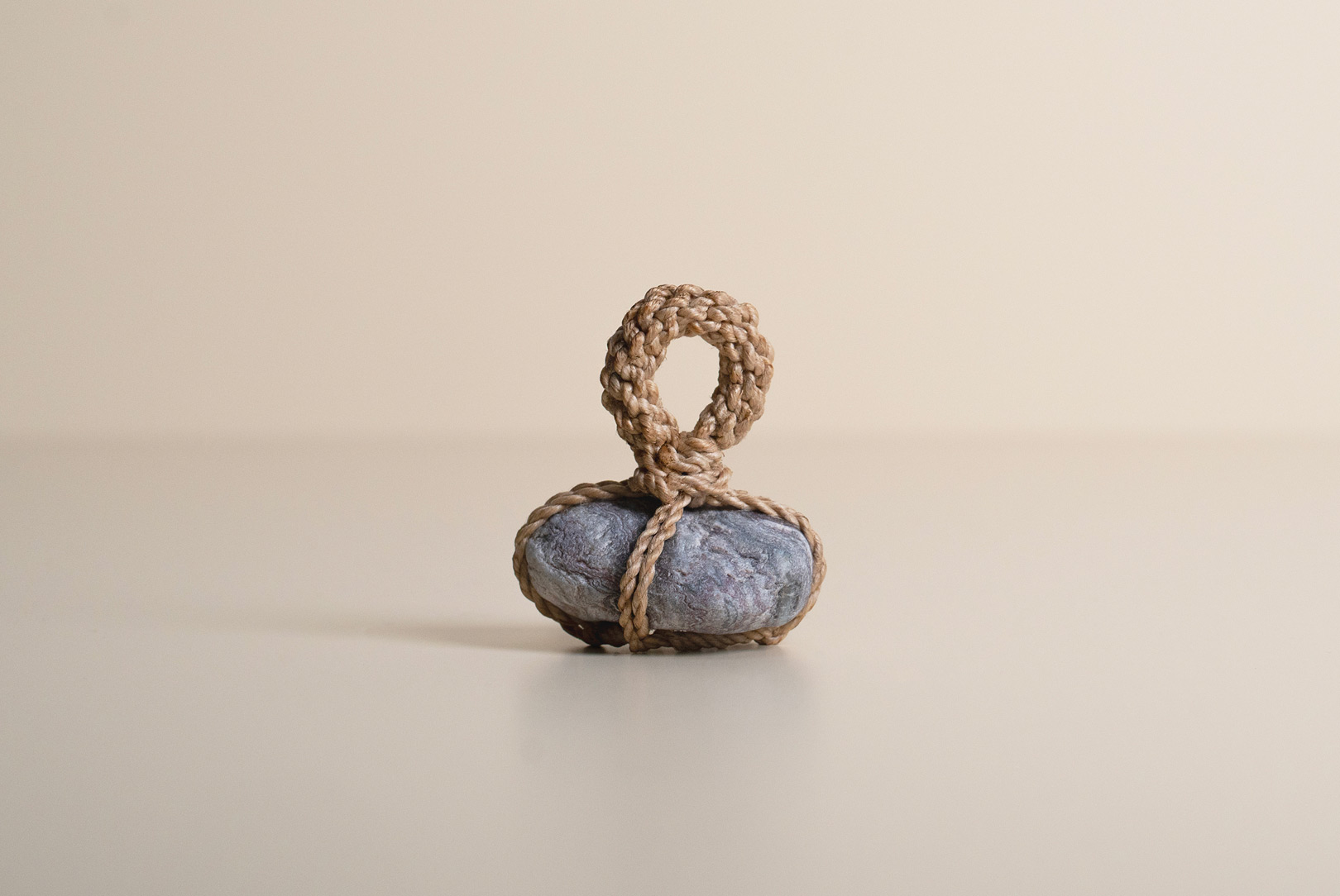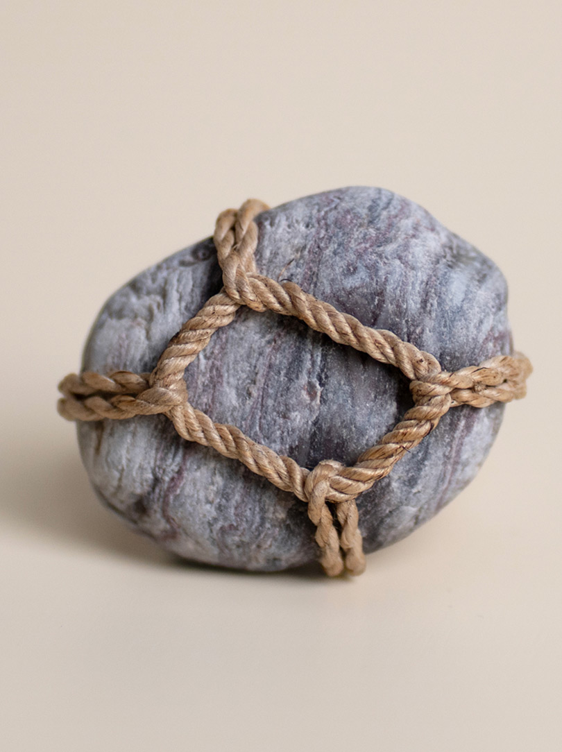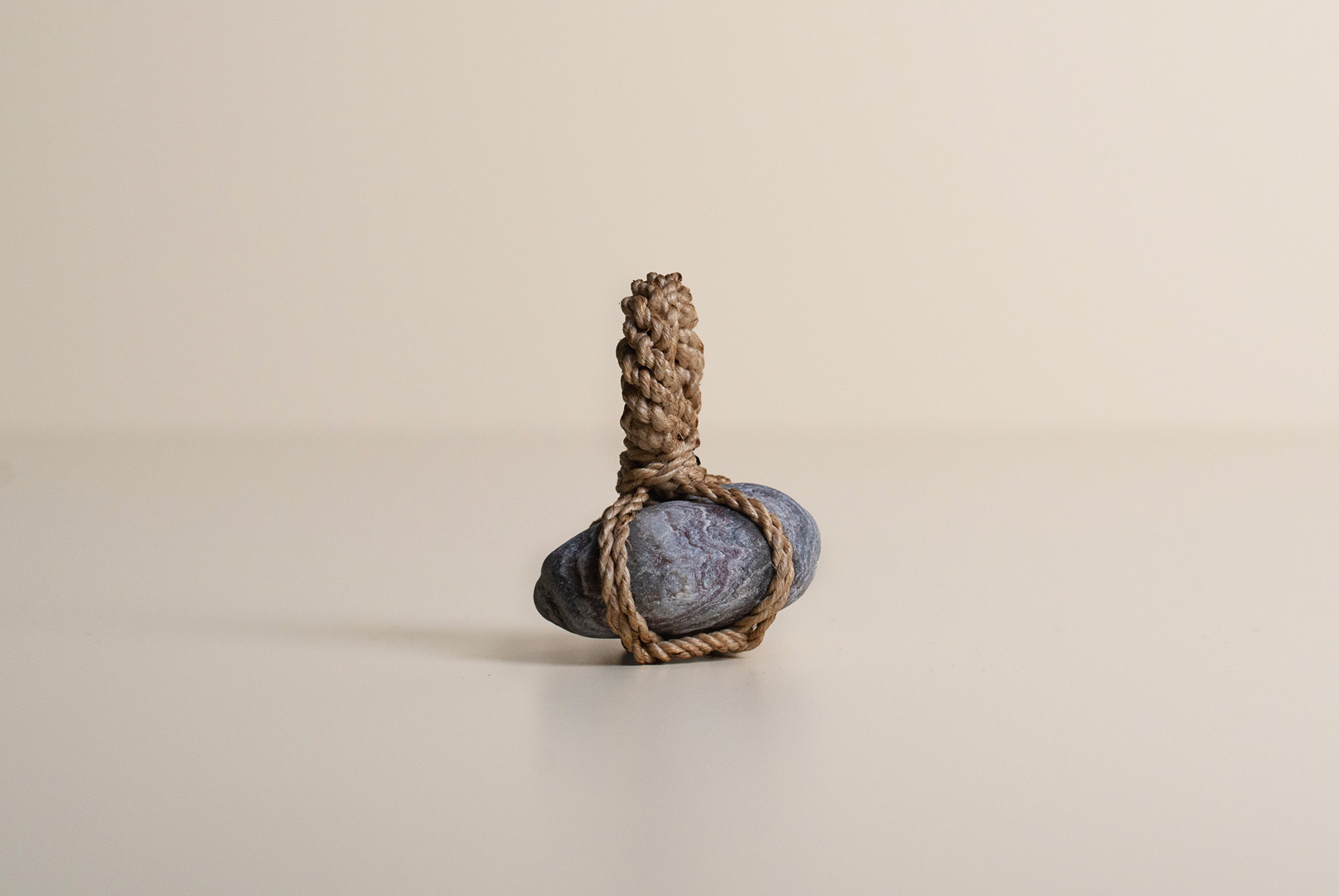 AGOBAY Showroom ZurichOften used in Japanese temples and tea houses, kekkai stones are crafted with intention. They are not merely objects but keepers of spiritual wisdom, echoing the Zen philosophy that ‘heaven, earth and I all share the same origin, and are therefore one’. In Japan, this has led to a spirit of respect for nature and a desire to live in harmony with it since ancient times. The tactile roughness of the stone and the smooth strength of the hemp invite one to ponder the interconnectedness of our existence with nature.