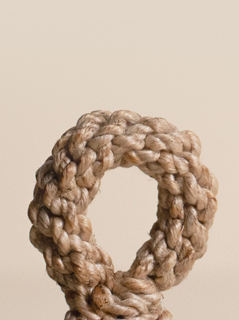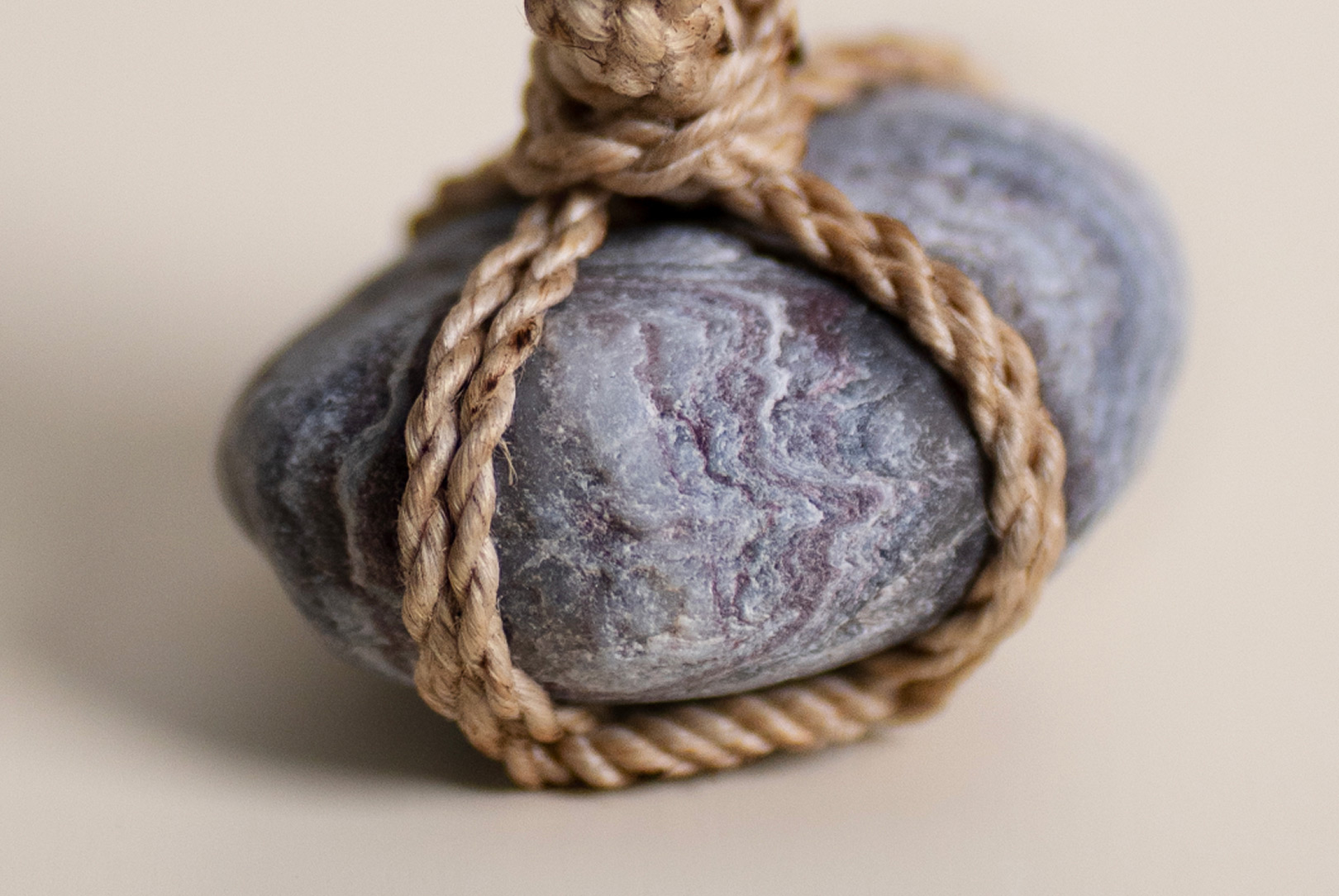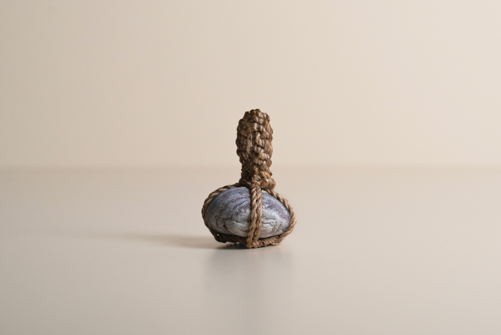 AGOBAY Showroom ZurichOften used in Japanese temples and tea houses, kekkai stones are crafted with intention. They are not merely objects but keepers of spiritual wisdom, echoing the Zen philosophy that ‘heaven, earth and I all share the same origin, and are therefore one’. In Japan, this has led to a spirit of respect for nature and a desire to live in harmony with it since ancient times. The tactile roughness of the stone and the smooth strength of the hemp invite one to ponder the interconnectedness of our existence with nature.