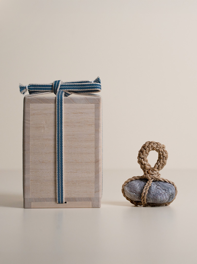 Each stone is delicately wrapped in washi paper, a traditional Japanese paper crafted from the elongated inner fibres of three plants: kozo, mitsumata and gampi. It is presented in a wooden box bearing the artisan’s signature mark. The box itself is made of Paulownia wood, known in East Asia as the ‘empress tree’ and valued for its lightweight but strong properties.