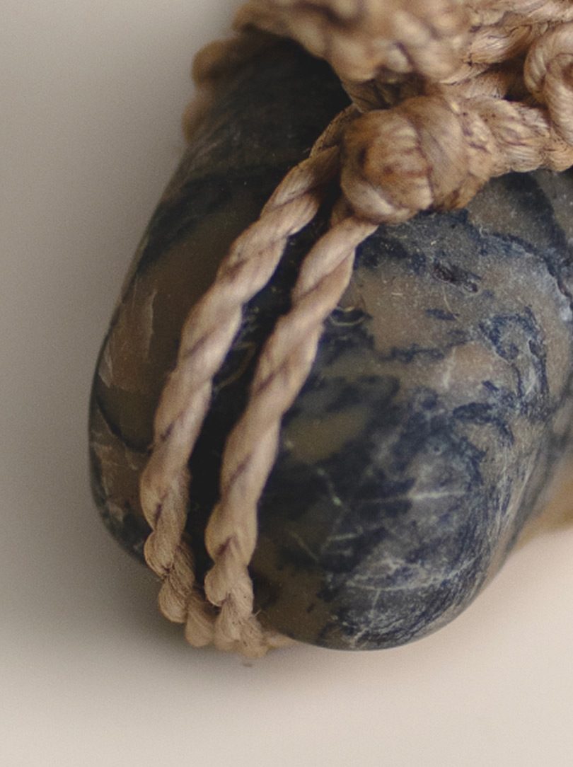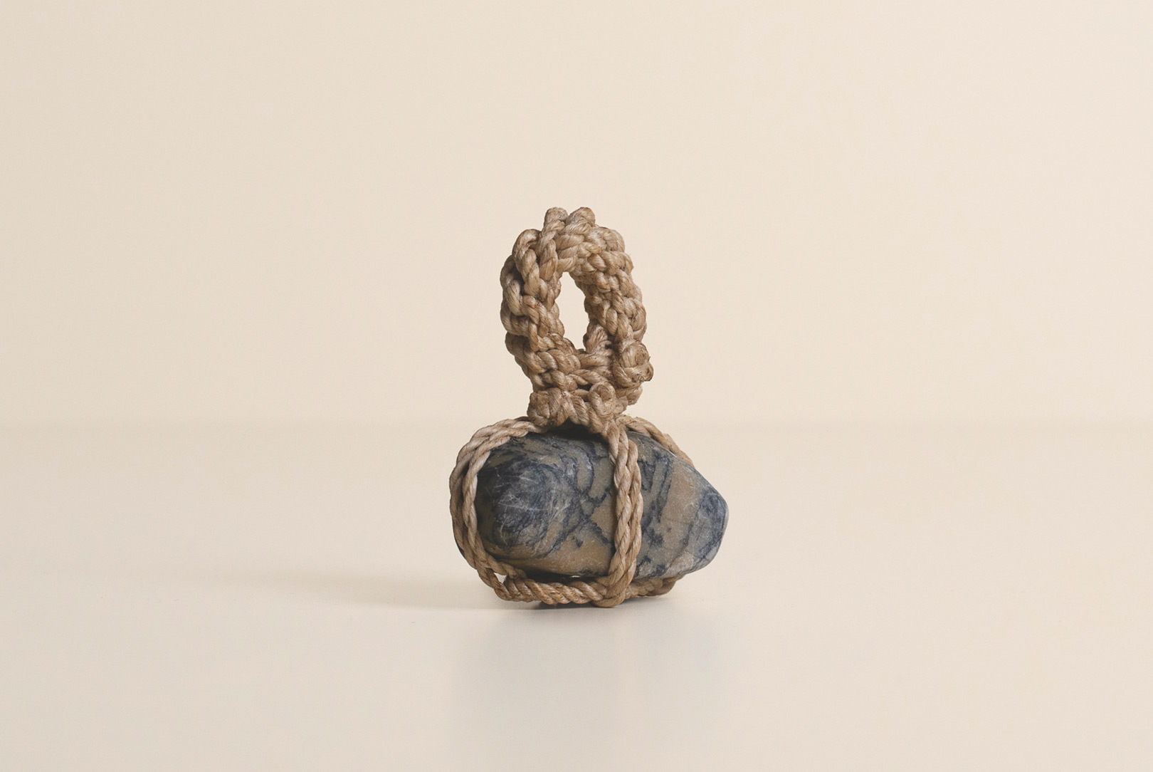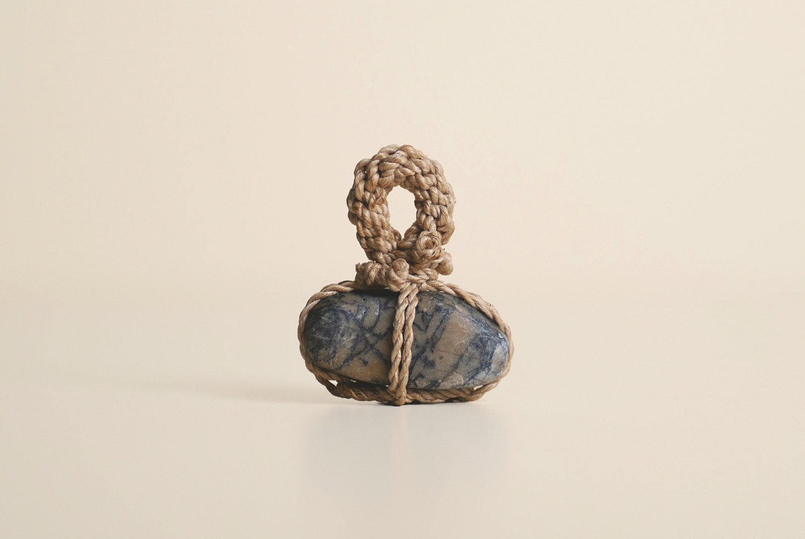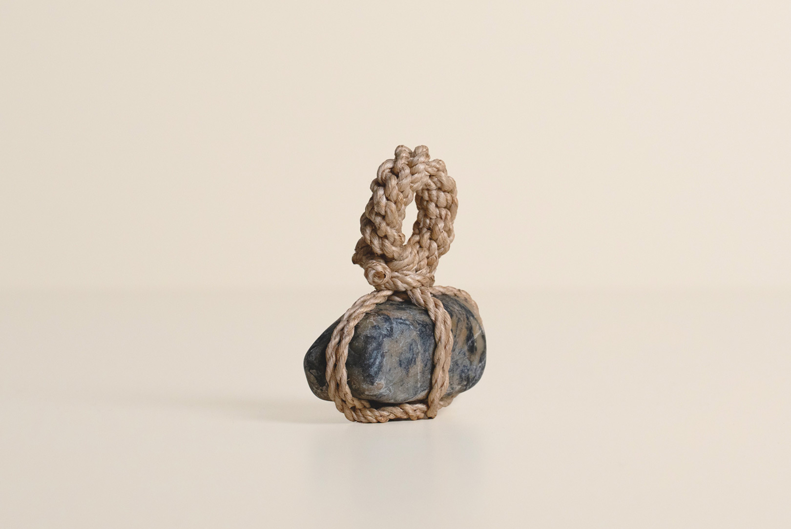 AGOBAY Showroom ZurichOften used in Japanese temples and tea houses, kekkai stones are crafted with intention. They are not merely objects but keepers of spiritual wisdom, echoing the Zen philosophy that ‘heaven, earth and I all share the same origin, and are therefore one’. In Japan, this has led to a spirit of respect for nature and a desire to live in harmony with it since ancient times. The tactile roughness of the stone and the smooth strength of the hemp invite one to ponder the interconnectedness of our existence with nature.