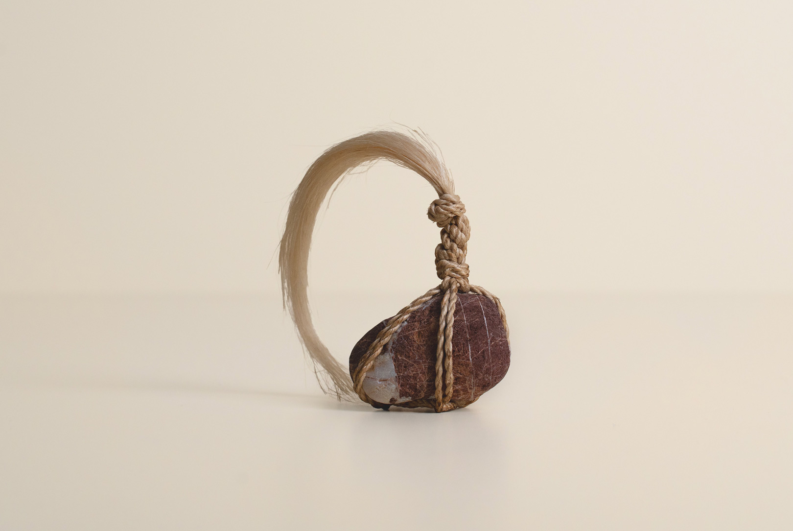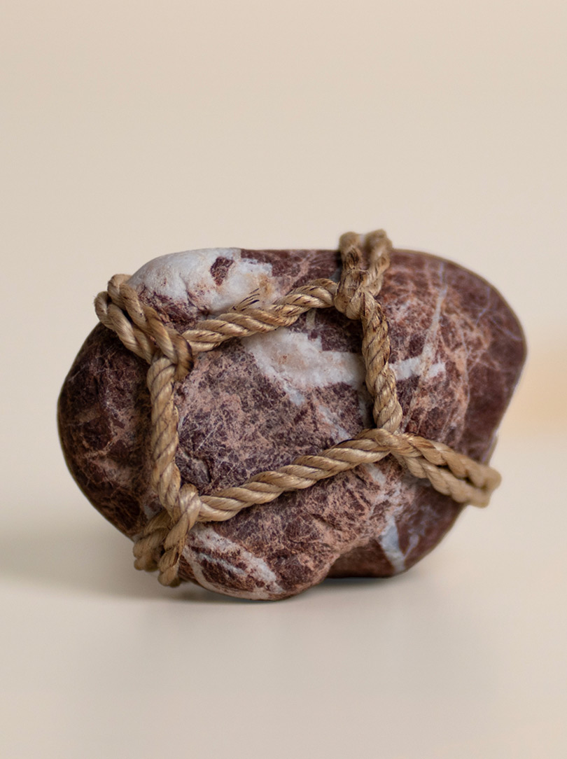 AGOBAY Showroom ZurichOften used in Japanese temples and tea houses, kekkai stones are crafted with intention. They are not merely objects but keepers of spiritual wisdom, echoing the Zen philosophy that ‘heaven, earth and I all share the same origin, and are therefore one’. In Japan, this has led to a spirit of respect for nature and a desire to live in harmony with it since ancient times. The tactile roughness of the stone and the smooth strength of the hemp invite one to ponder the interconnectedness of our existence with nature.