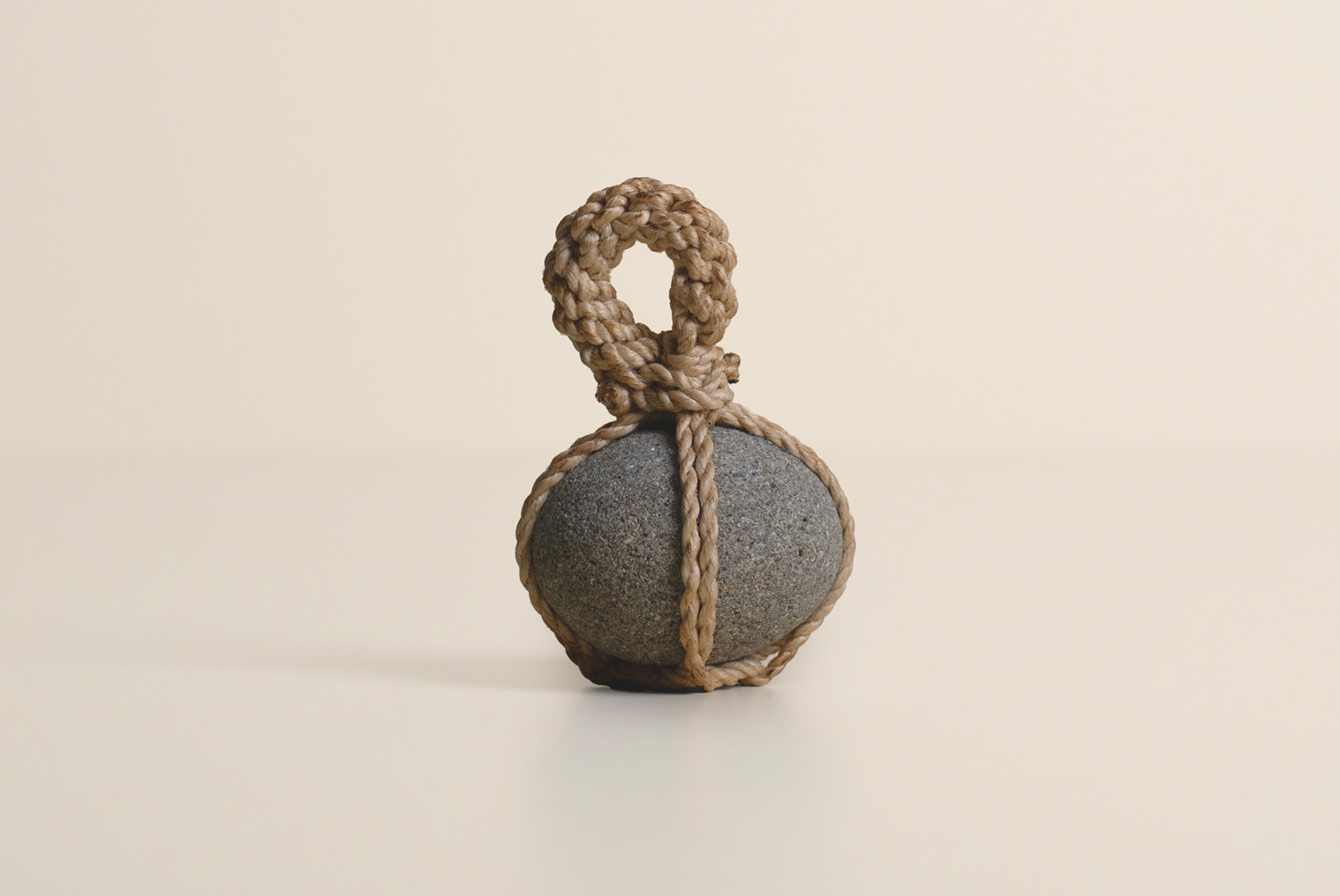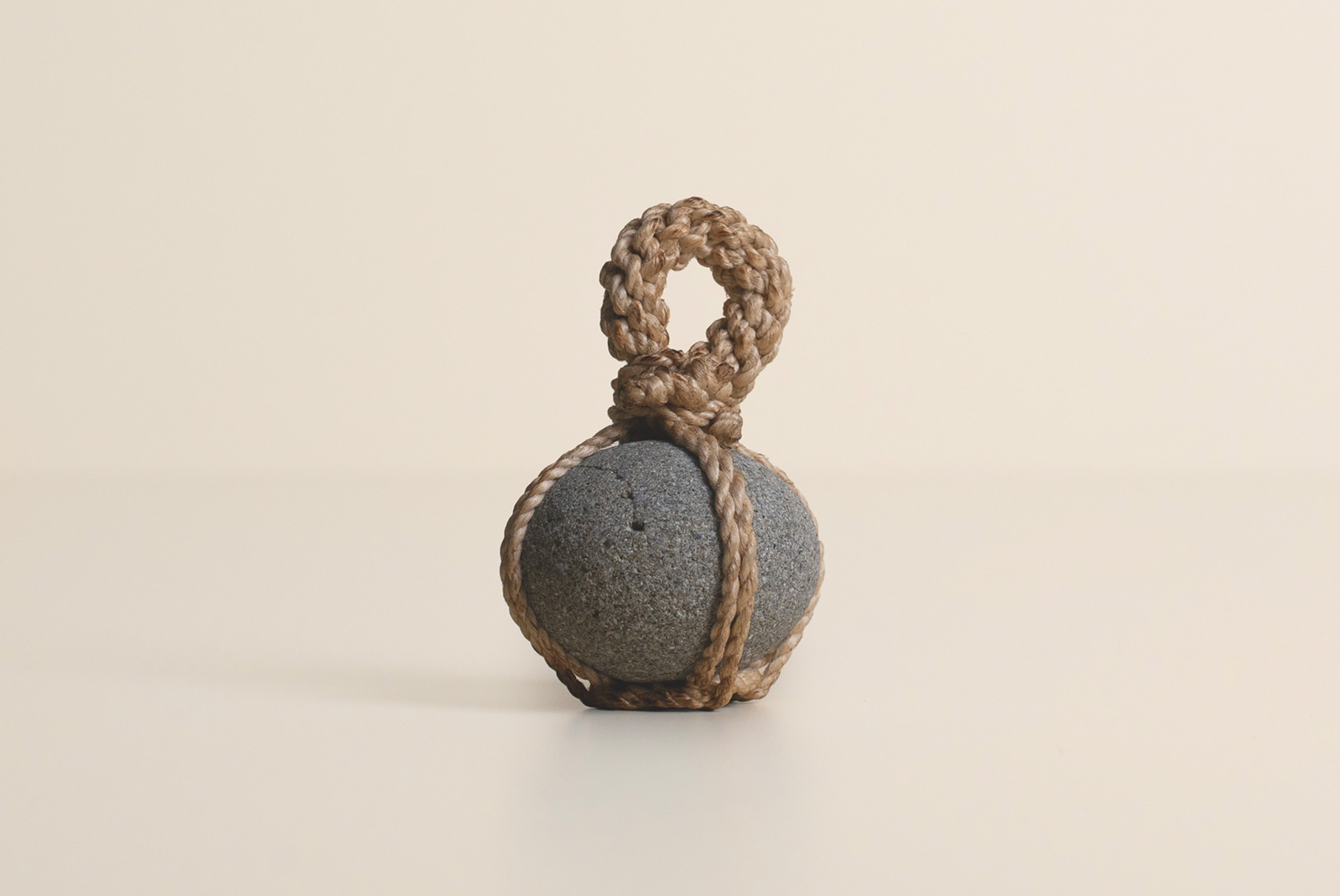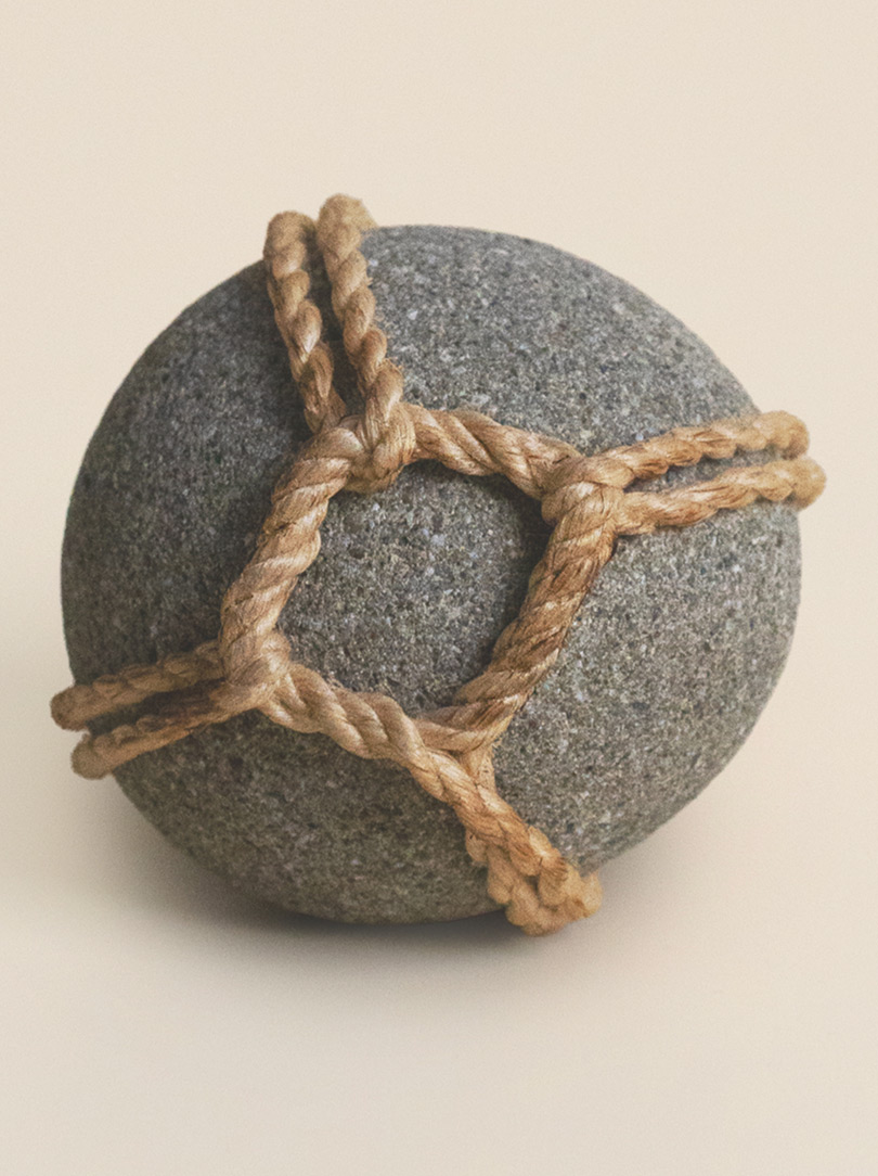 AGOBAY Showroom ZurichOften used in Japanese temples and tea houses, kekkai stones are crafted with intention. They are not merely objects but keepers of spiritual wisdom, echoing the Zen philosophy that ‘heaven, earth and I all share the same origin, and are therefore one’. In Japan, this has led to a spirit of respect for nature and a desire to live in harmony with it since ancient times. The tactile roughness of the stone and the smooth strength of the hemp invite one to ponder the interconnectedness of our existence with nature.