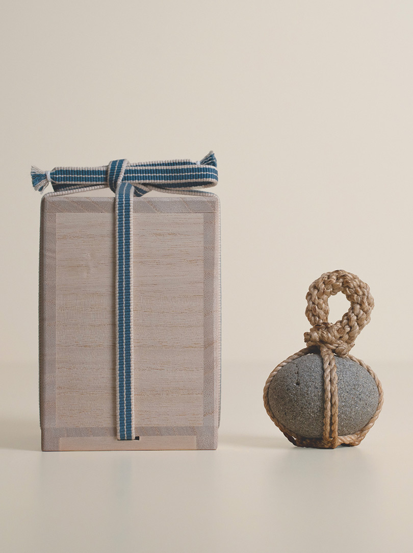 Each stone is delicately wrapped in washi paper, a traditional Japanese paper crafted from the elongated inner fibres of three plants: kozo, mitsumata and gampi. It is presented in a wooden box bearing the artisan’s signature mark. The box itself is made of Paulownia wood, known in East Asia as the ‘empress tree’ and valued for its lightweight but strong properties.