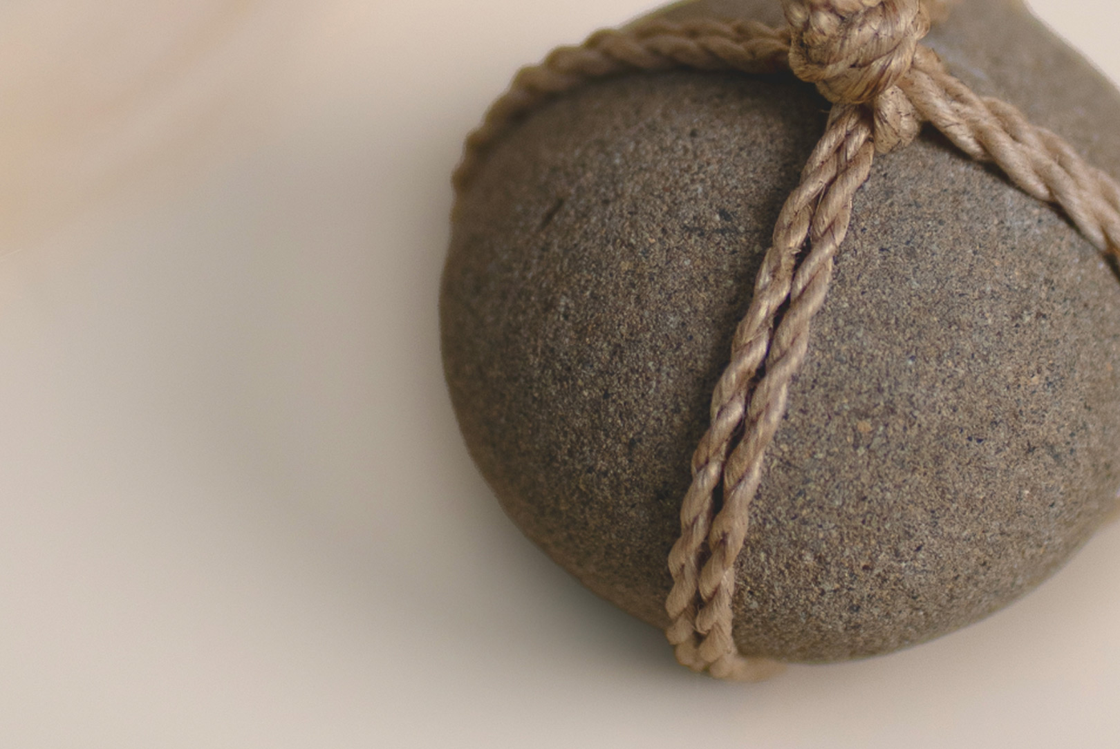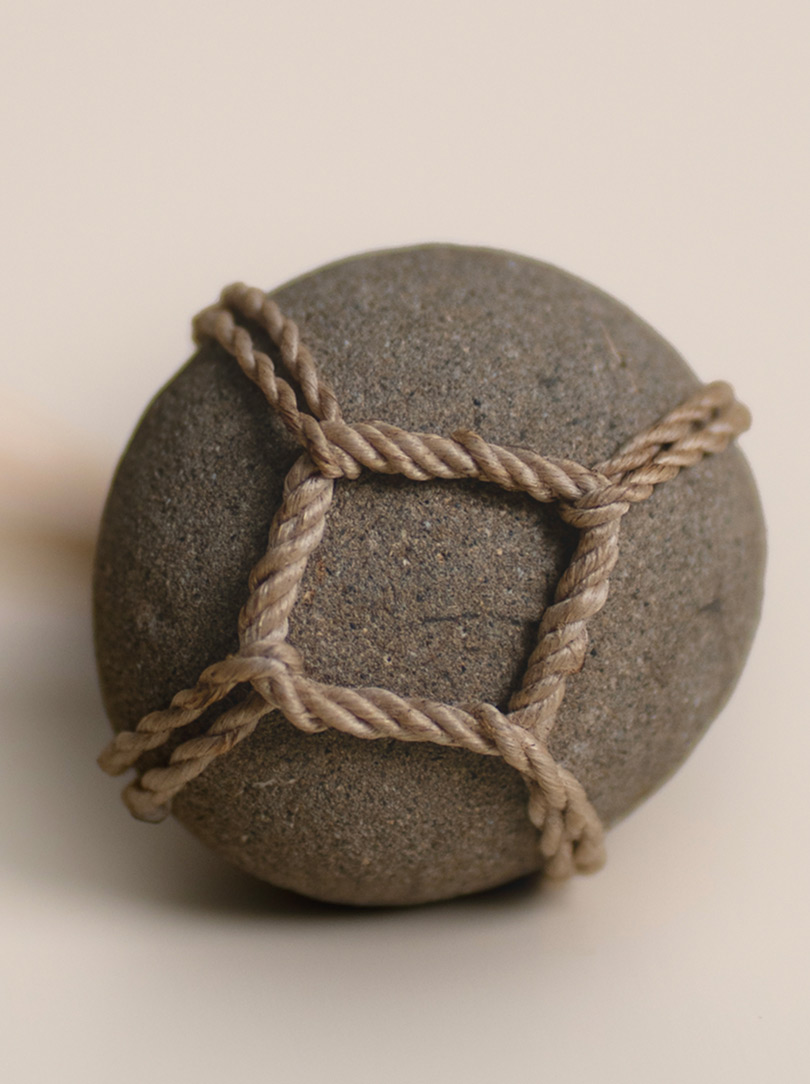 AGOBAY Showroom ZurichOften used in Japanese temples and tea houses, kekkai stones are crafted with intention. They are not merely objects but keepers of spiritual wisdom, echoing the Zen philosophy that ‘heaven, earth and I all share the same origin, and are therefore one’. In Japan, this has led to a spirit of respect for nature and a desire to live in harmony with it since ancient times. The tactile roughness of the stone and the smooth strength of the hemp invite one to ponder the interconnectedness of our existence with nature.