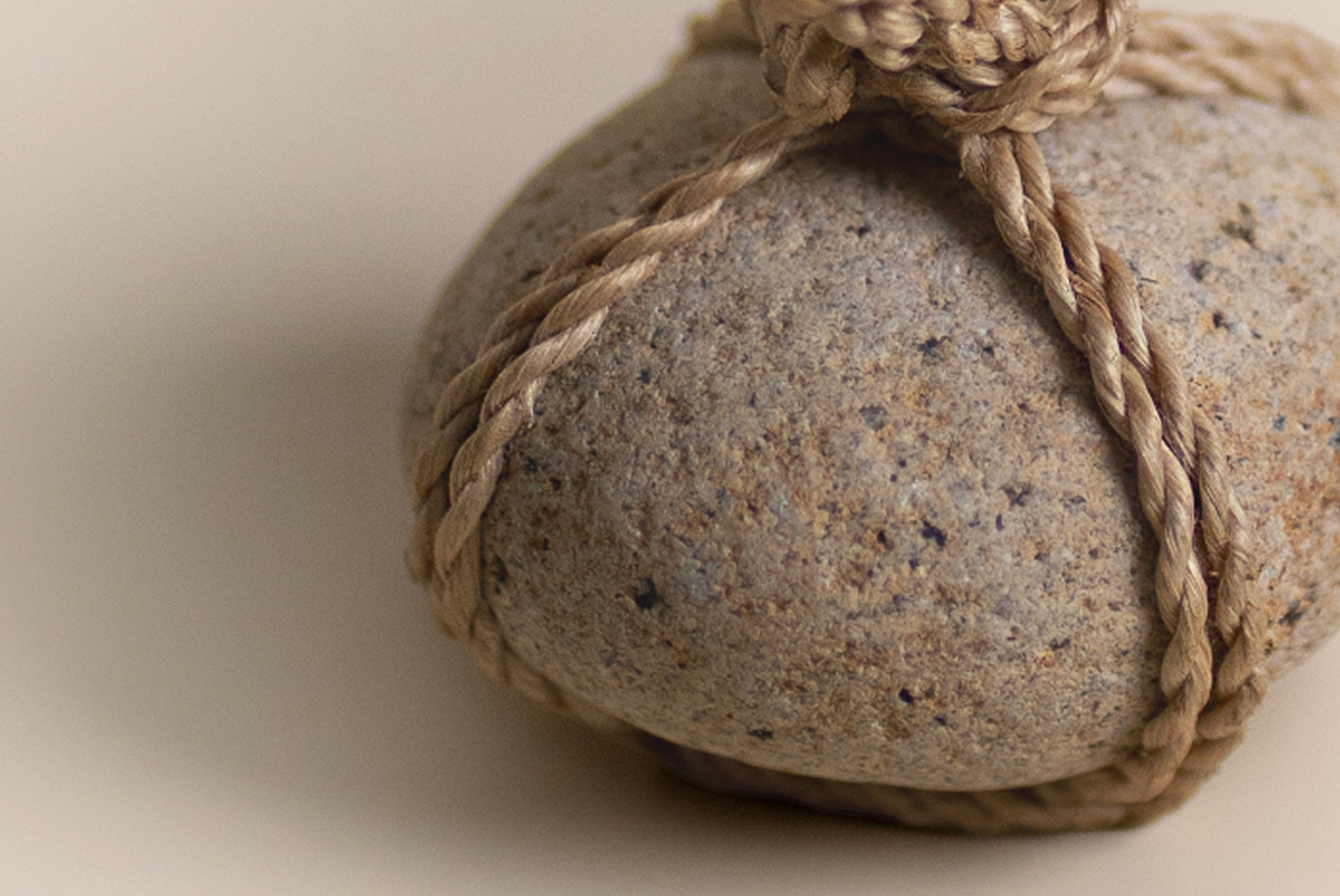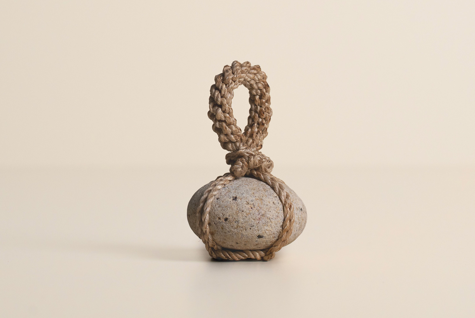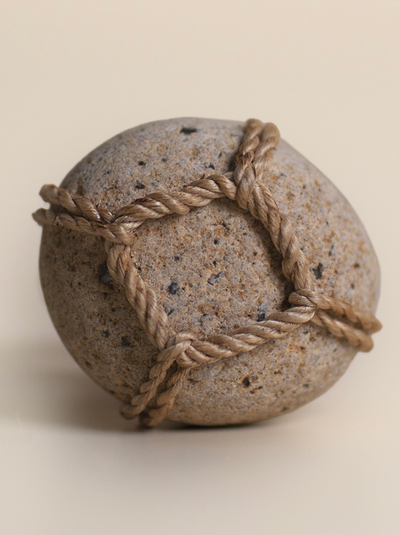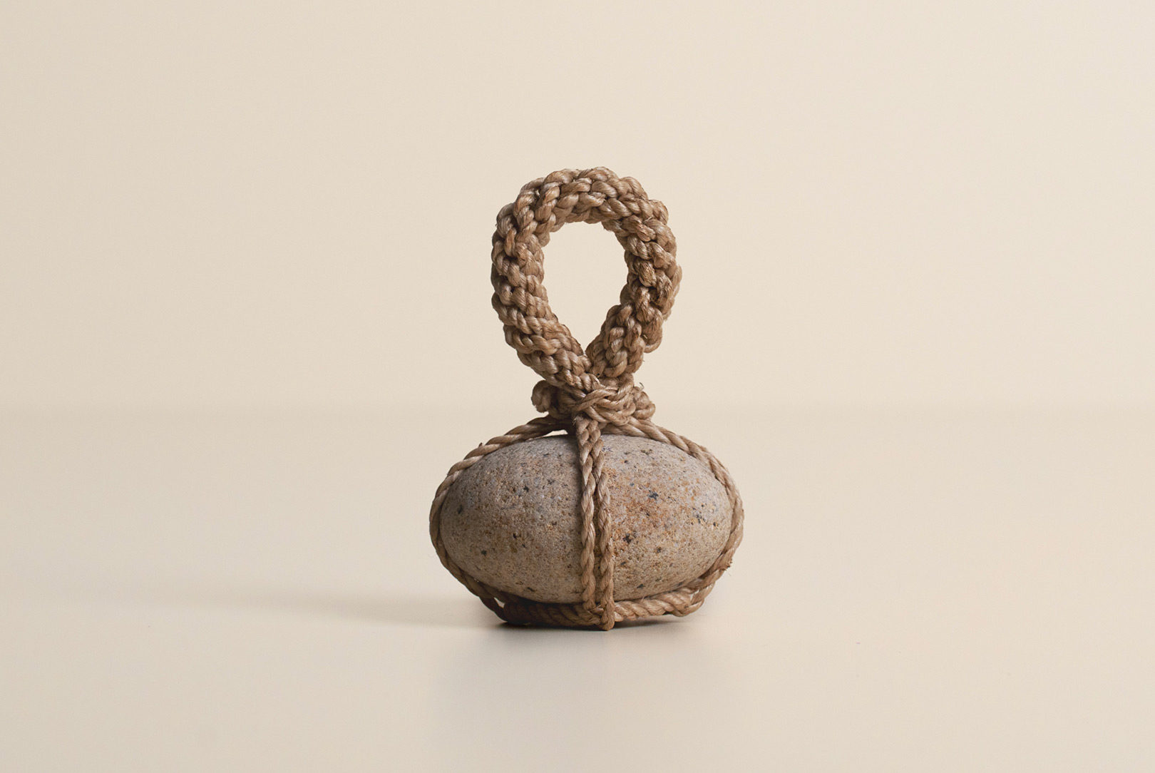 AGOBAY Showroom ZurichOften used in Japanese temples and tea houses, kekkai stones are crafted with intention. They are not merely objects but keepers of spiritual wisdom, echoing the Zen philosophy that ‘heaven, earth and I all share the same origin, and are therefore one’. In Japan, this has led to a spirit of respect for nature and a desire to live in harmony with it since ancient times. The tactile roughness of the stone and the smooth strength of the hemp invite one to ponder the interconnectedness of our existence with nature.