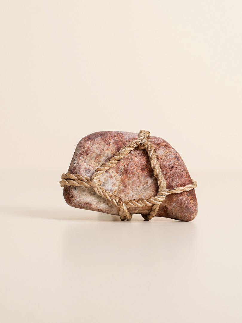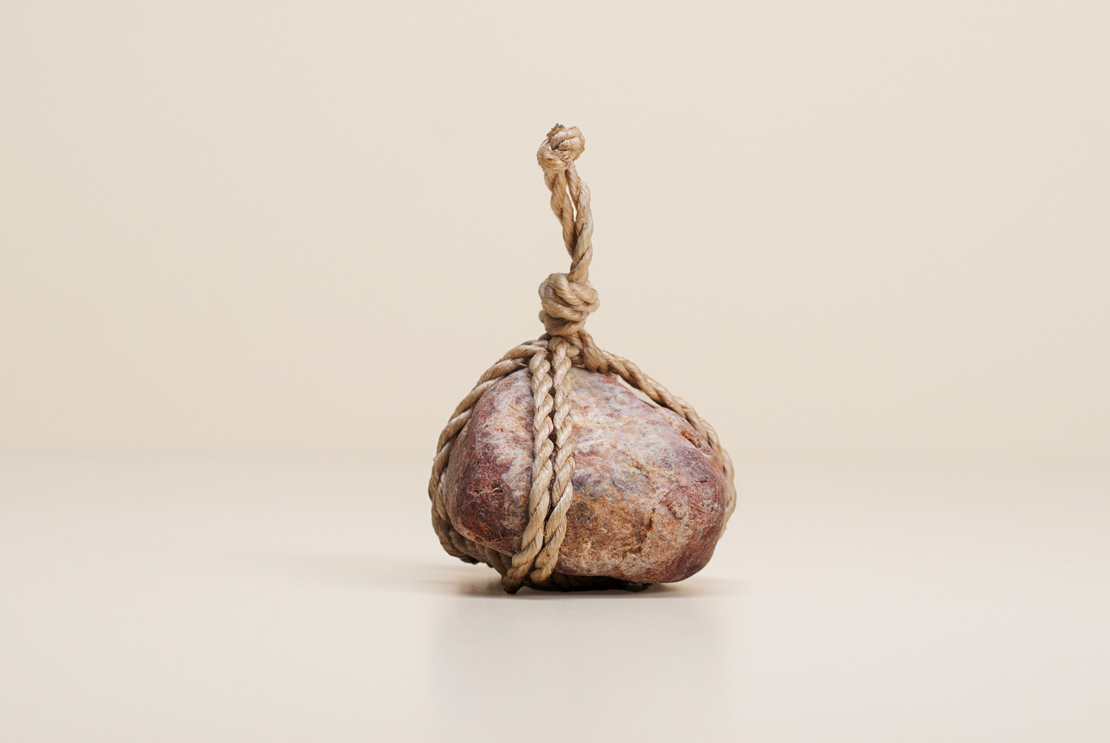 AGOBAY Showroom ZurichOften used in Japanese temples and tea houses, ‘kekkai’ stones are crafted with intention. They are not merely objects but keepers of spiritual wisdom, echoing the Zen philosophy that ‘heaven, earth and I all share the same origin, and are therefore one’. In Japan, this has led to a spirit of respect for nature and a desire to live in harmony with it since ancient times. The tactile roughness of the stone and the smooth strength of the hemp invite one to ponder the interconnectedness of our existence with nature.