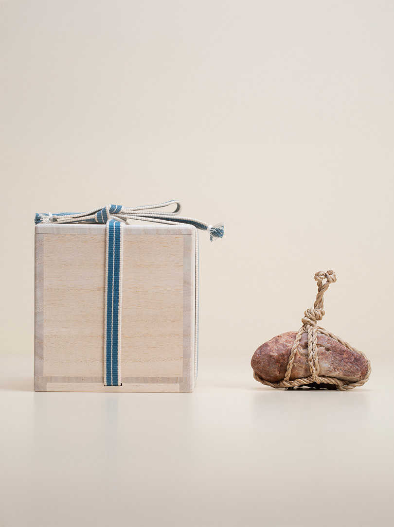Each stone is delicately wrapped in washi paper, a traditional Japanese paper crafted from the elongated inner fibres of three plants: kozo, mitsumata and gampi. It is presented in a wooden box bearing the artisan’s signature mark. The box itself is made of Paulownia wood, known in East Asia as the ‘empress tree’ and valued for its lightweight but strong properties.