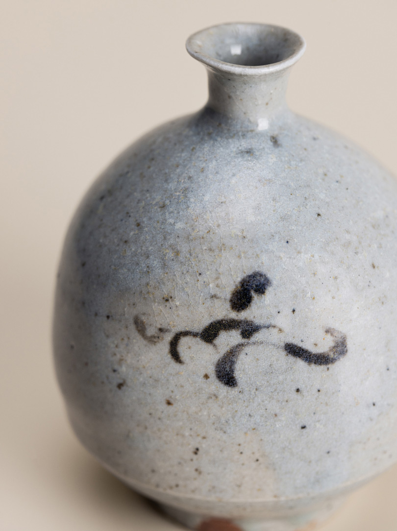 Referencing ancient ceramic styles is a recurring theme in Shingo Oka’s work. His mastery and individualism, however, lie in putting his own contemporary spin on them. This diminutive porcelain ‘Tokkuri’ pitcher has been created in the ‘Licho’ style, which dates back to the Yi Dynasty of Korea, founded in the 14th century. From the same period, the drawing motif is reminiscent of early Japanese ‘Imari’ styles.