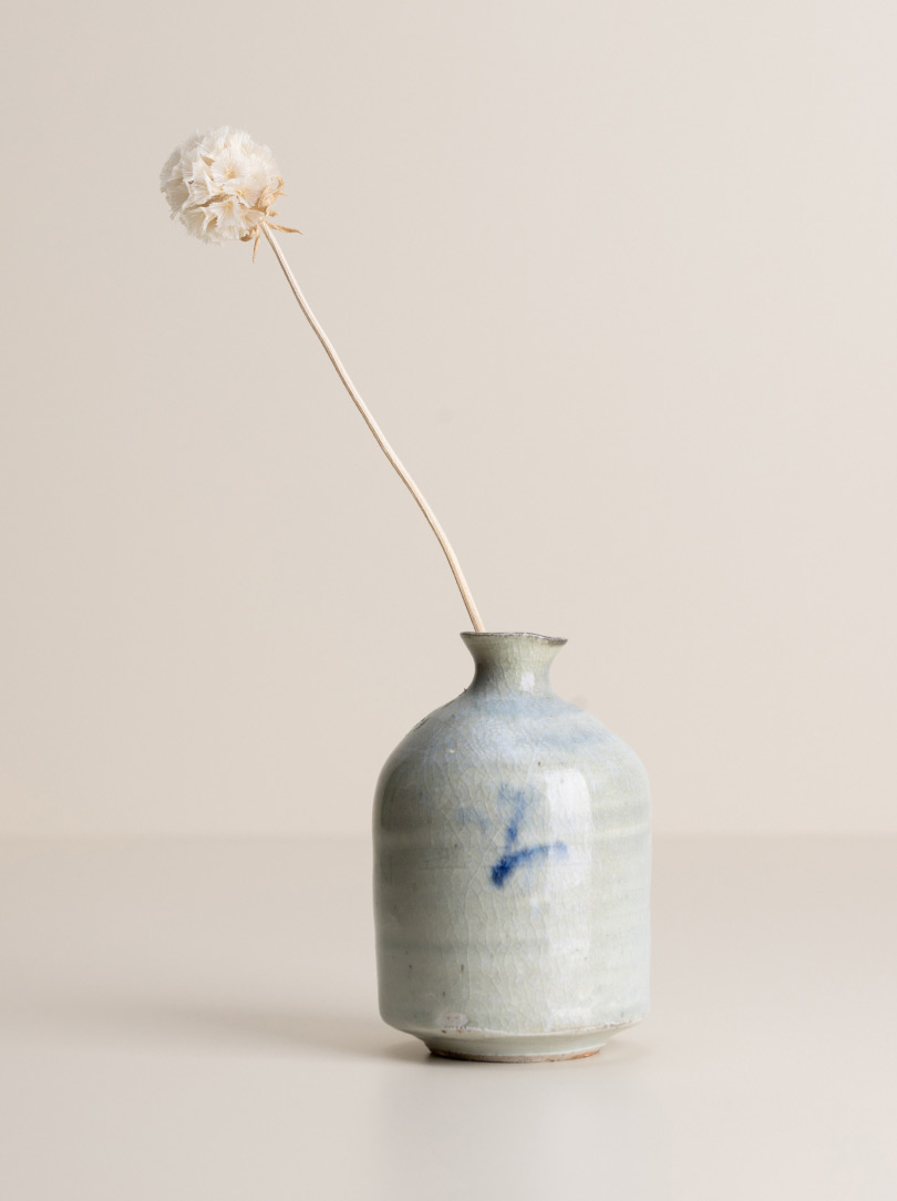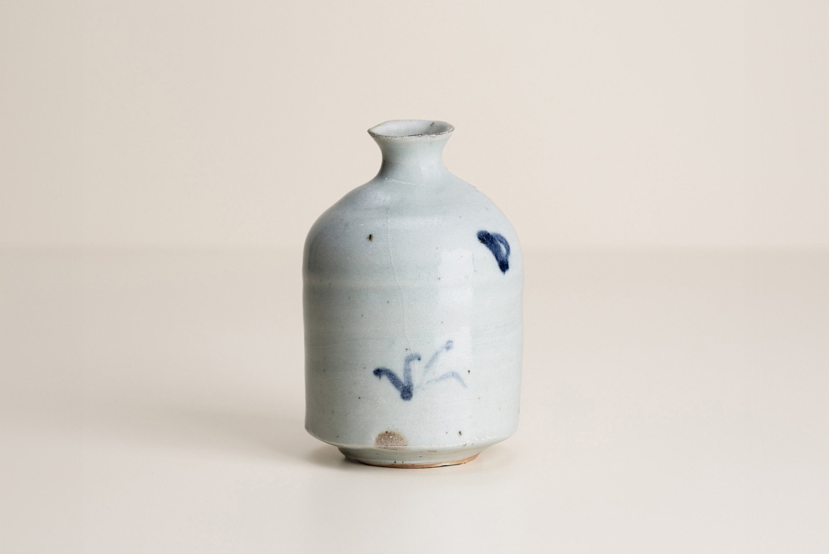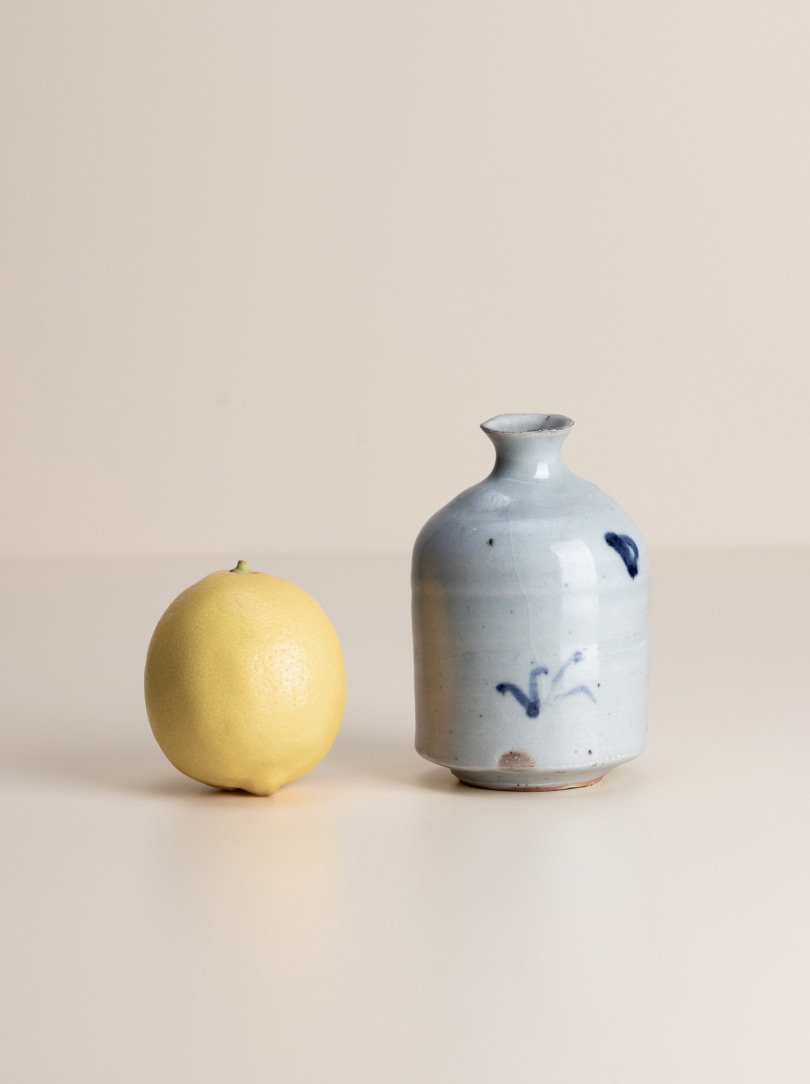 Inspired by early Japanese ‘Imari’ styles, this ‘Tokkuri’ pitcher has a beautifully aged appeal. It features ‘Somon’ drawings, which are patterns resembling growing grass. As the artist explained, these darker and lighter blue strokes were made using straws, so that they have rounded ends and a subtle look. Shingo Oka also describes this petite ‘Tokkuri’ pitcher as having a “very 1600s” aesthetic.