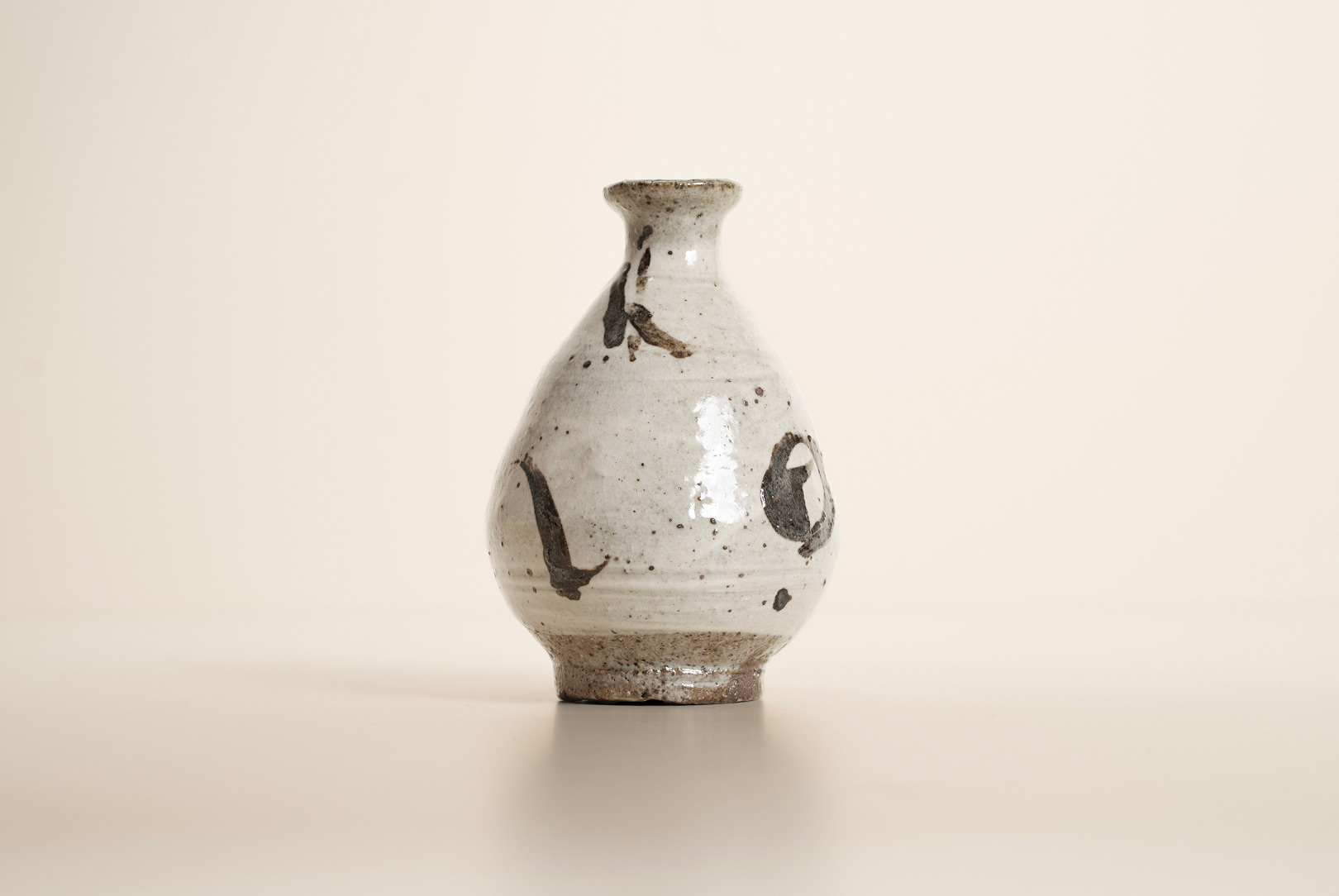 Designed to enjoy sake at its best, this ‘Tokkuri’ sake pitcher features ‘hakeme’ brush-stroke iron painting, a technique associated with Karatsu, where the artist is based. Iron-rich pigment is applied with a natural brush and fired to create deep brown tones, giving the rounded form a warm, textured and comforting presence. Perfect with ‘choko’ cups for a beautifully balanced table setting.